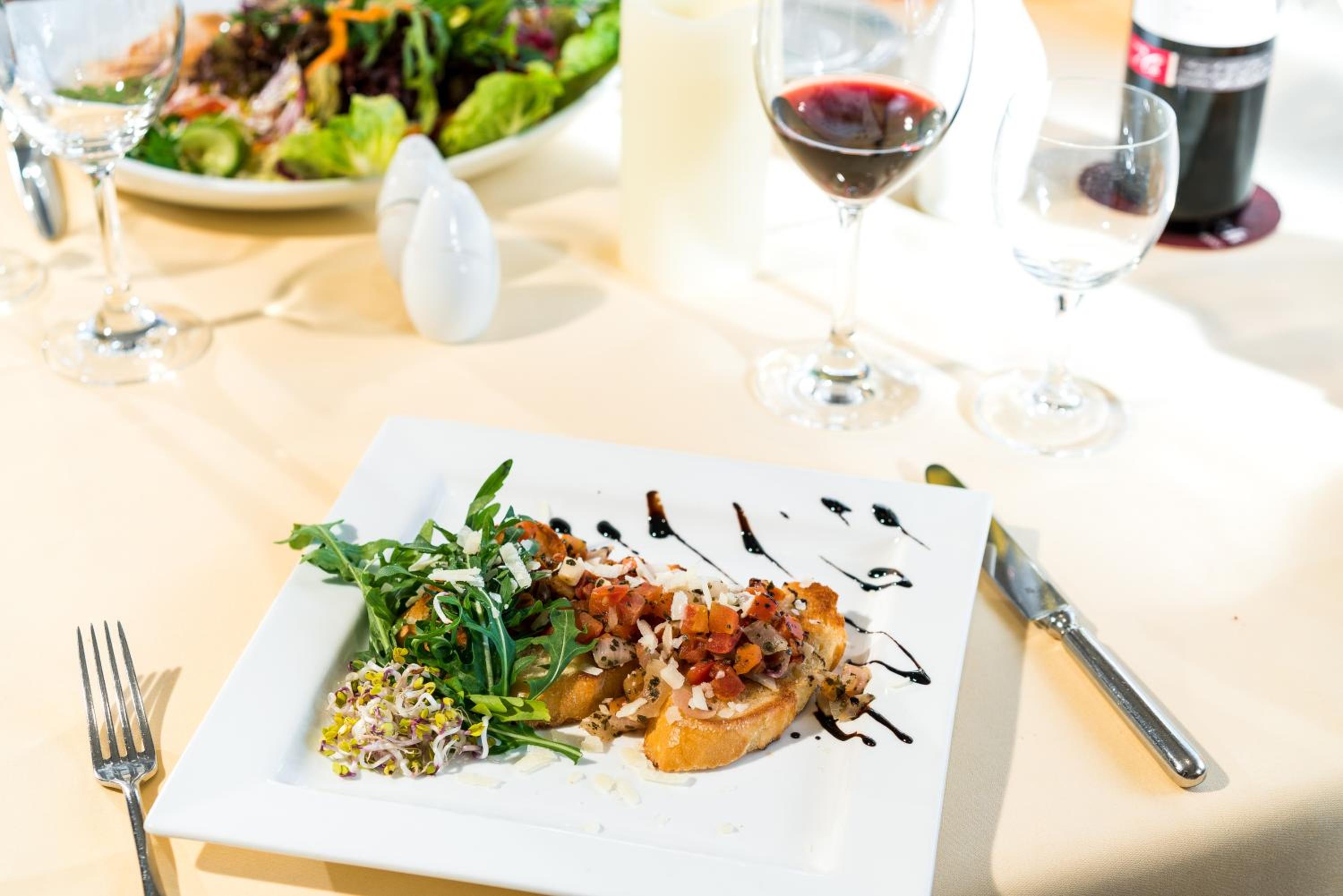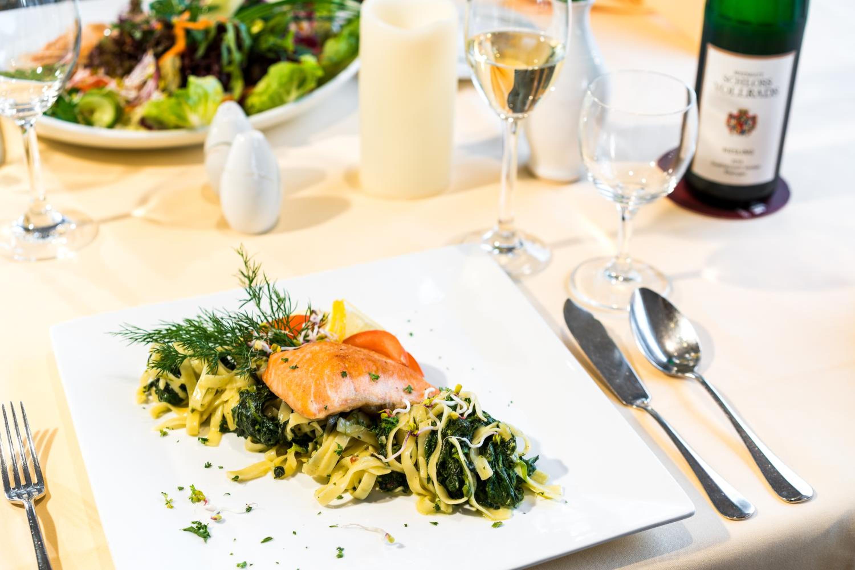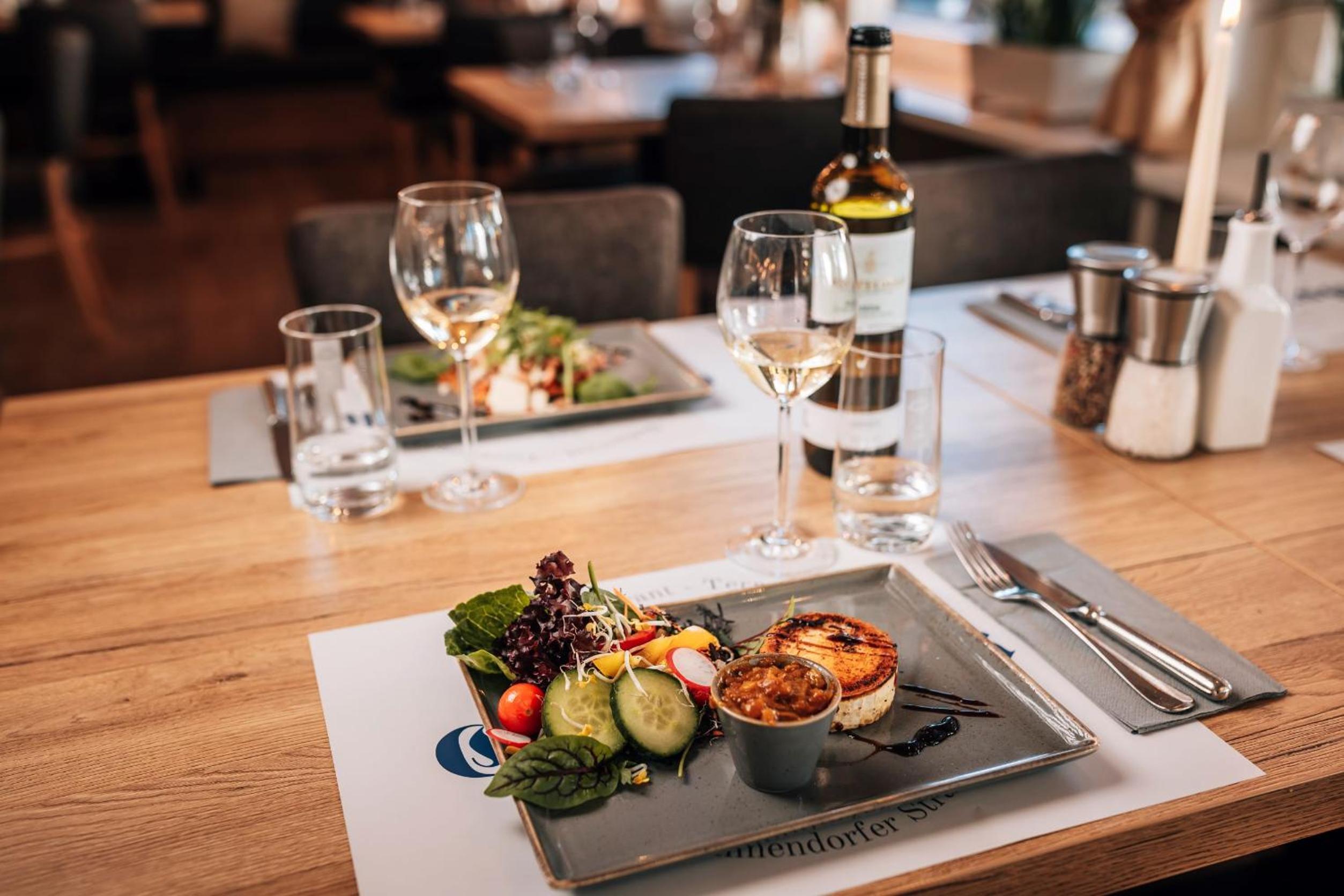 Das Frühstück ist ganz okay und das Abendessen ist sehr gut. Ein Besuch im Restaurant lohnt sich in jedem Fall. Das Preisniveau ist ortsüblich und die Gerichte werden wirklich hochwertig zubereitet.