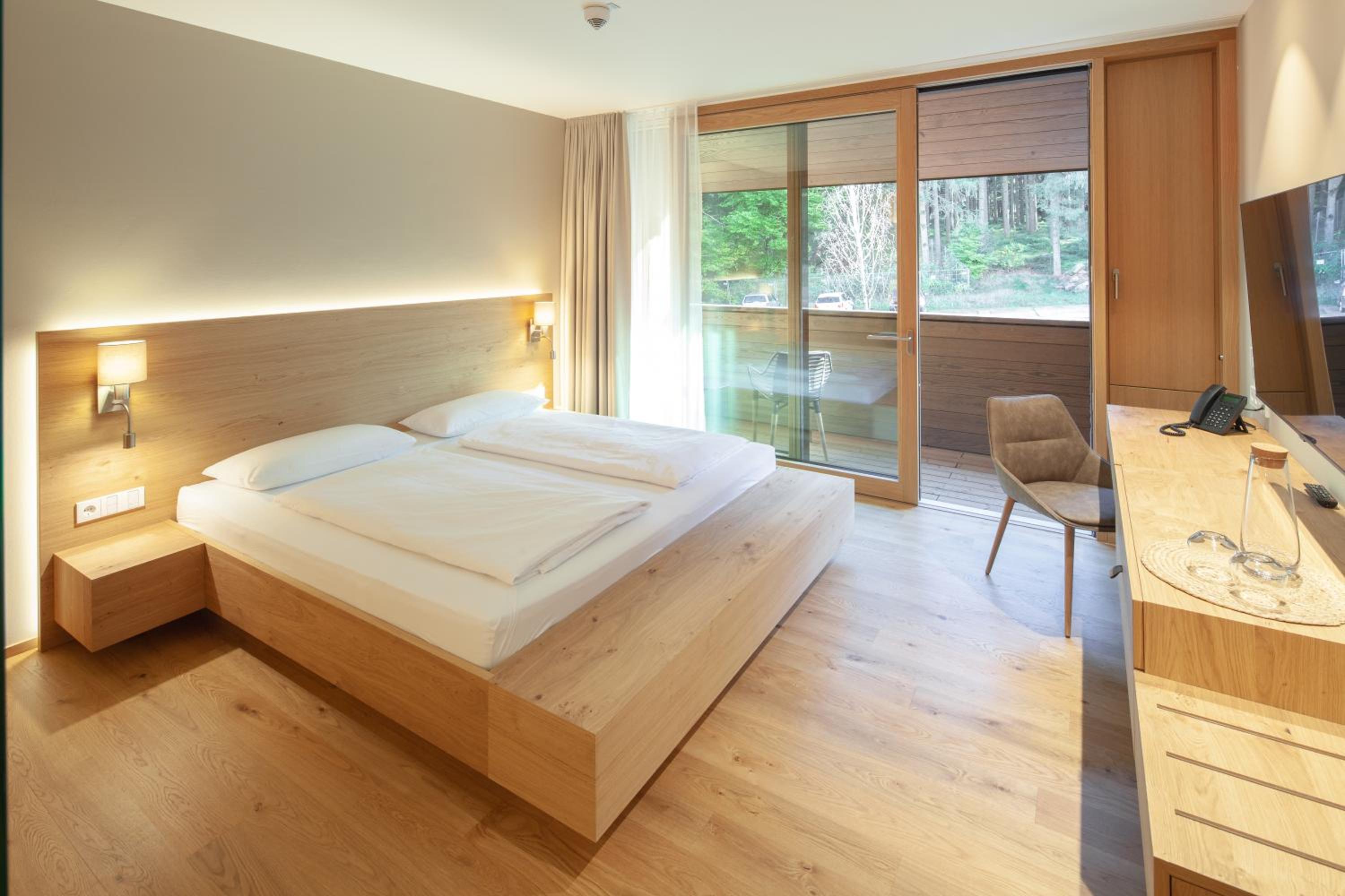 perfekte Lage am Waldrand, sehr gutes und reichhaltiges Frühstücks-Buffet, sehr schöner Sauna-Bereich, wo wenig los war;