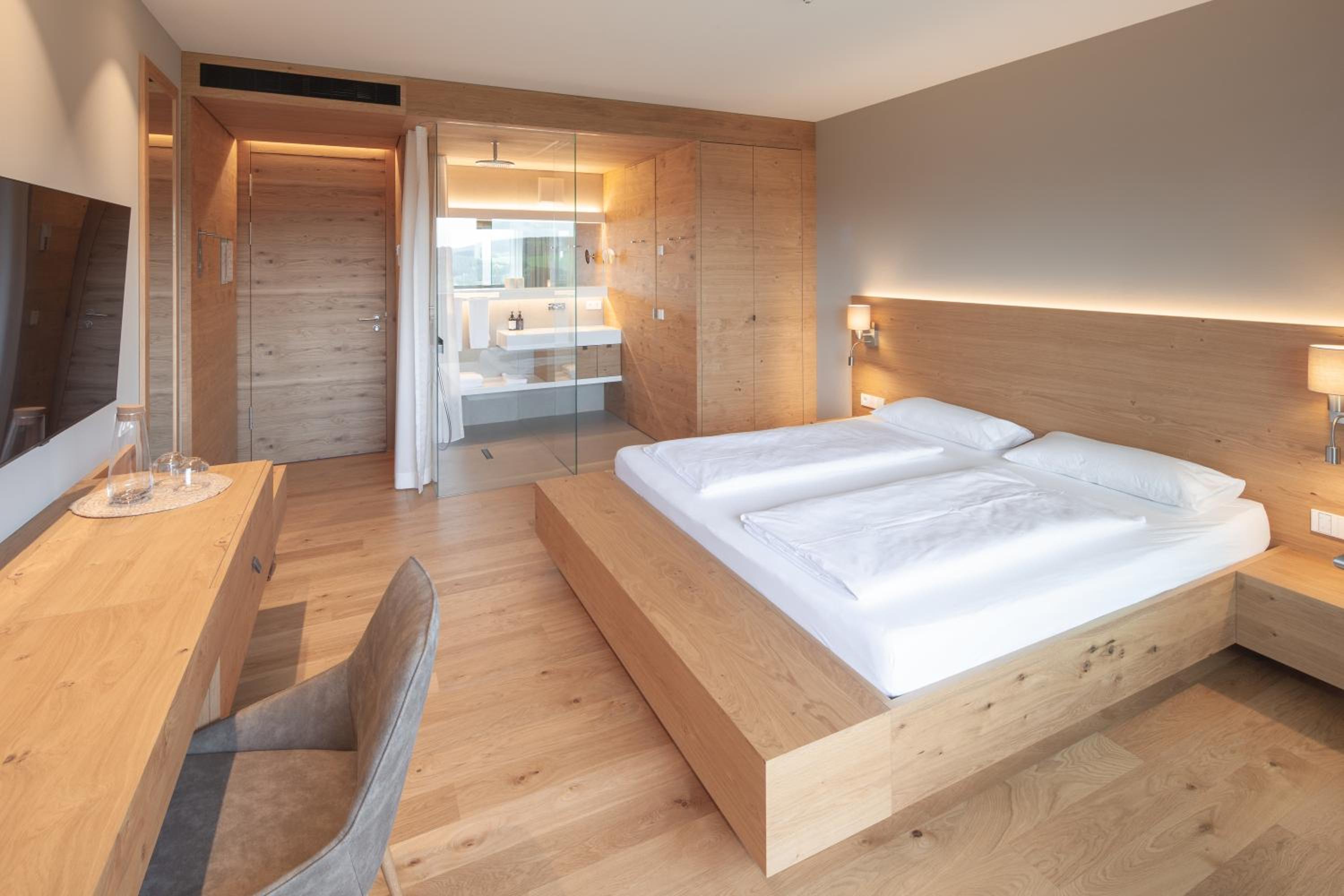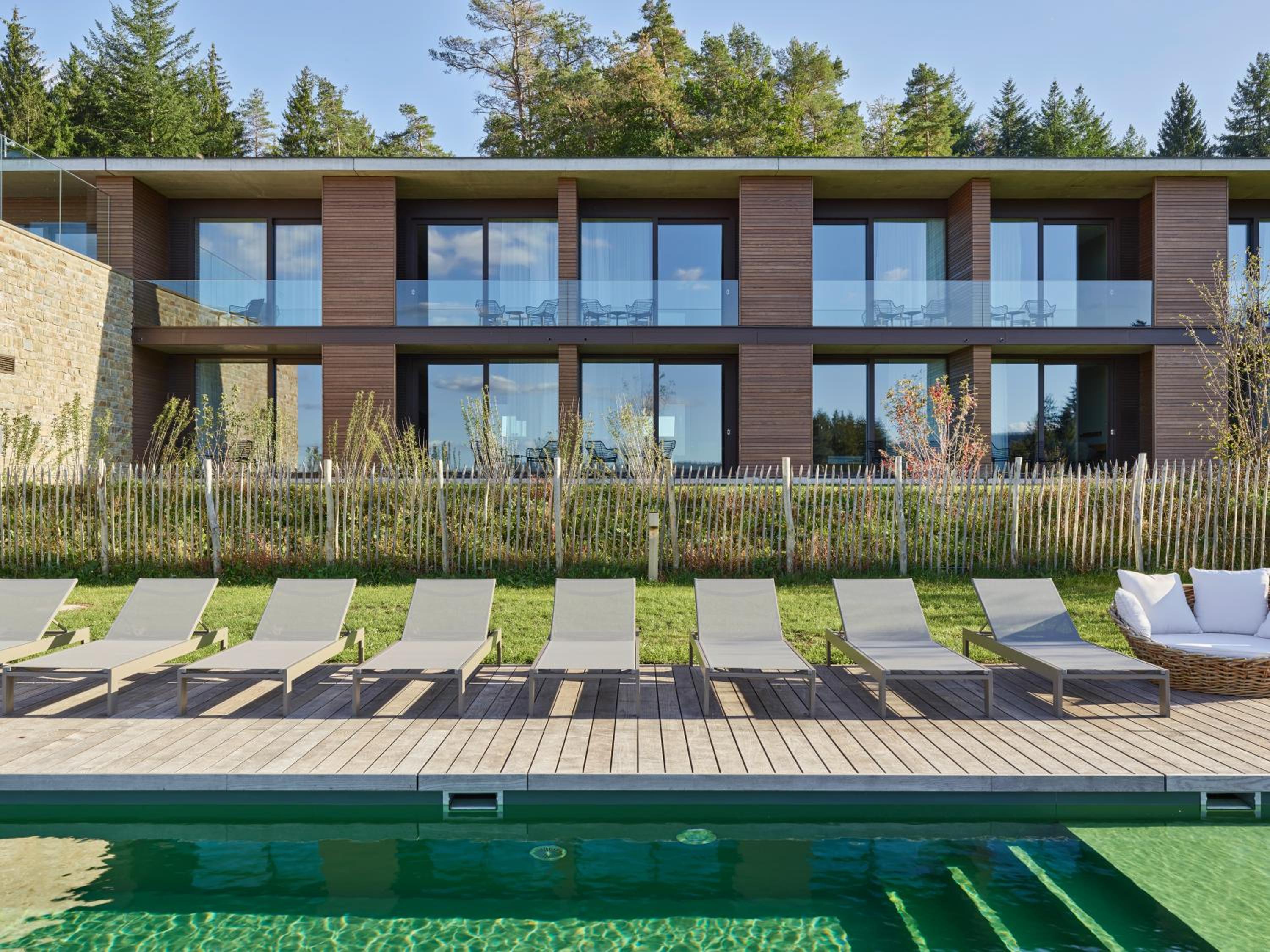 la qualité de l amenagement moderne et chaleureux avec beaucoup de bois, la vue depuis l hotel , l emplacement isolé et calme , le personnel tres souriant , accueillant et competant. nous y reviendrons sans aucun doute.l hotel a 4 ans