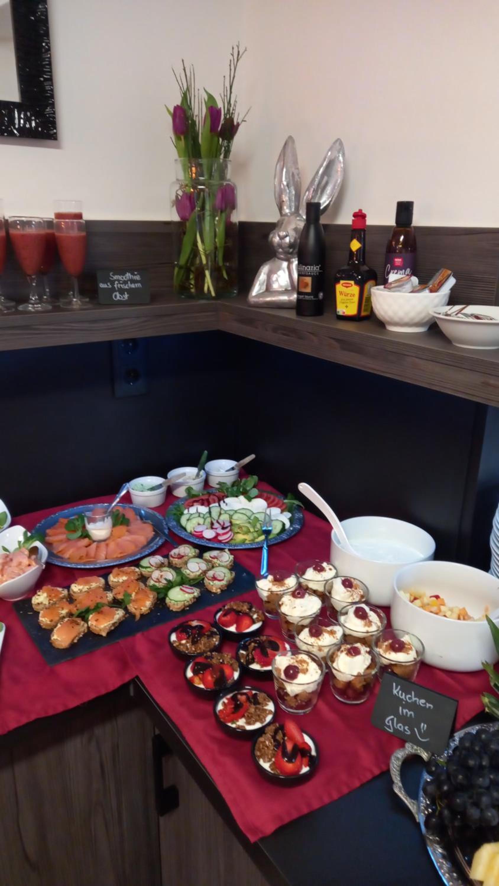 Reichhaltiges und leckeres Frühstück. Sehr freundlicher Service. Das Frühstück wurde auf die speziellen Bedürfnisse (vegan) angepasst.