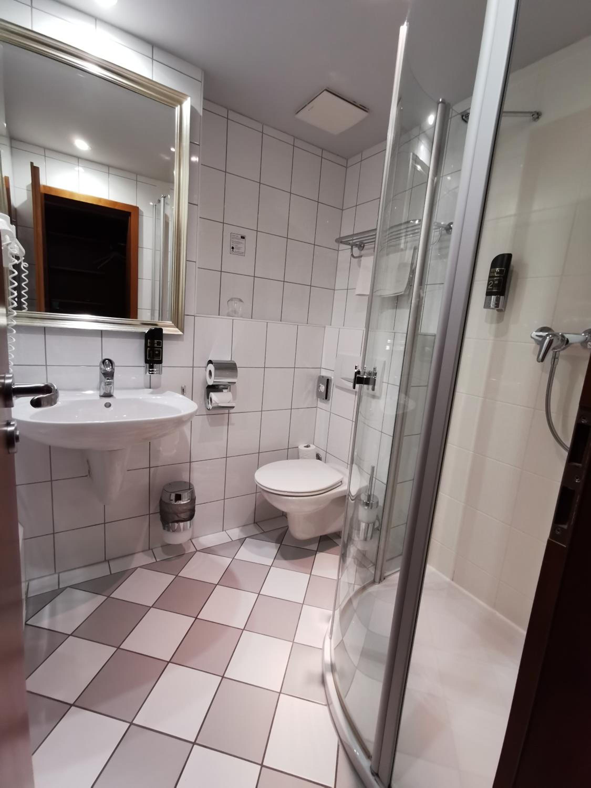 Located on the hill in suburb of city with spectacular view to castle.Comfortable room, spacious bathroom.Good restaurant on the site, good breakfast.