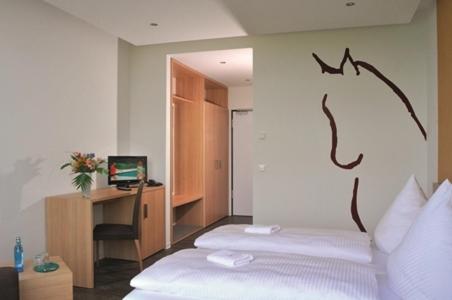 Die Lage des Hotels ist sehr gut. Das Frühstück ist Klasse. Das Hotel hat eine große Reithalle und sehr schöne Aufenthaltsräume.