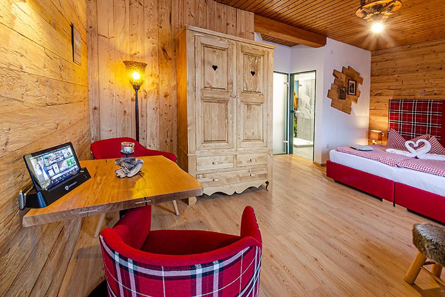 Indulge in a relaxing stay at Almhotel Grünsteinblick, offering elegant rooms with mountain views, flat-screen TVs, and private balconies. Unwind by the outdoor swimming pool or savor delicious German and European cuisine at the on-site restaurant, which also caters to vegetarian and vegan guests.