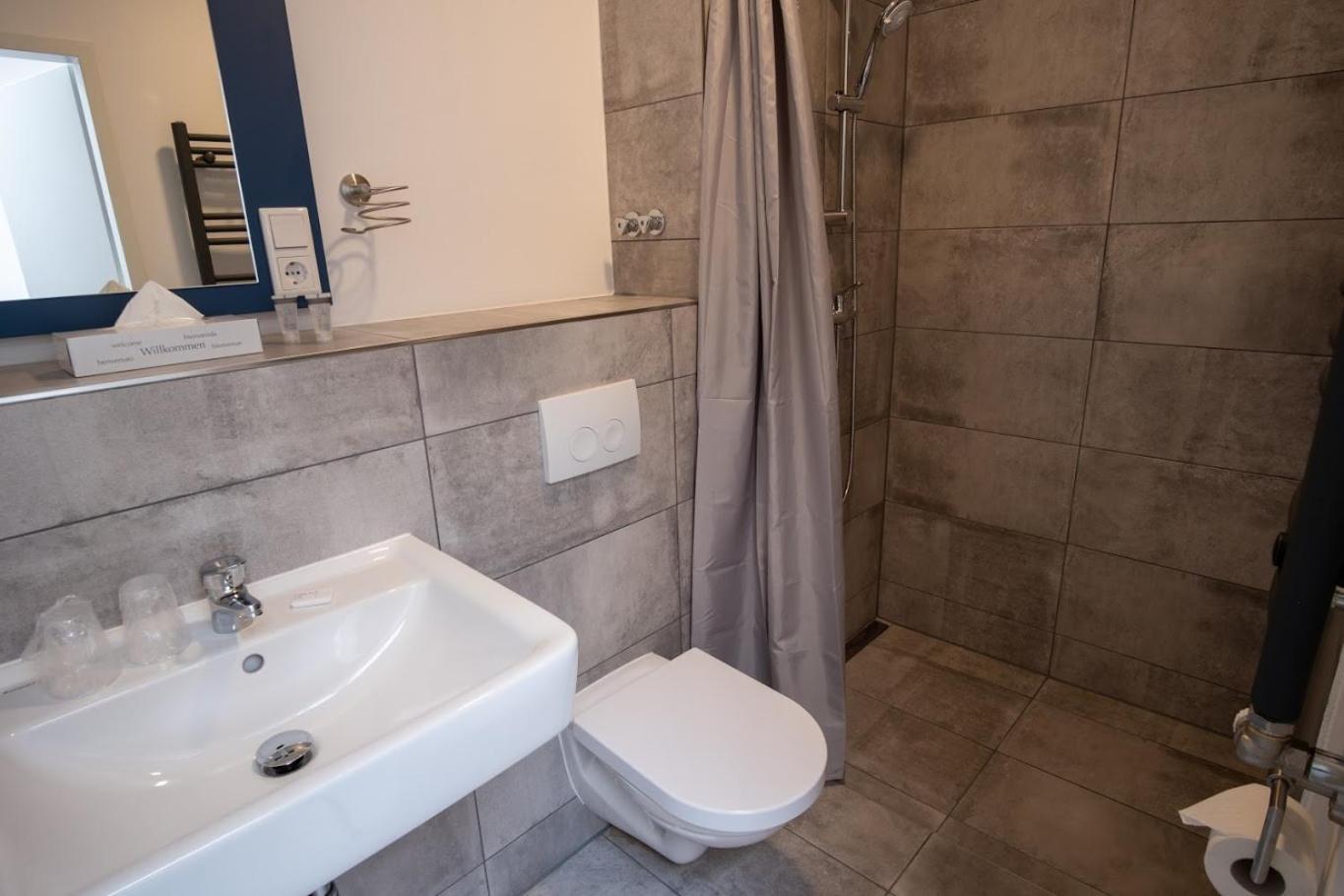 Schlichte, schöne, einfache Ausstattung, gut durchdacht und tolle Farbkombinationen. Erfüllt ihren Zweck und für die Mitarbeitenden einfach zu reinigen und zu pflegen. Es ist ruhig gewesen und sehr sauber. Freundliches Personal. :)