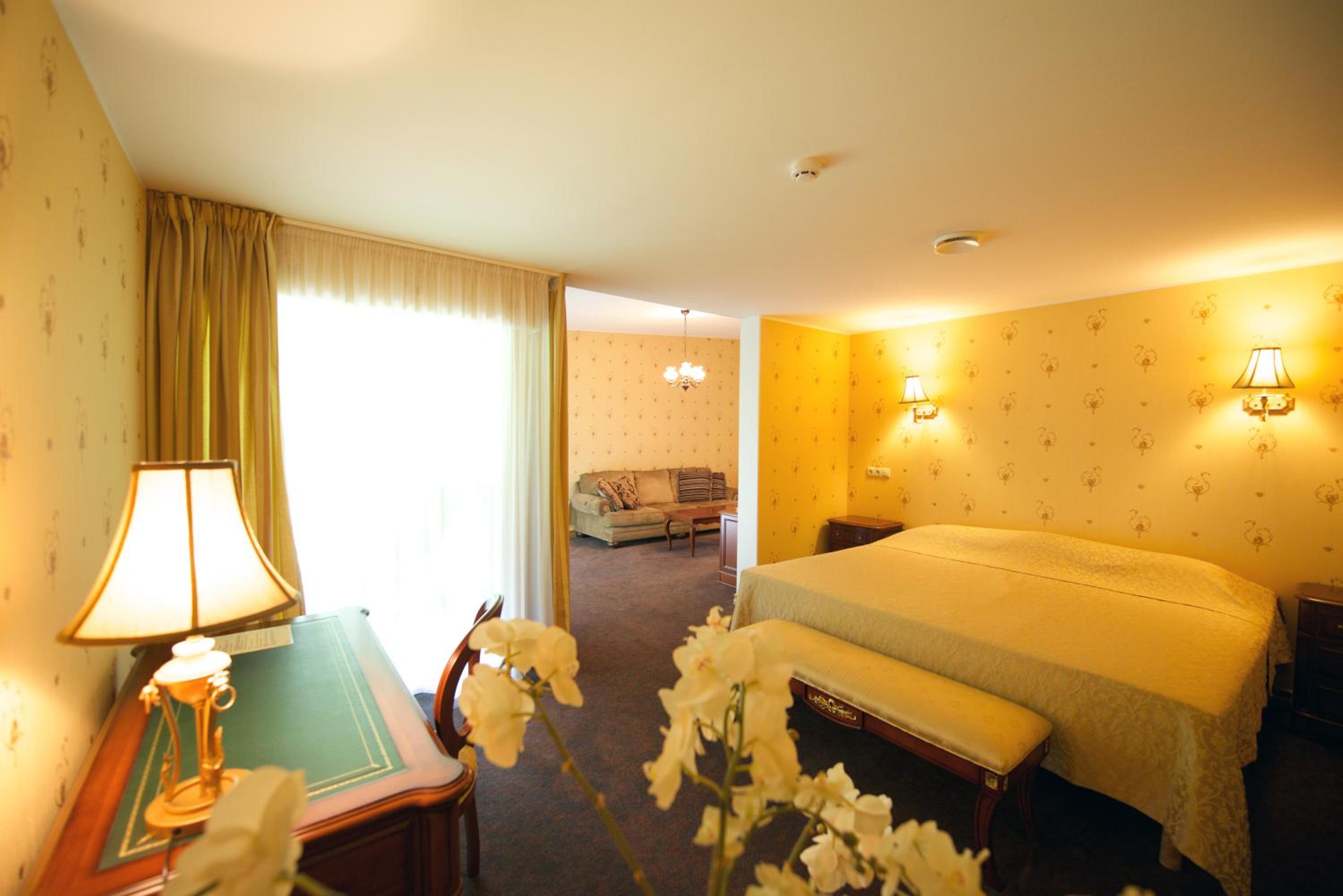 Experience luxury in our spacious rooms adorned with Art Nouveau decor, featuring modern amenities like air conditioning, comfortable beds, and flat-screen TVs.