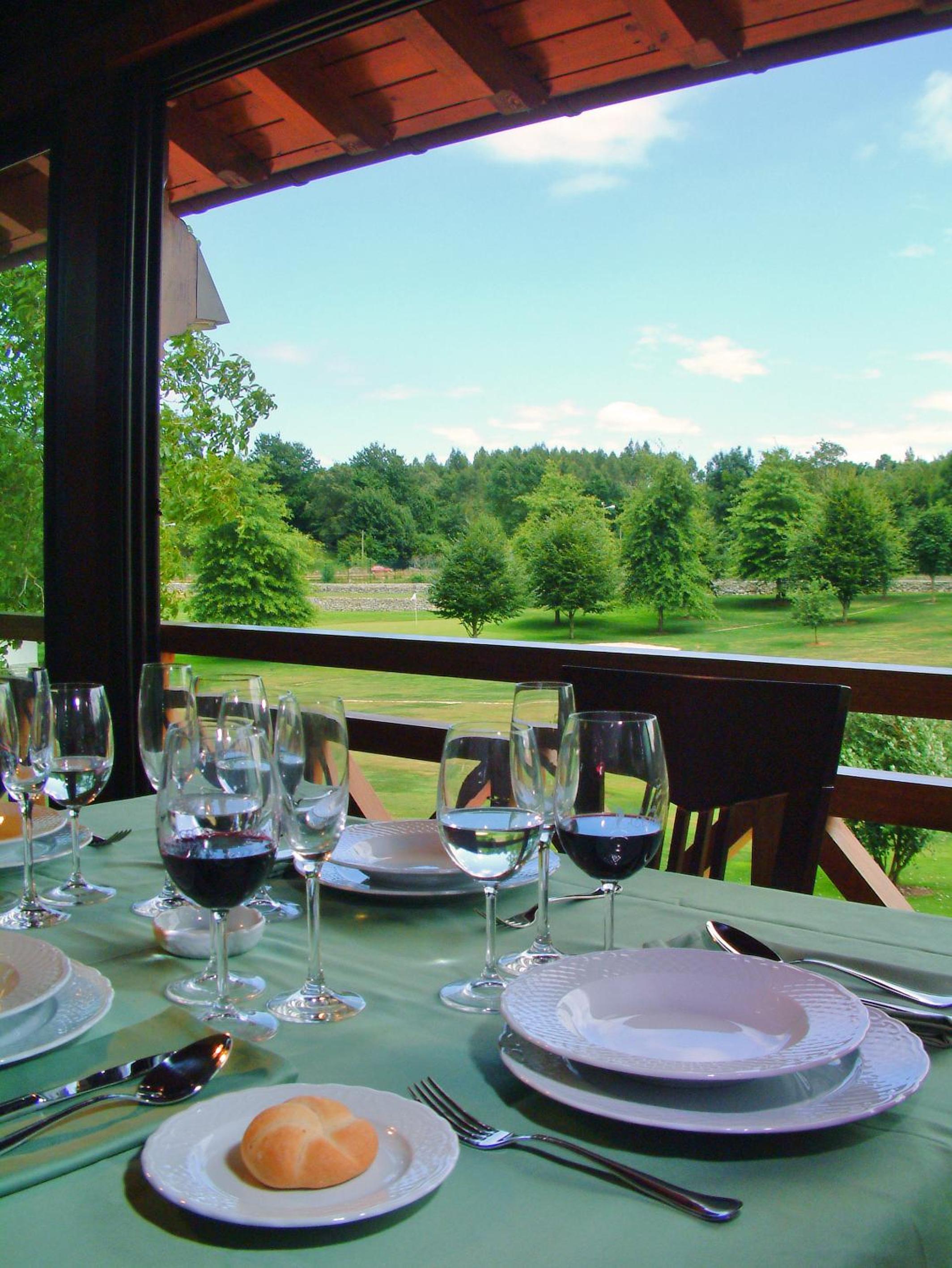 Guests can indulge in authentic Asturian dishes at Entrecaleyas Restaurant while enjoying views of the golf course. After a day of activities, unwind in the cozy lounge by the fireplace.