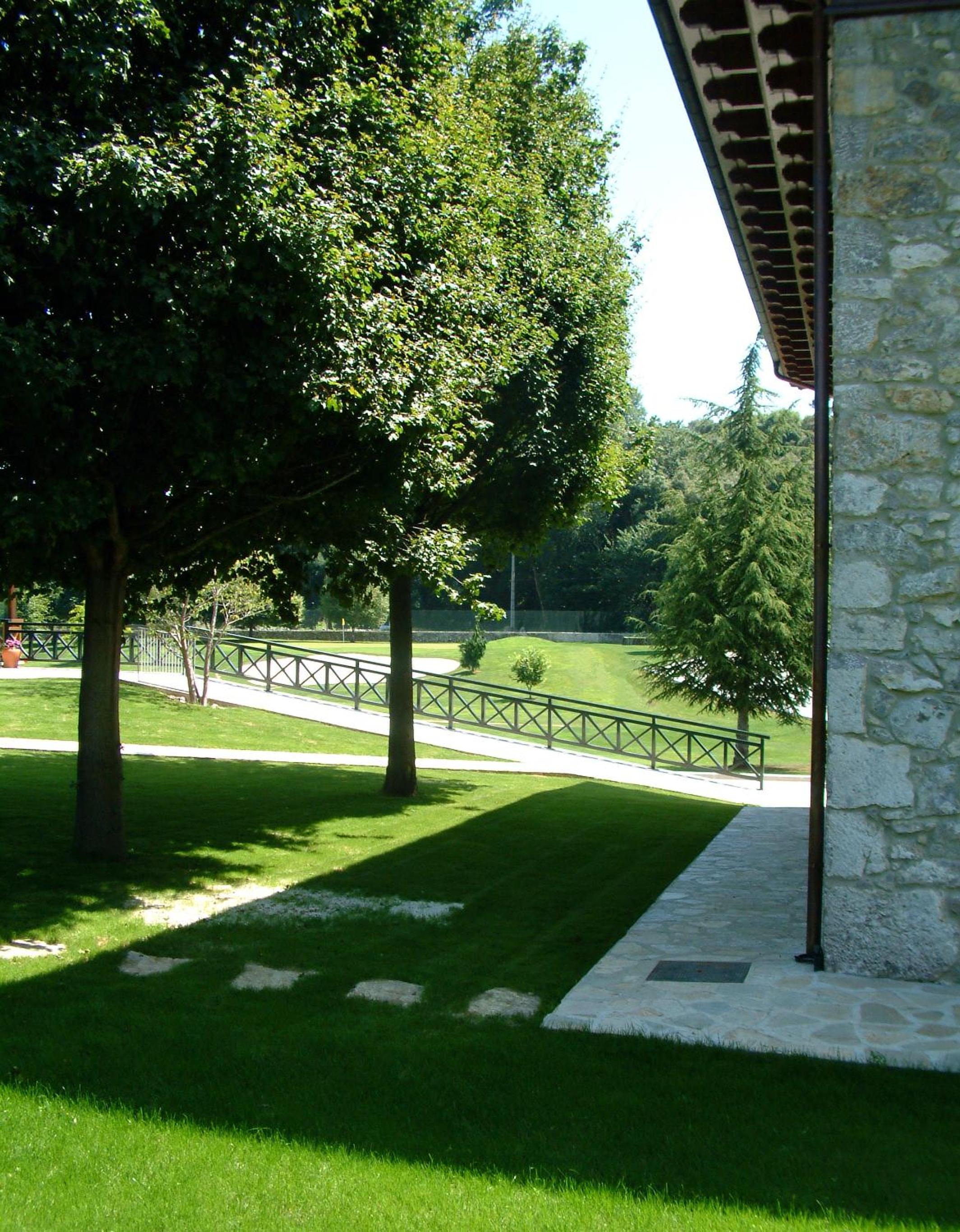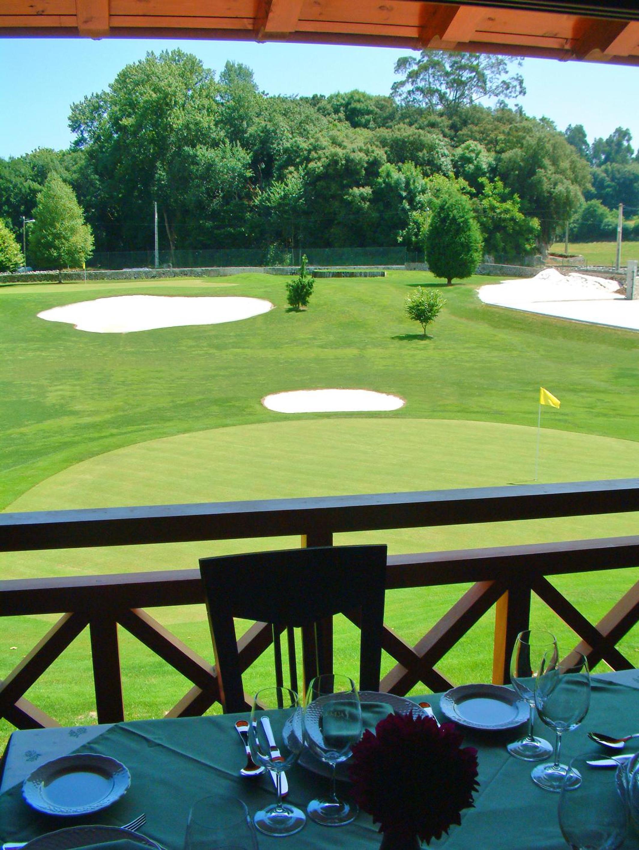 Dentro de un Campo de golf, que es un jardín, super cuidado. Entorno privilegiado, entre montañas y mar.Tranqulio, sosegado, solo alterado por el paso de un tren . Muy recomendable para desconectar, aunque no sé juegue a golf. La habitación grande, decoración con relación al entorno rural. Camas cómodas, y grandes. Habitación silenciosa.