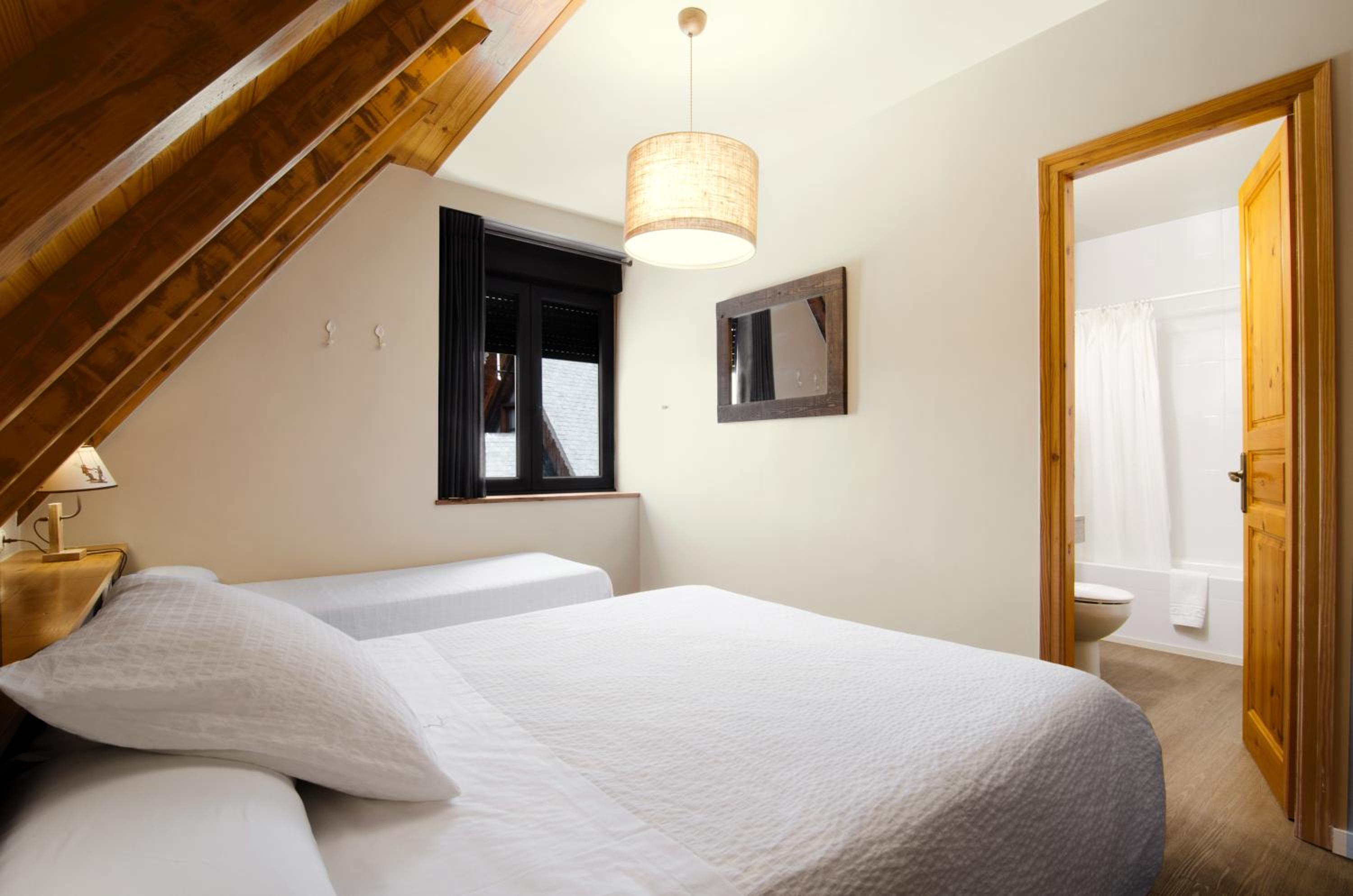 Spectacular Pyrenees Views: Enjoy breathtaking mountain views from the balconies of our cozy wood-panelled rooms, each equipped with modern amenities for your comfort.