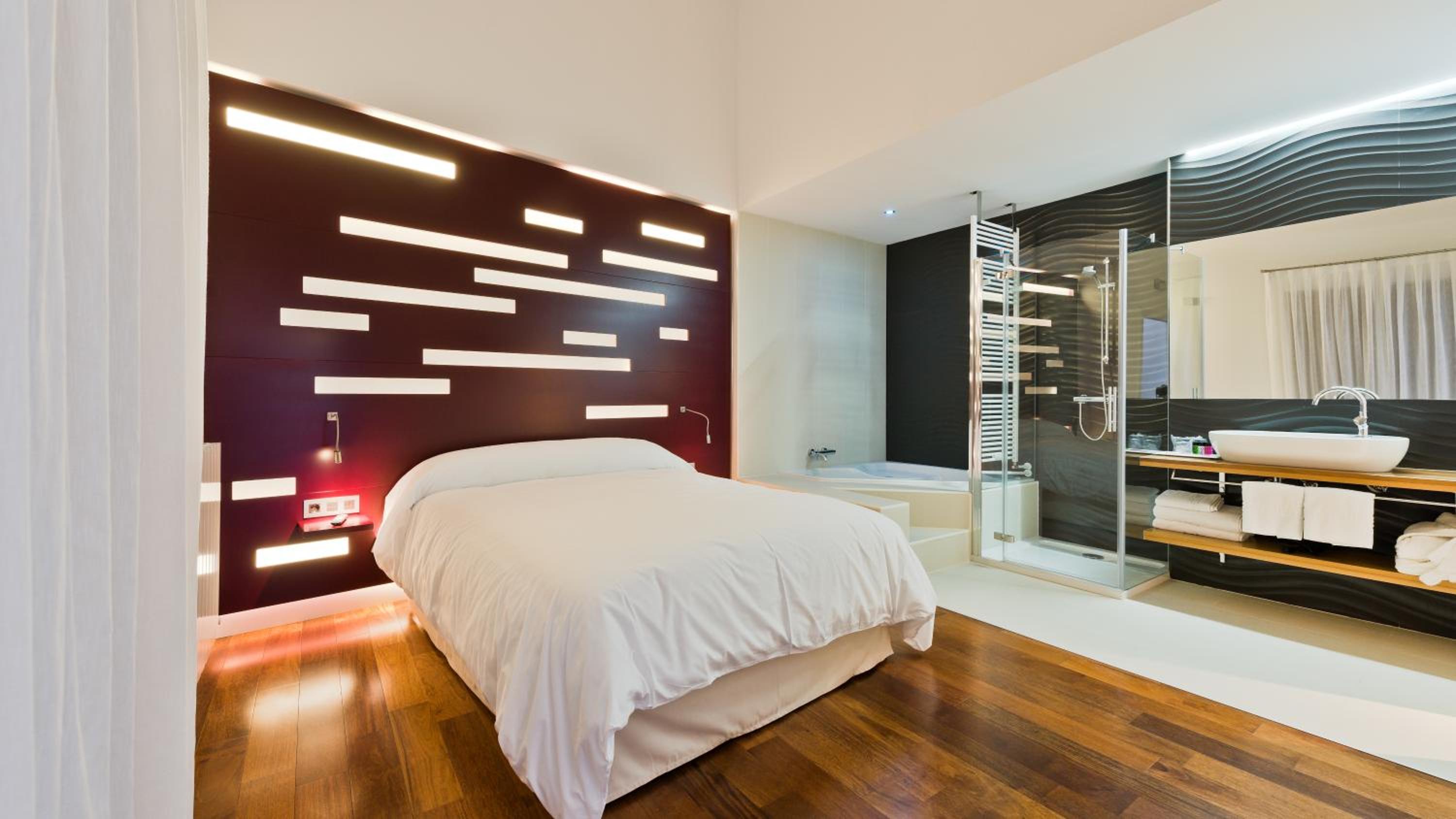 La habitación era de un gusto extraño, con el jacuzzi dentro de la habitación y sin separación de muros ni en el jacuzzi ni en la ducha, por lo que la intimidad se ve bastante comprometida. La decoración es de dudoso gusto, la habitación a modo de saloncito era una simple cama y una mesa de cristal con dos sillas. La iluminación deja bastante que desear.
