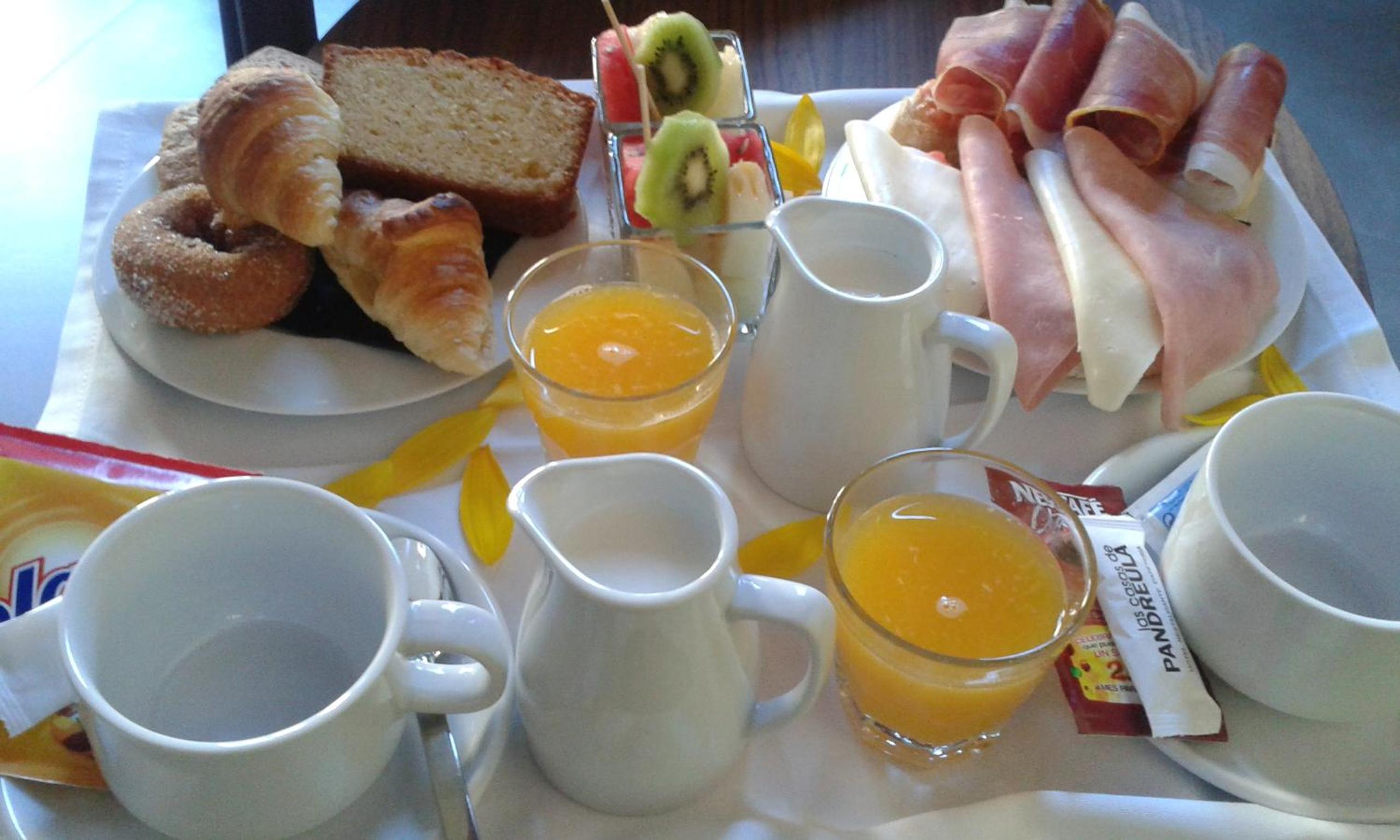 Habitación muy limpia,nueva ,amplia,las camas muy cómodas, muy buen cuarto de baño,quizá le falte un poco más de luz,el desayuno depende de cada persona,para nosotros fue suficiente y con un precio justo ( 5'95 x persona ) café,zumo natural y tostada de pan, no de molde, o bien con mantequilla y mermelada o con tomate y aceite.