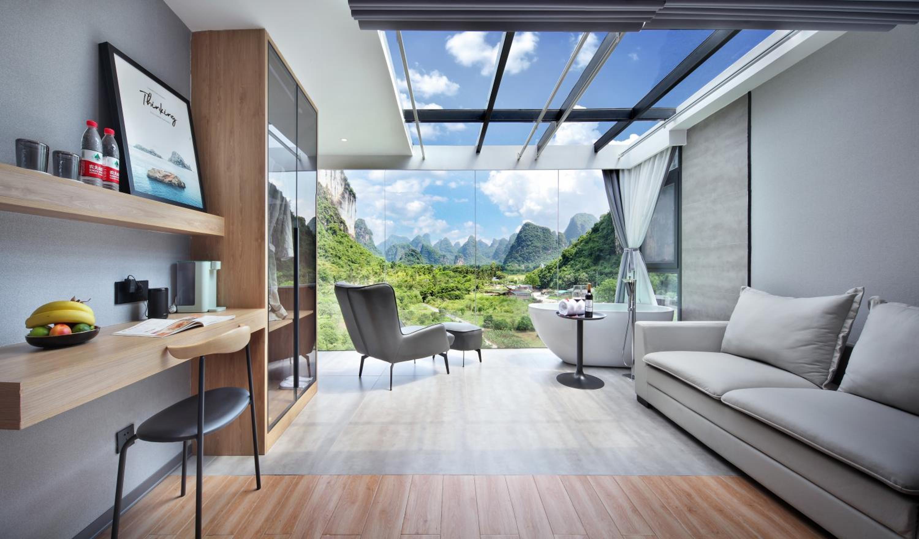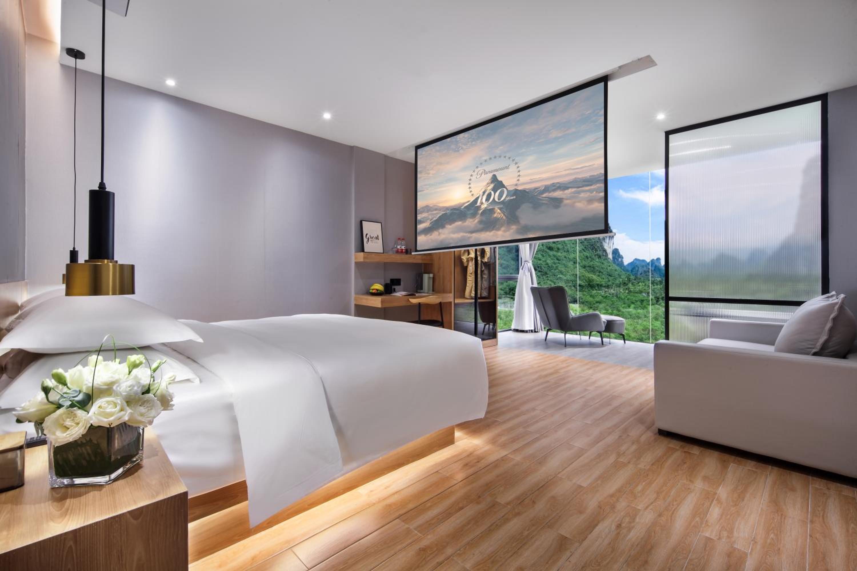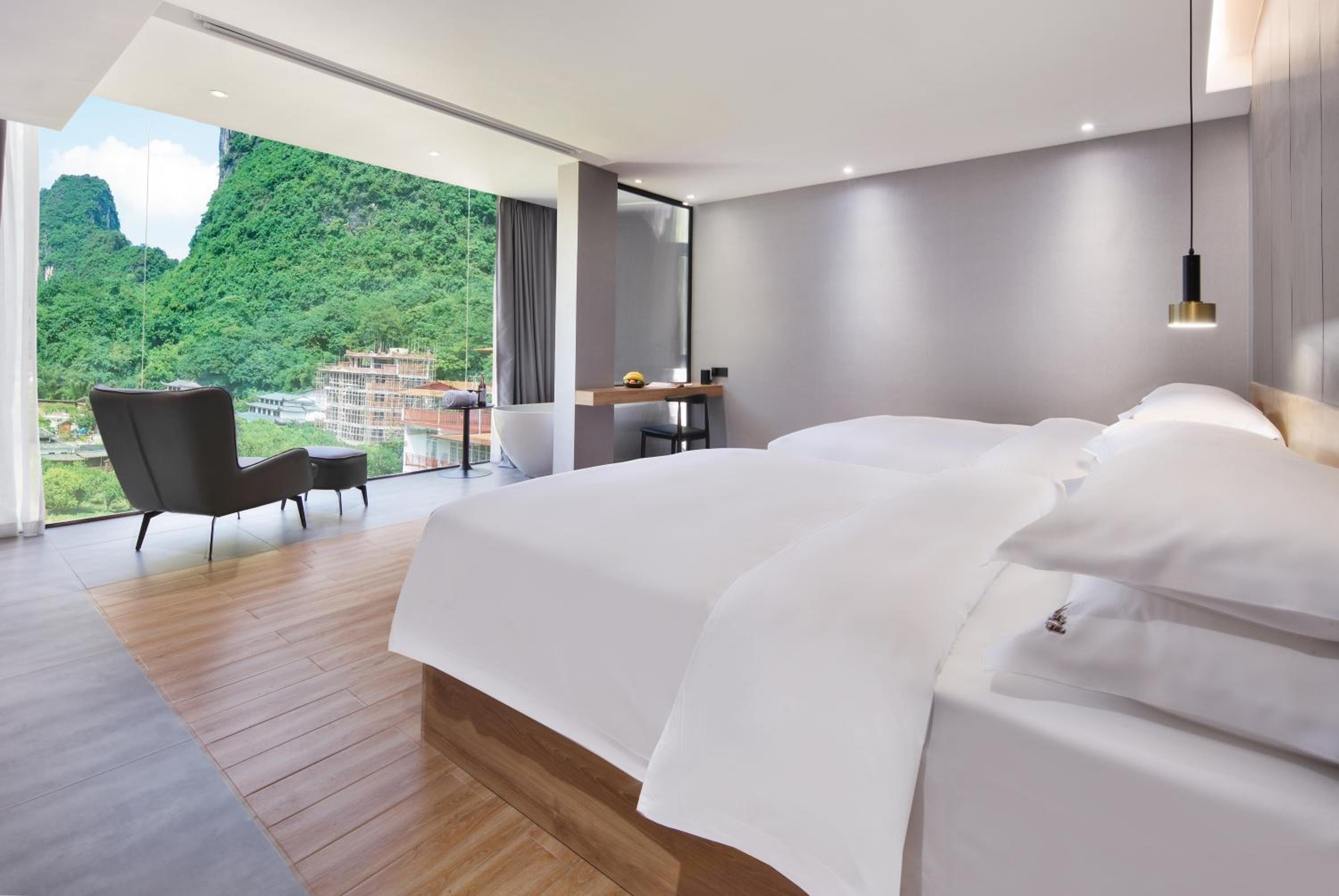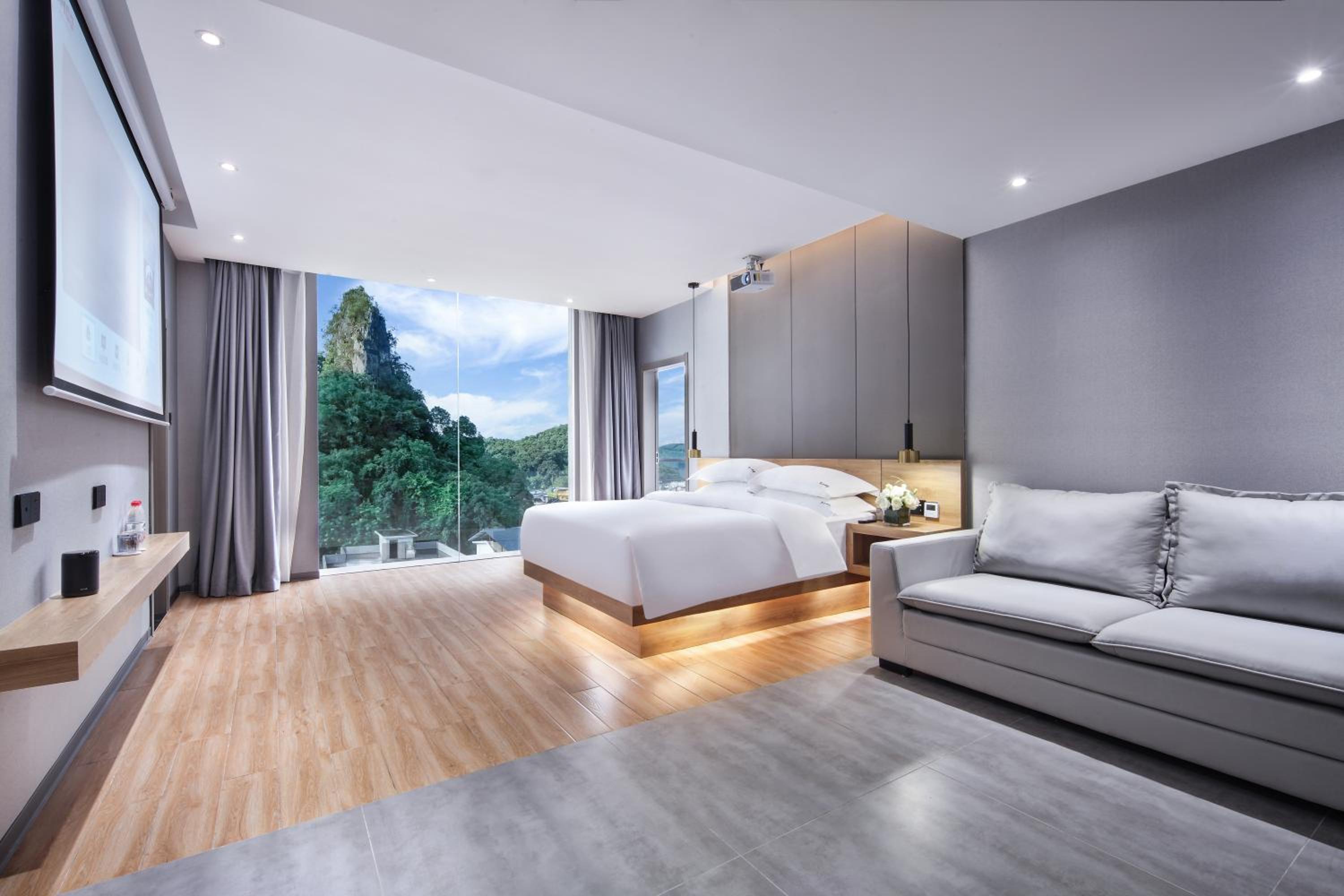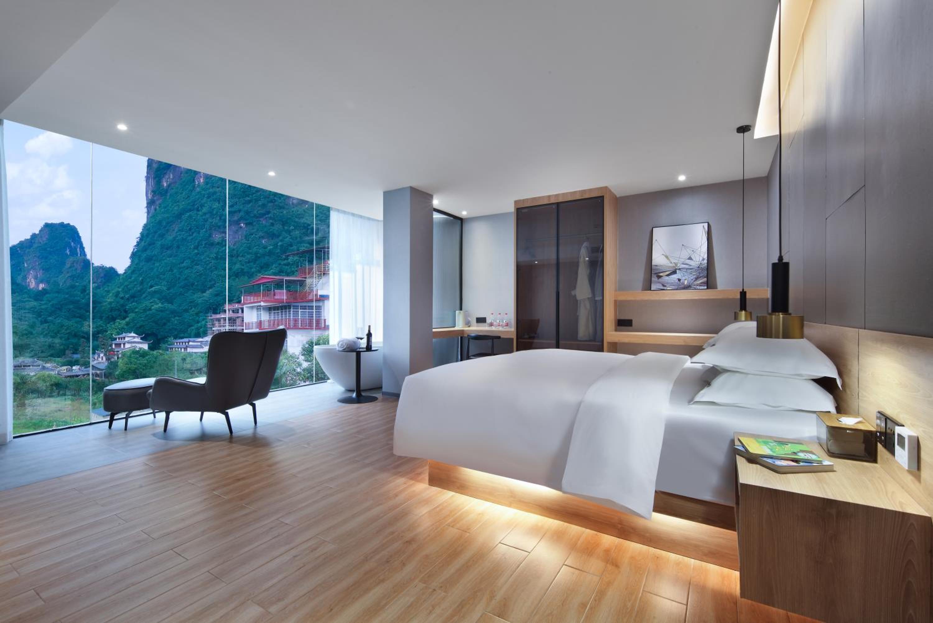 Сам отель новый.Очень современный, хозяин Марк сделал "умный дом". Голосовое управление, правда, на китайском, поэтому нам пришлось пользоваться пультом для управления всей технической начинкой. "Умный " электронный унитаз впечатлил! Но самое главное - это панорамные окна с потрясающим видом! Фото, представленные в букинге, не преукрашены. Действительность даже лучше! Кроме того, все в номере, от постельного белья до банной косметики, высокого качества. Это чувствуется в деталях.