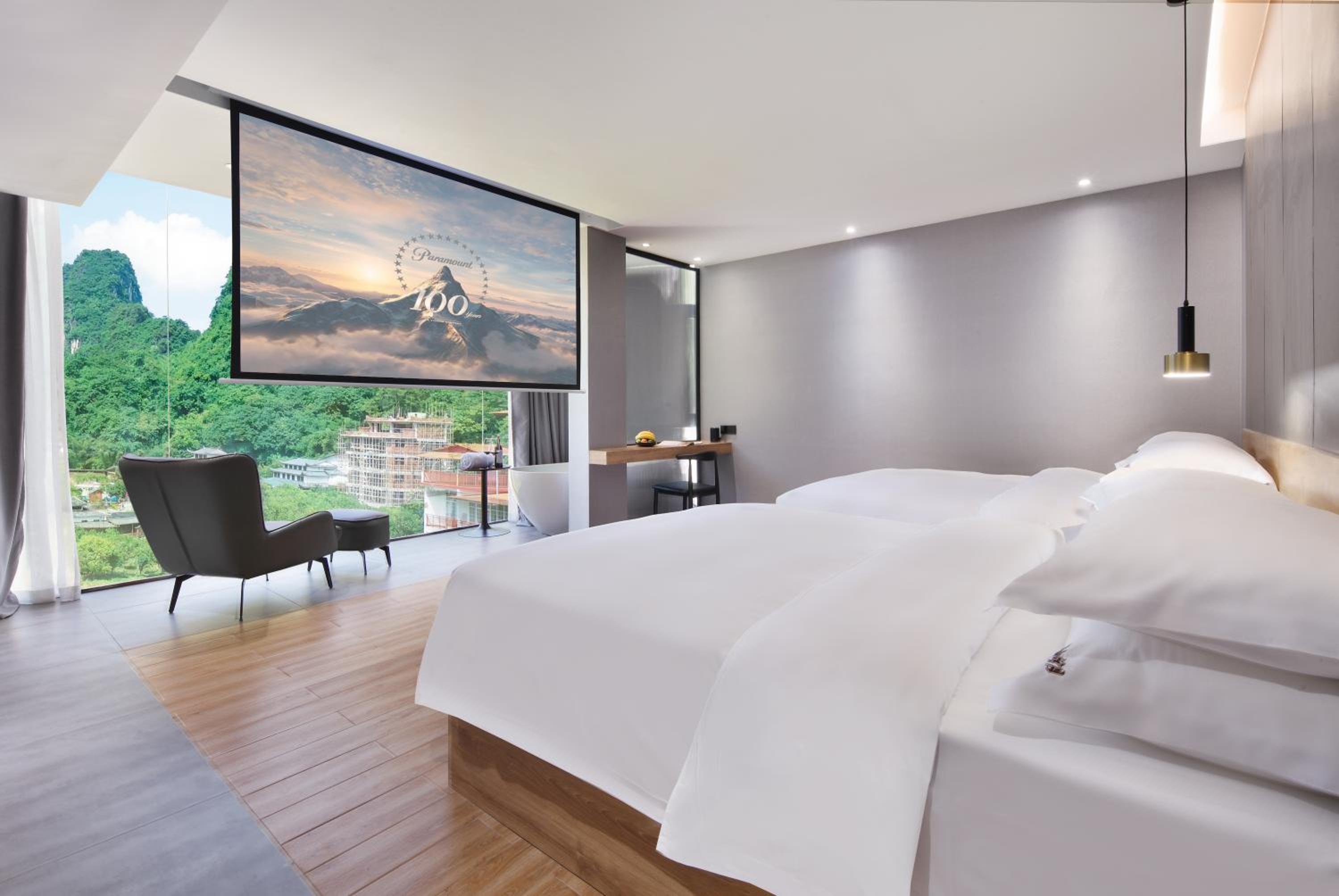 Lanshan Moon Resort boasts an outdoor swimming pool, fitness centre, and a garden, providing the perfect setting for relaxation and rejuvenation. Guests can also indulge in mountain views from the terrace, enjoy a meal at the restaurant, or unwind with a drink at the bar.
