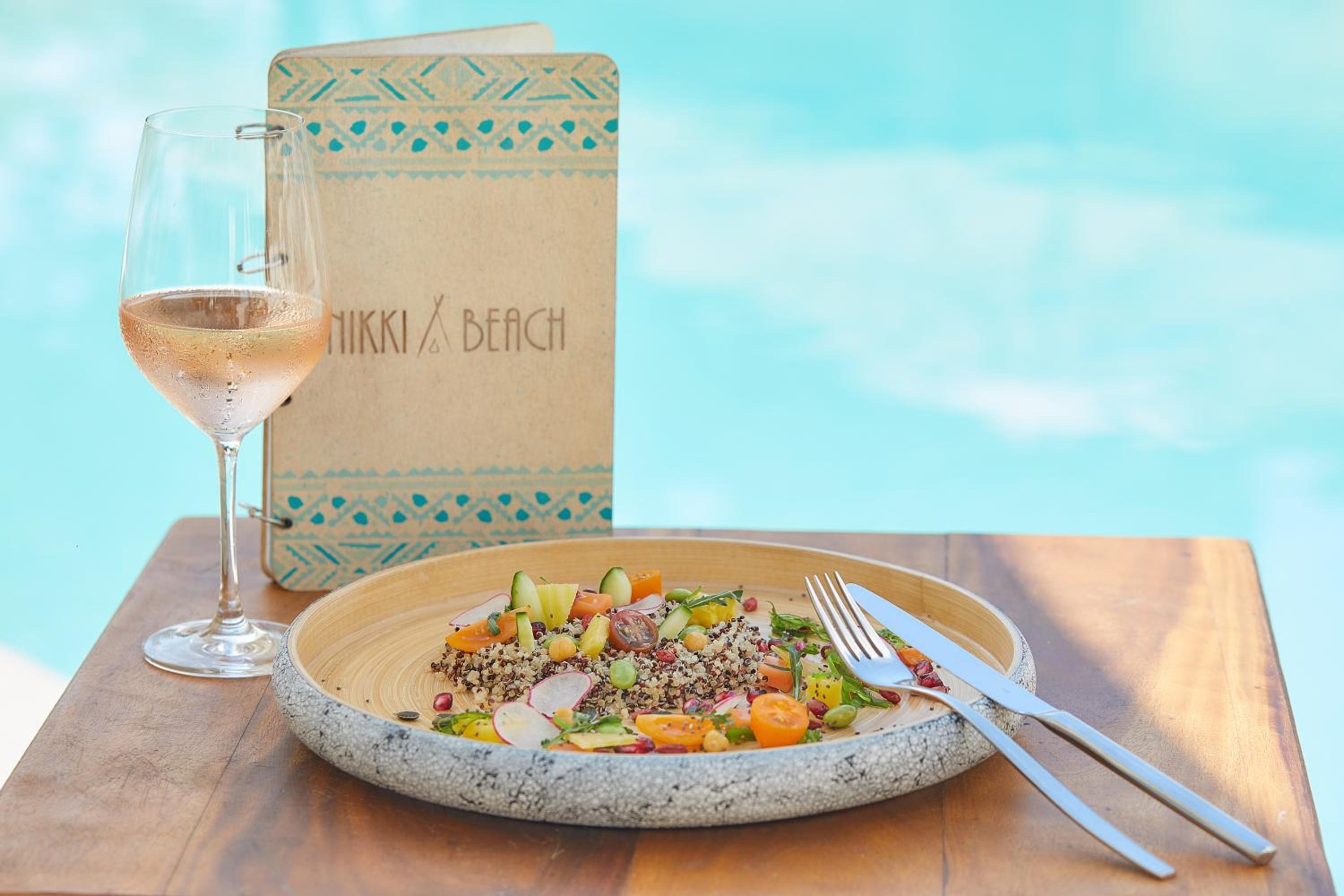 Poolside food and cocktails