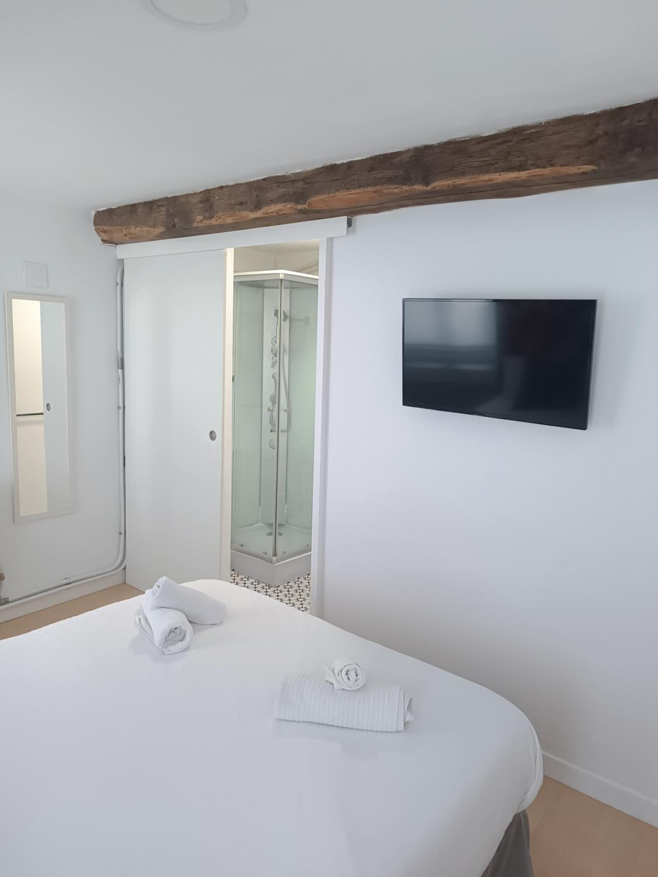 Aceptan mascotas y eso es muy bueno, había nevera microondas y cafetera. La cama era muy cómoda. Para pasar una noche no está mal. Y calidad precio de la zona también está bien y hay un Eroski al lado.