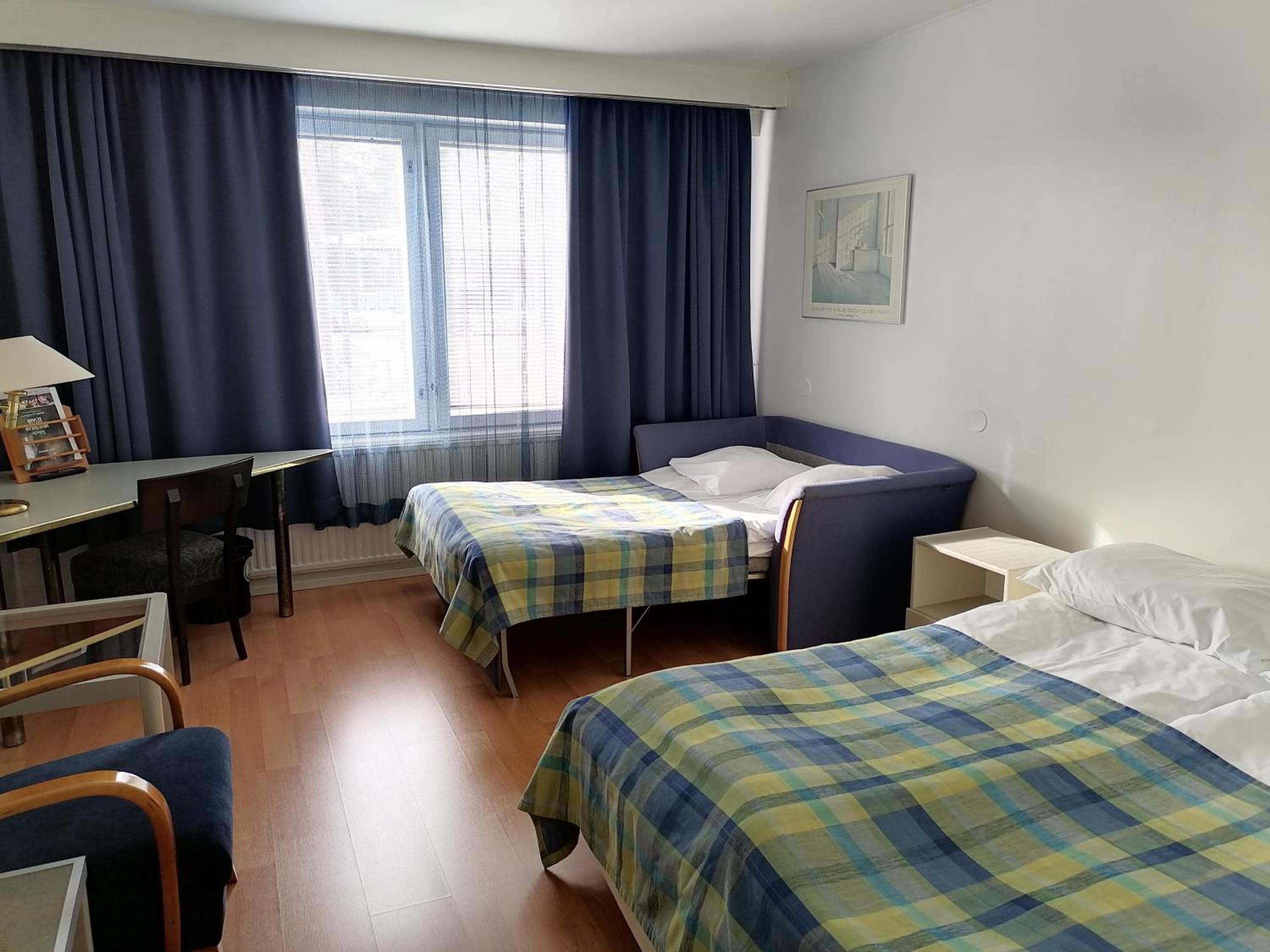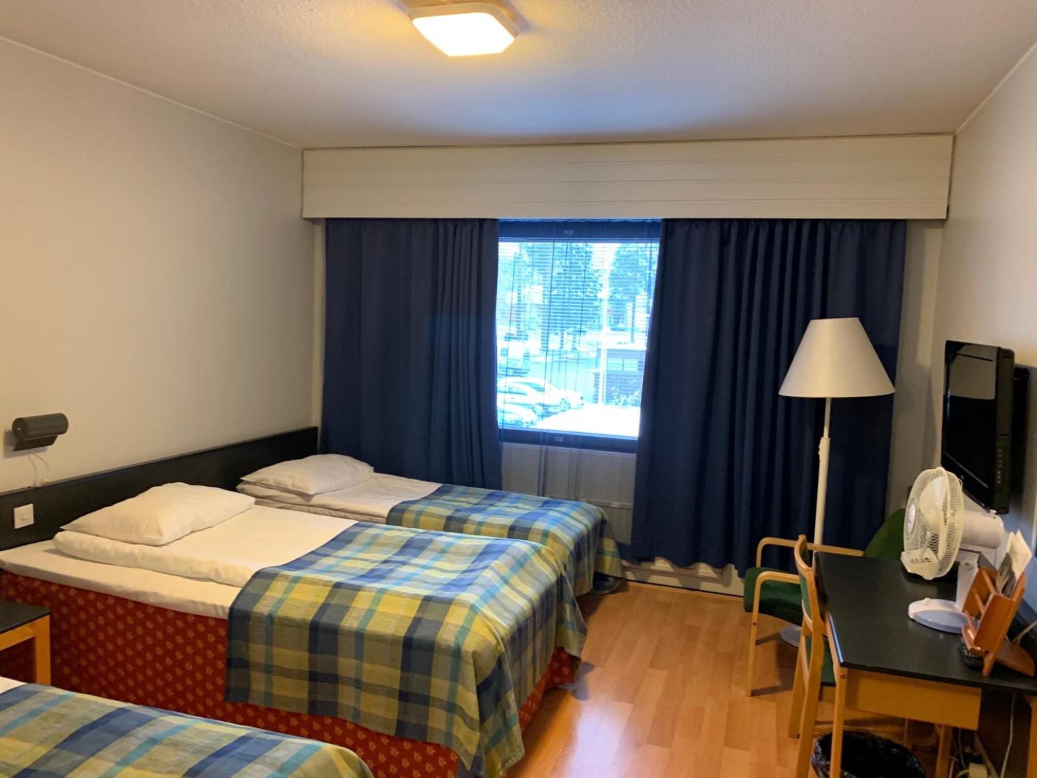 Huone ei ollut siisti (salmiakki lattialla, pölyä) eikä huoneessa ollut ilmastointia, oli tukalaa, sisustus 80-luvulta. Kylpylä meni aikaisin kiinni, emme ehtineet sinne.