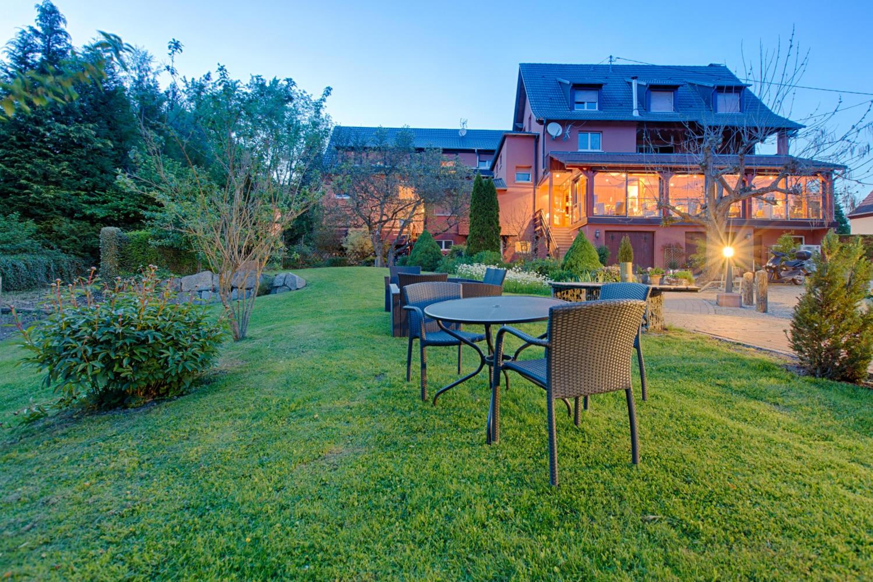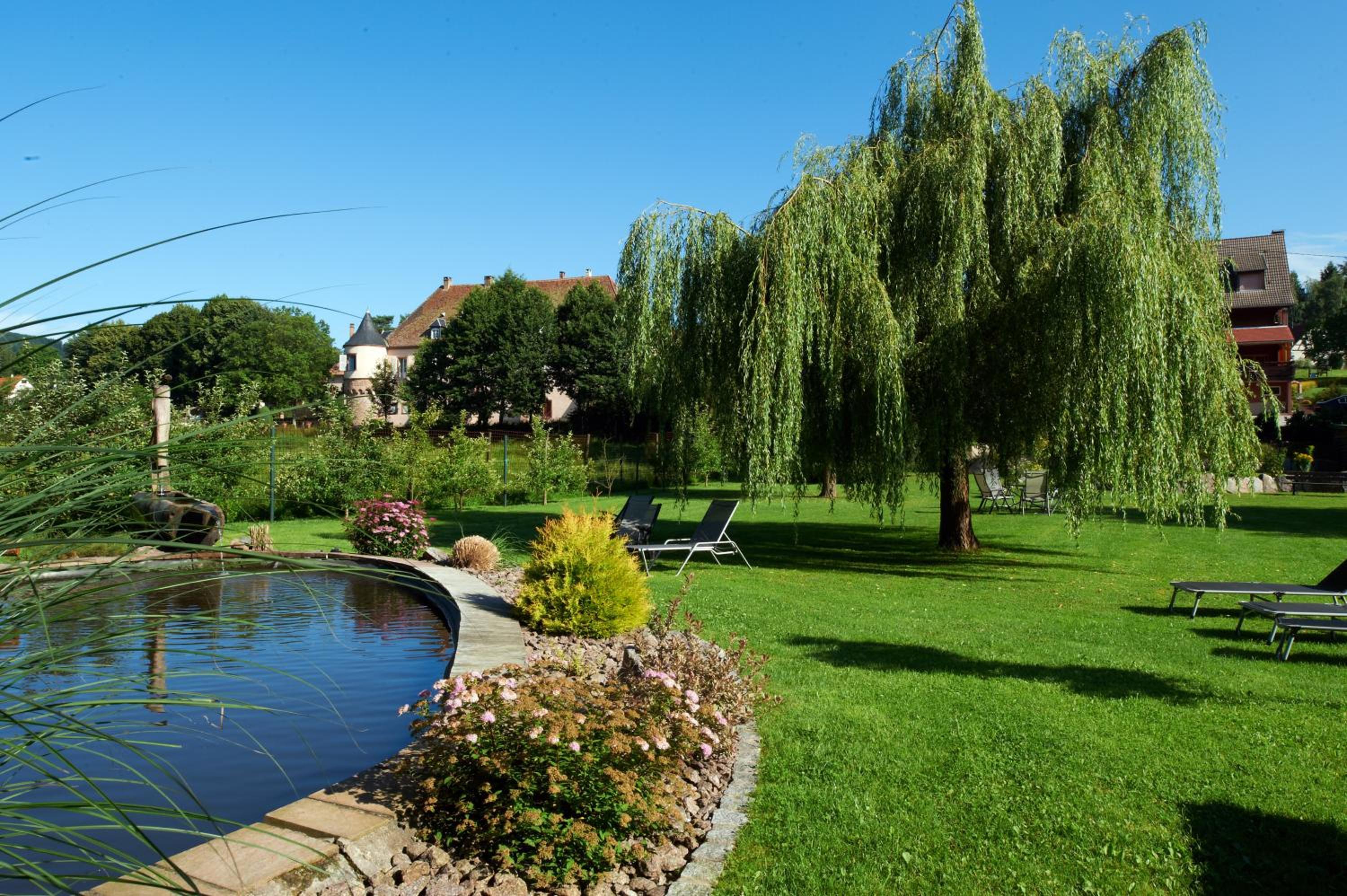 Hotel Restaurant des Vosges, nestled in the heart of Birkenwald, offers a peaceful retreat just 12 km from Saverne. The tranquil garden with deck chairs and ponds provides a perfect spot to unwind.