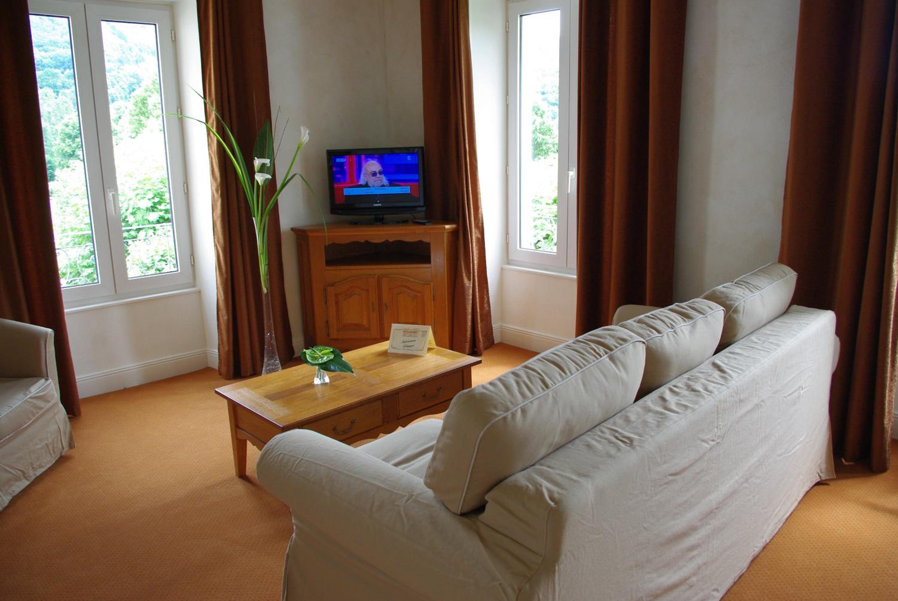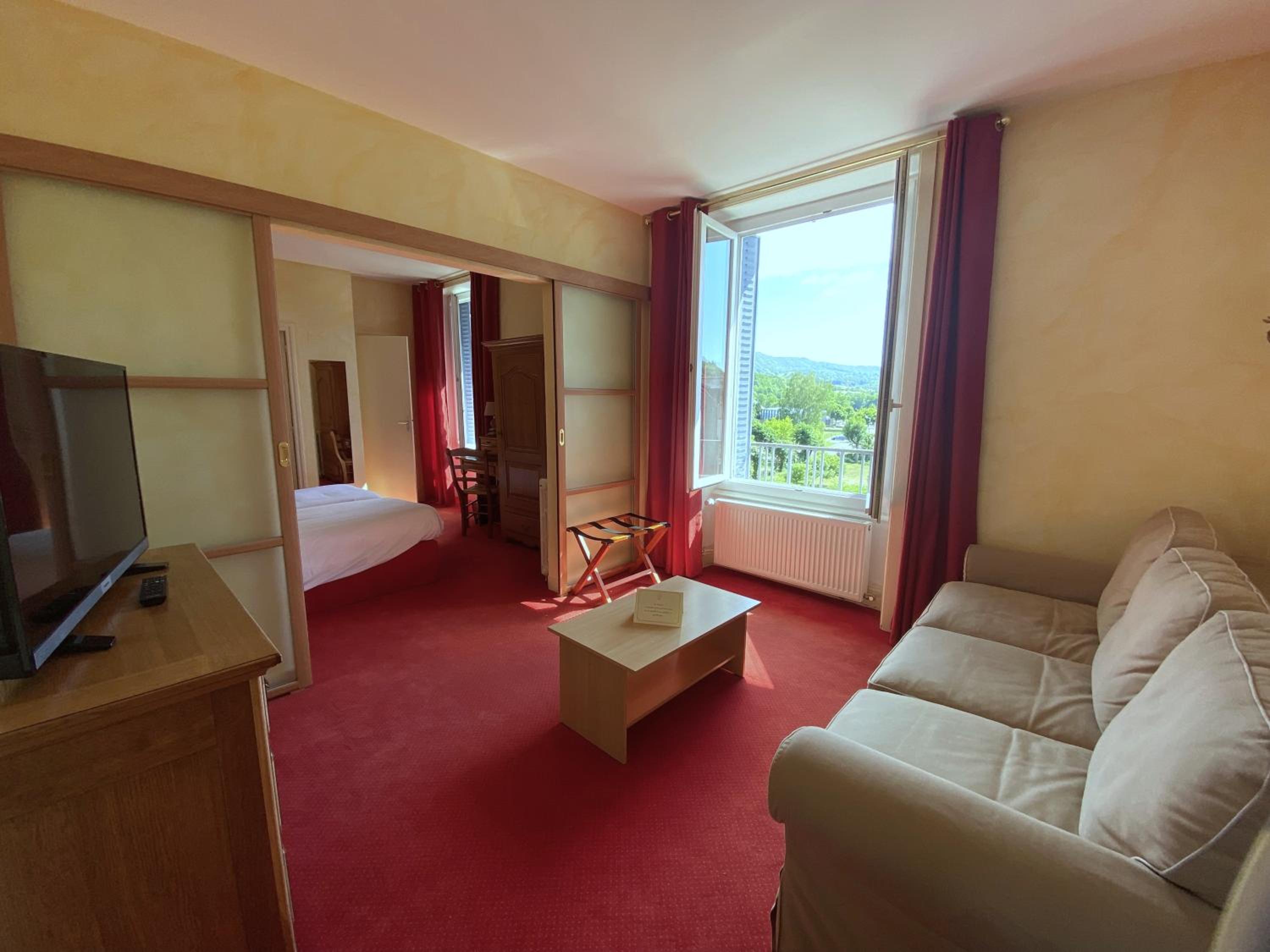 Experience breathtaking views of the Cantal Mountains from our hotel in the heart of Vic-sur-Cère. The Beauséjour's outdoor swimming pool offers the perfect spot to relax and soak in the picturesque surroundings.