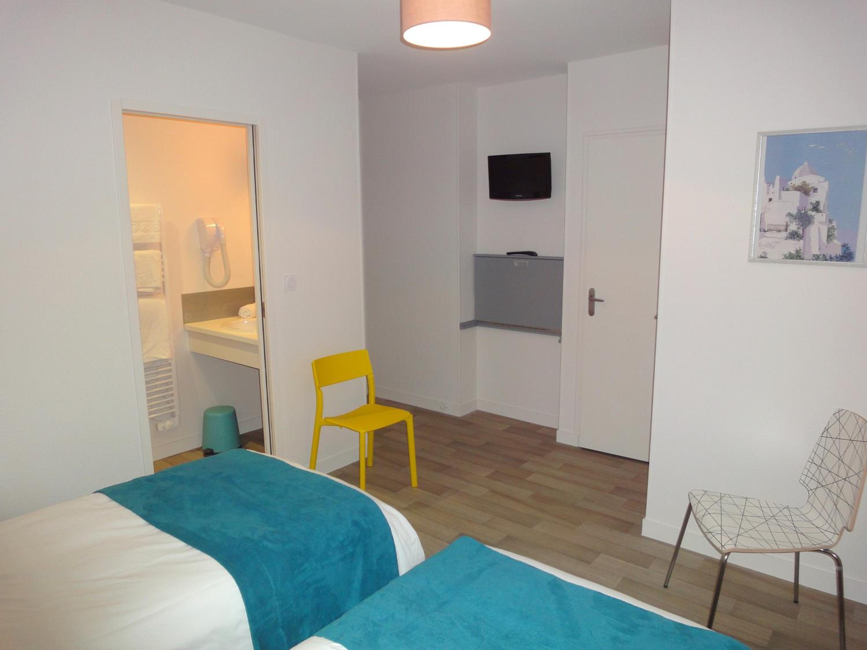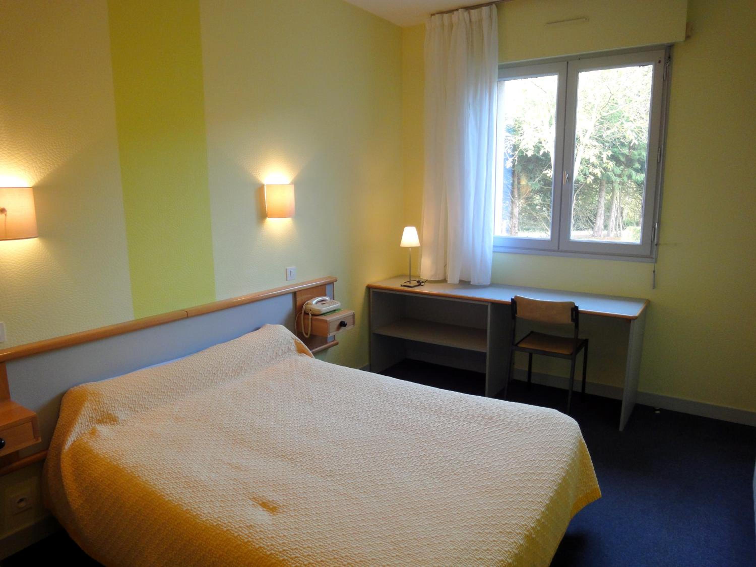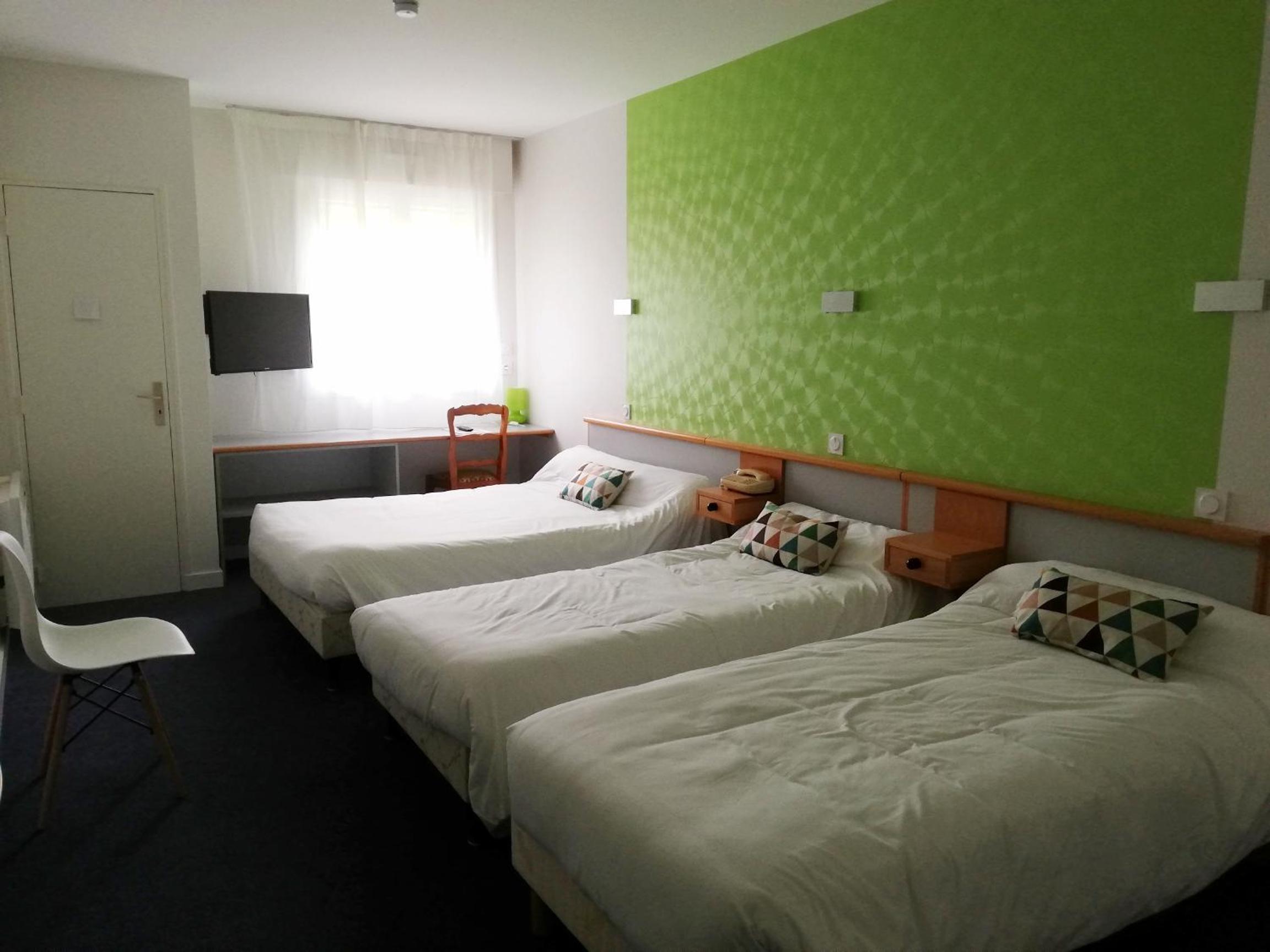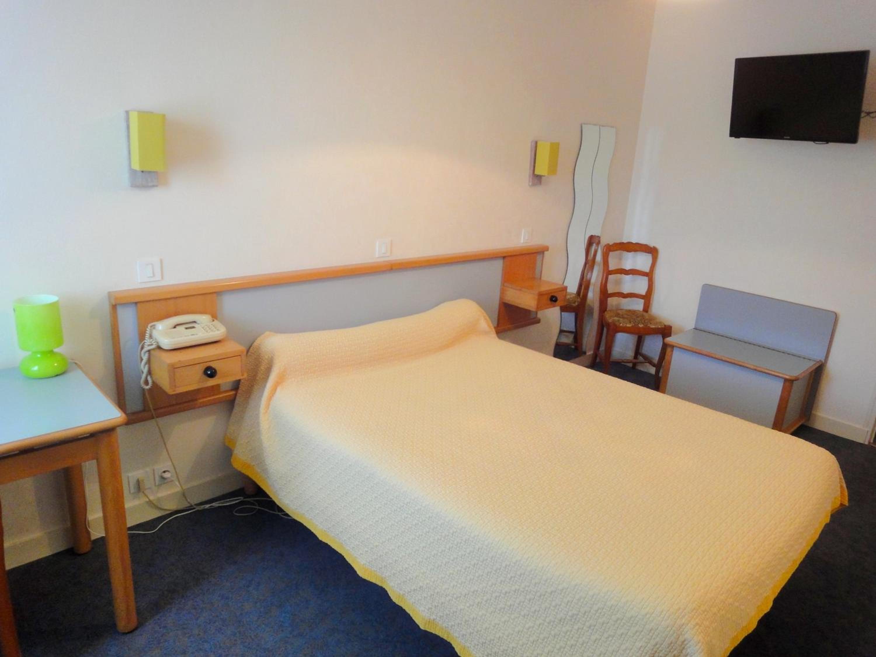 Comfortable Accommodation: Our non-smoking guest rooms are equipped with essential amenities like a TV, desk, and wardrobe, ensuring a cozy stay during your visit to Vitré.