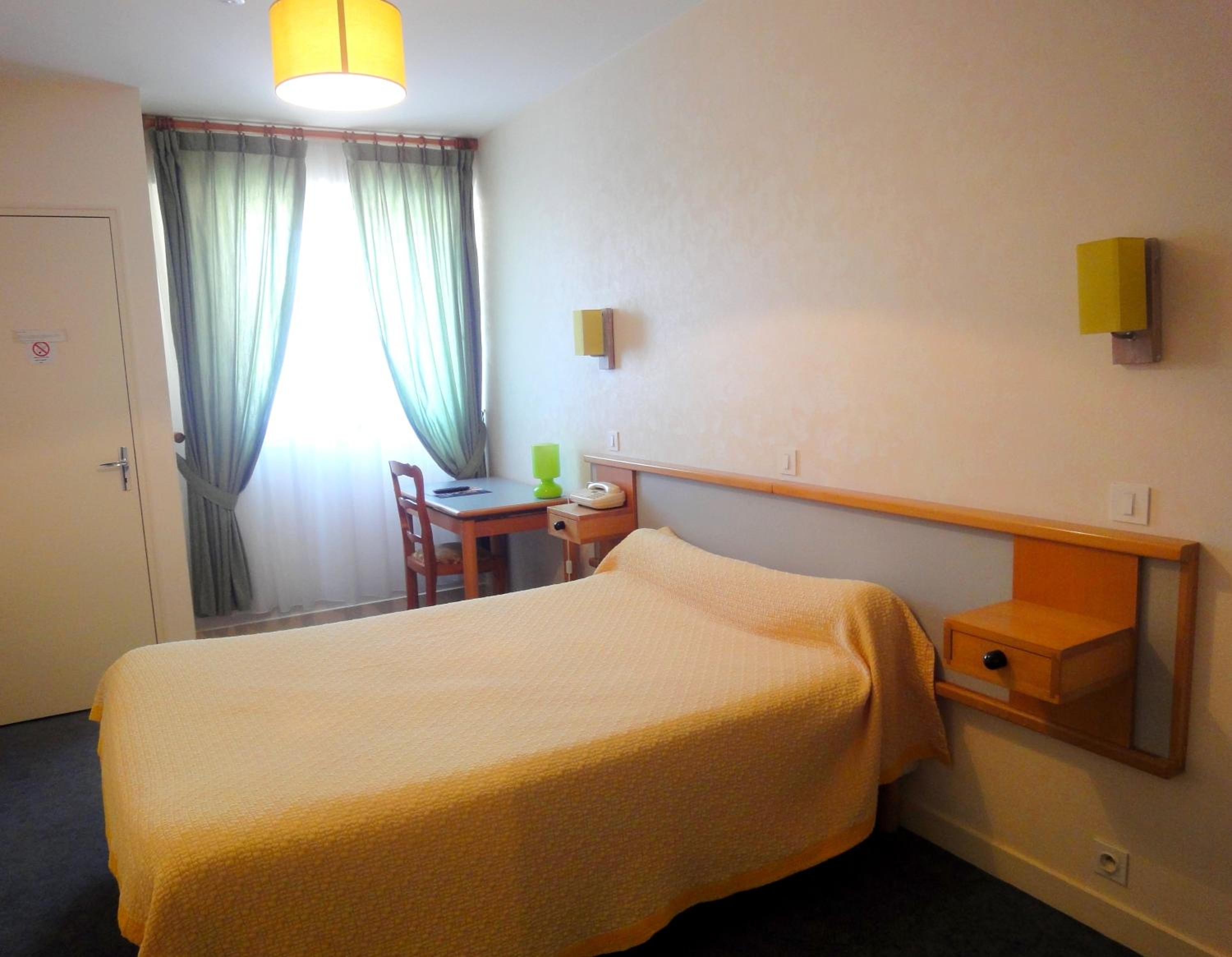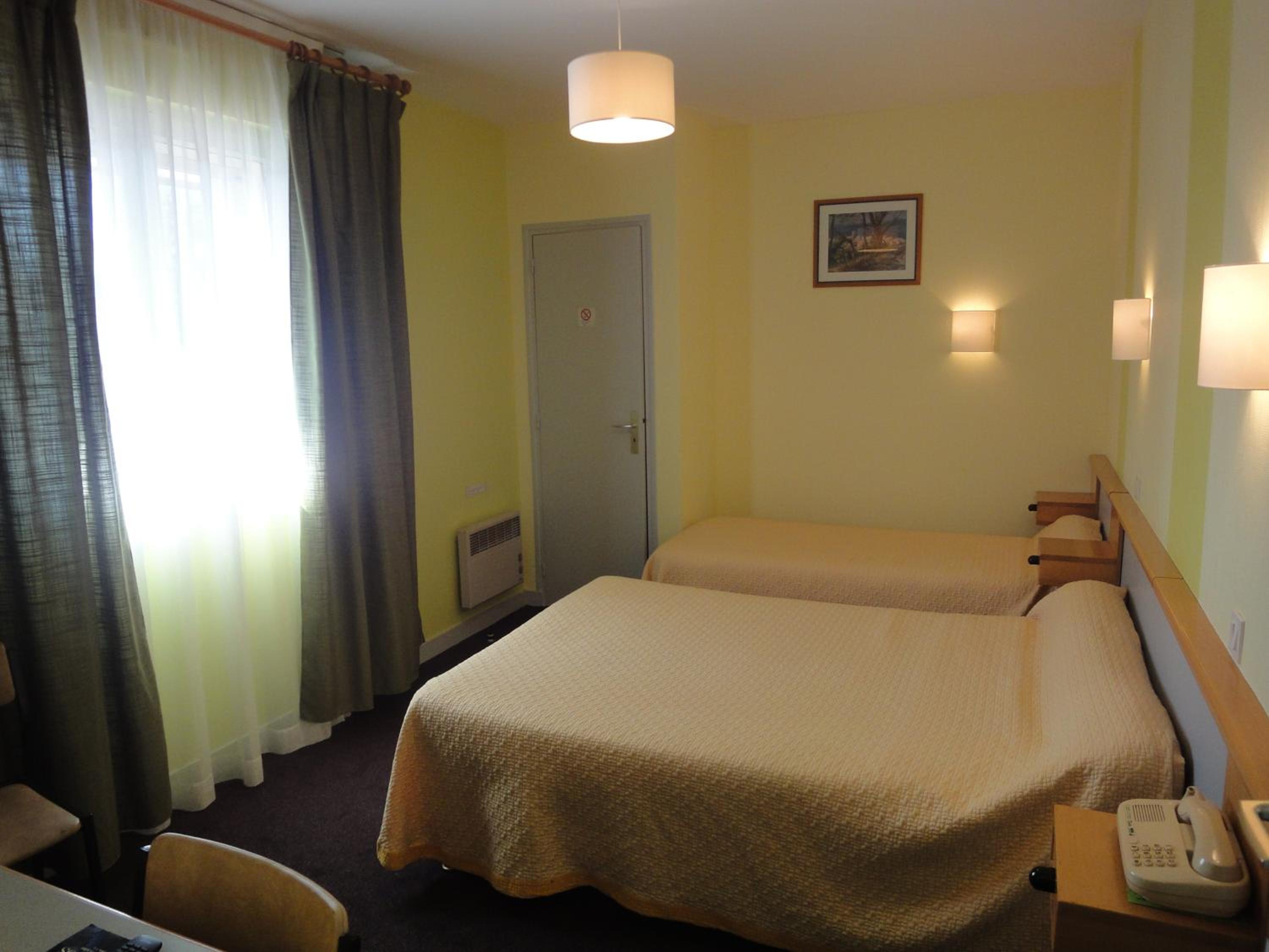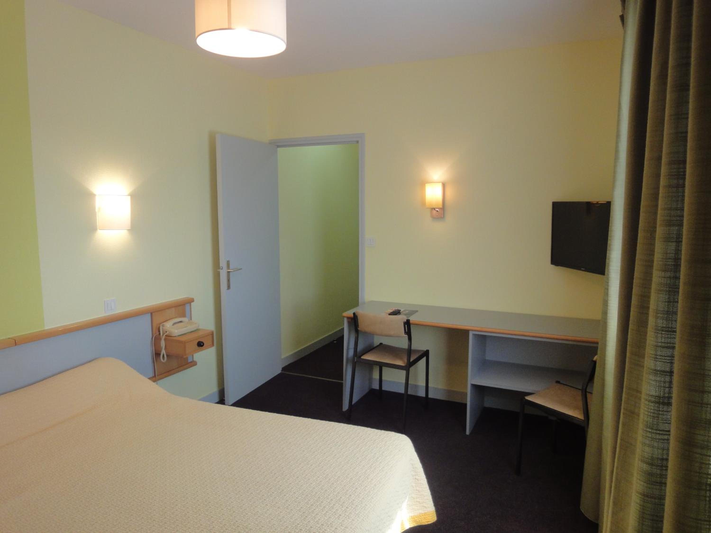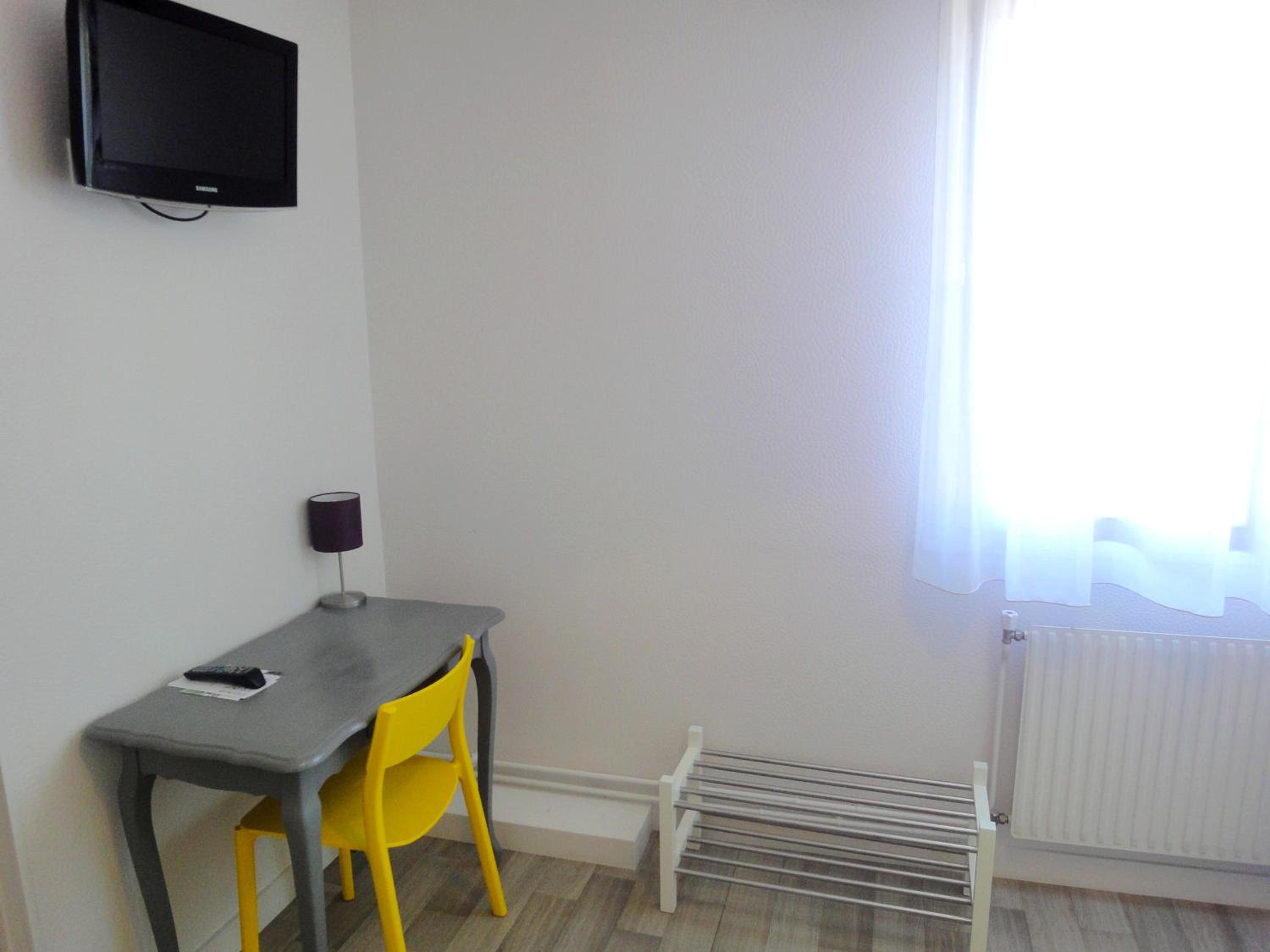 Comfortable Accommodation: Our non-smoking guest rooms are equipped with essential amenities like a TV, desk, and wardrobe, ensuring a cozy stay during your visit to Vitré.