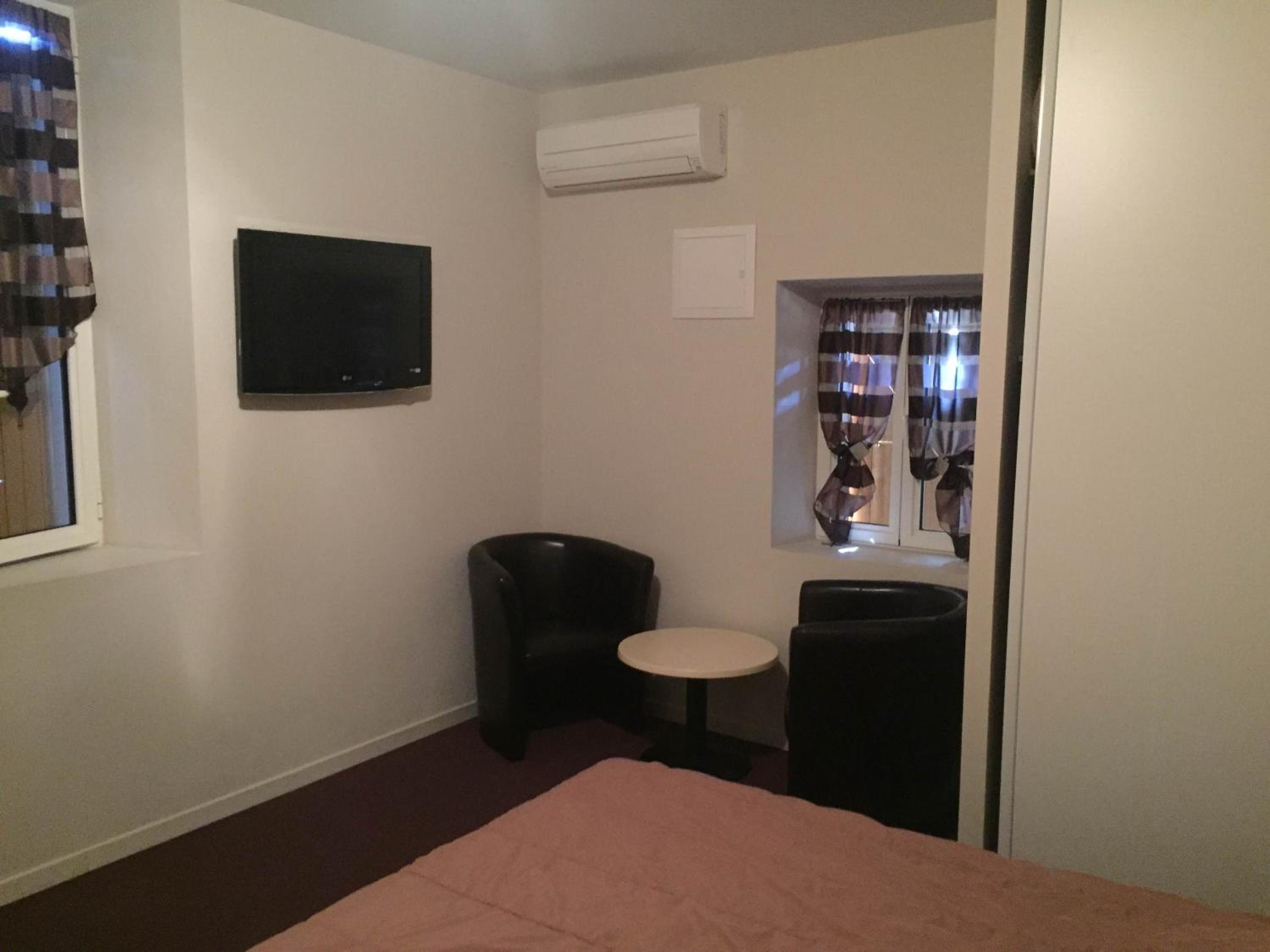 Each room is thoughtfully equipped with modern conveniences, including a flat-screen TV with satellite channels and well-appointed bathrooms with complimentary toiletries. Some rooms even offer a fully equipped kitchen, adding a touch of home comfort to your stay.