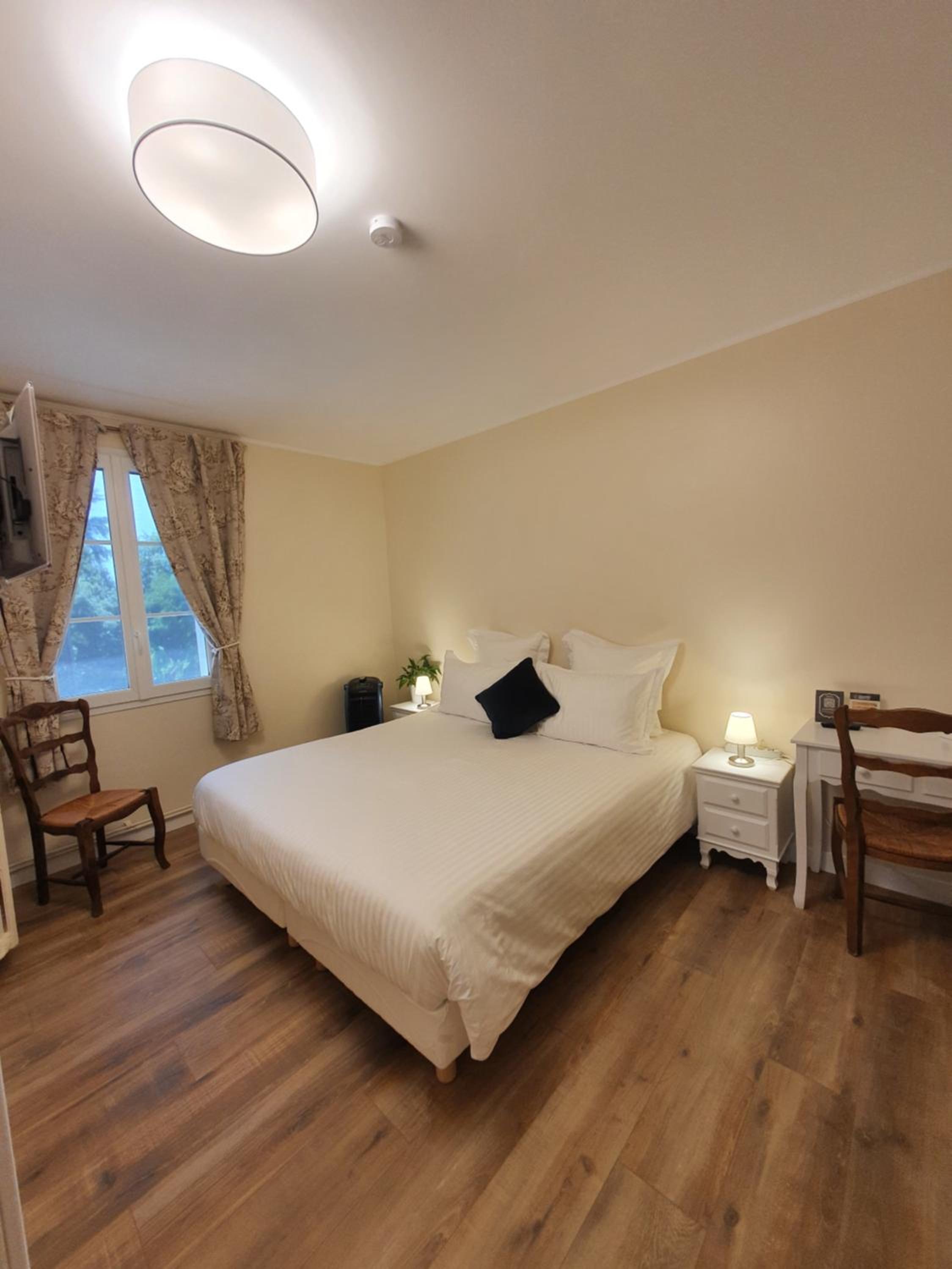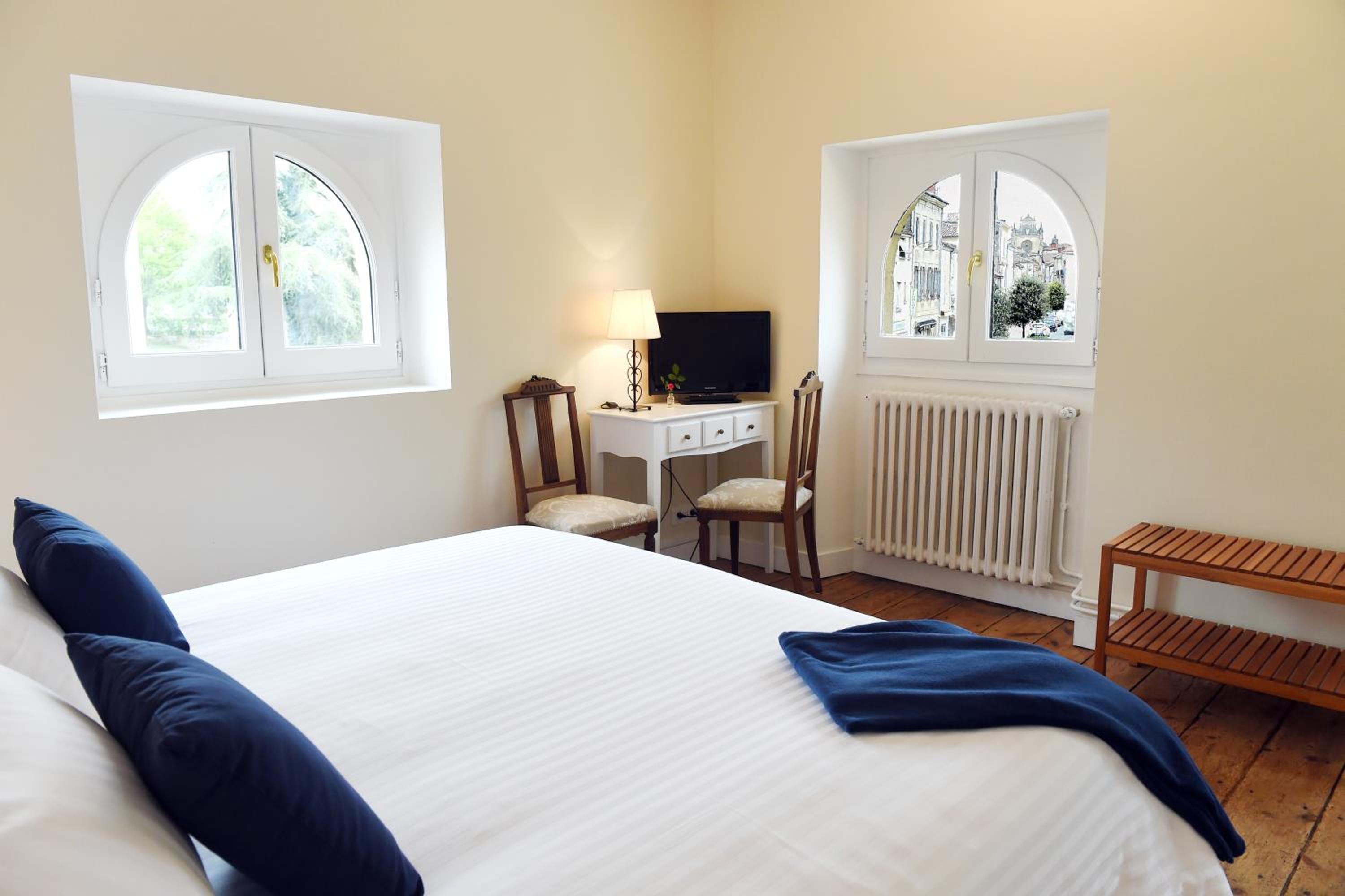 Each room at Le Rodin Bazas is thoughtfully designed with a desk, flat-screen TV, and a private bathroom. Guests can unwind in a serene environment with cozy bed linen and towels provided. The hotel's terrace offers a picturesque setting for relaxation and enjoying the outdoors.