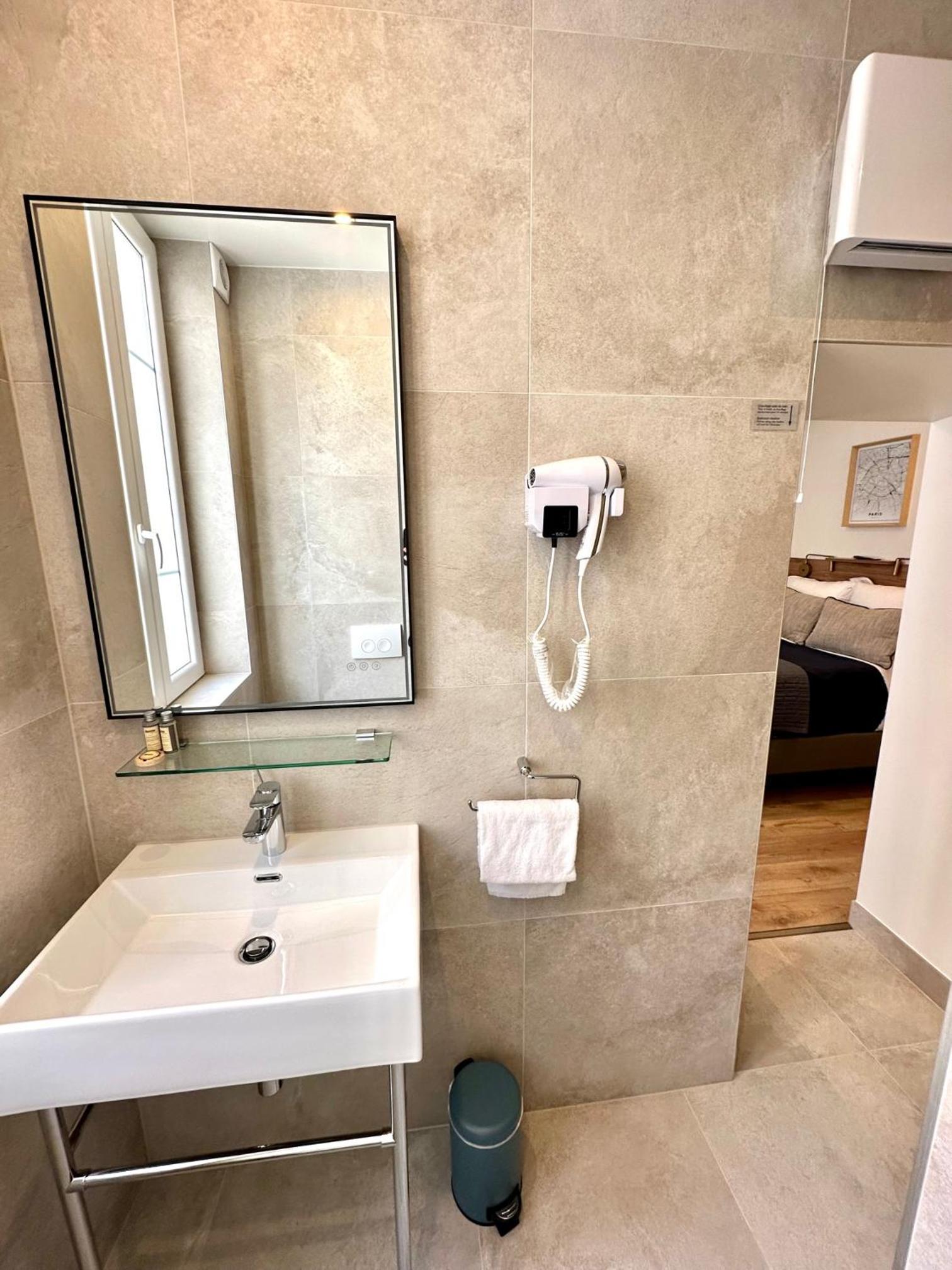 Hôtel simple et discret mais fonctionnel. La chambre était étonnamment spacieuse et parfaitement propre, tout comme la salle de bains. Il n'y a pas de service de restauration mais dans le quartier se situent de nombreux restaurants qui offrent un large choix. Pour Paris et le prix c'est tout à fait satisfaisant. Je recommande.