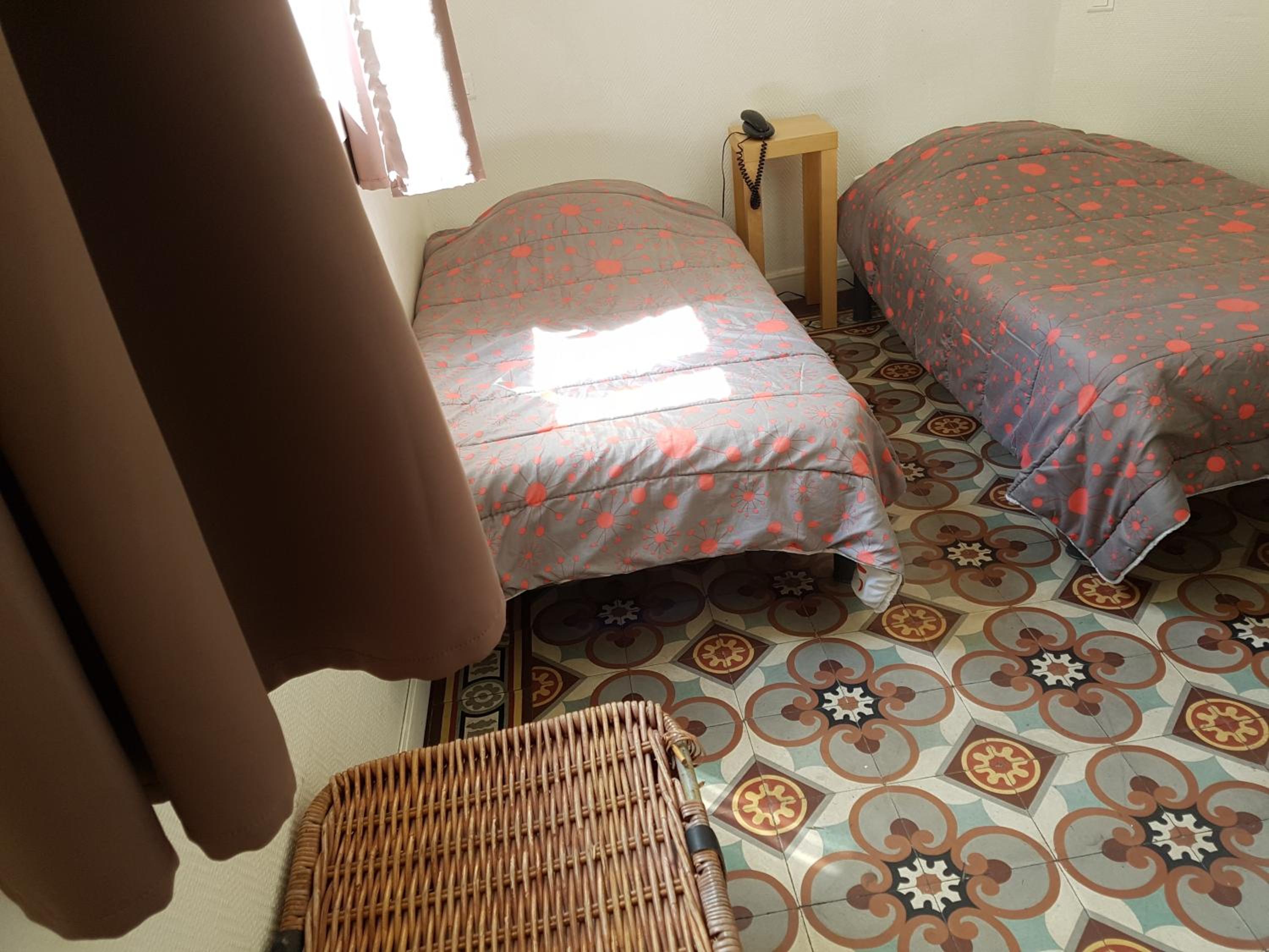 Équipement (lit, lavabo, sols) qui mériteraient un petit rafraîchissement.
