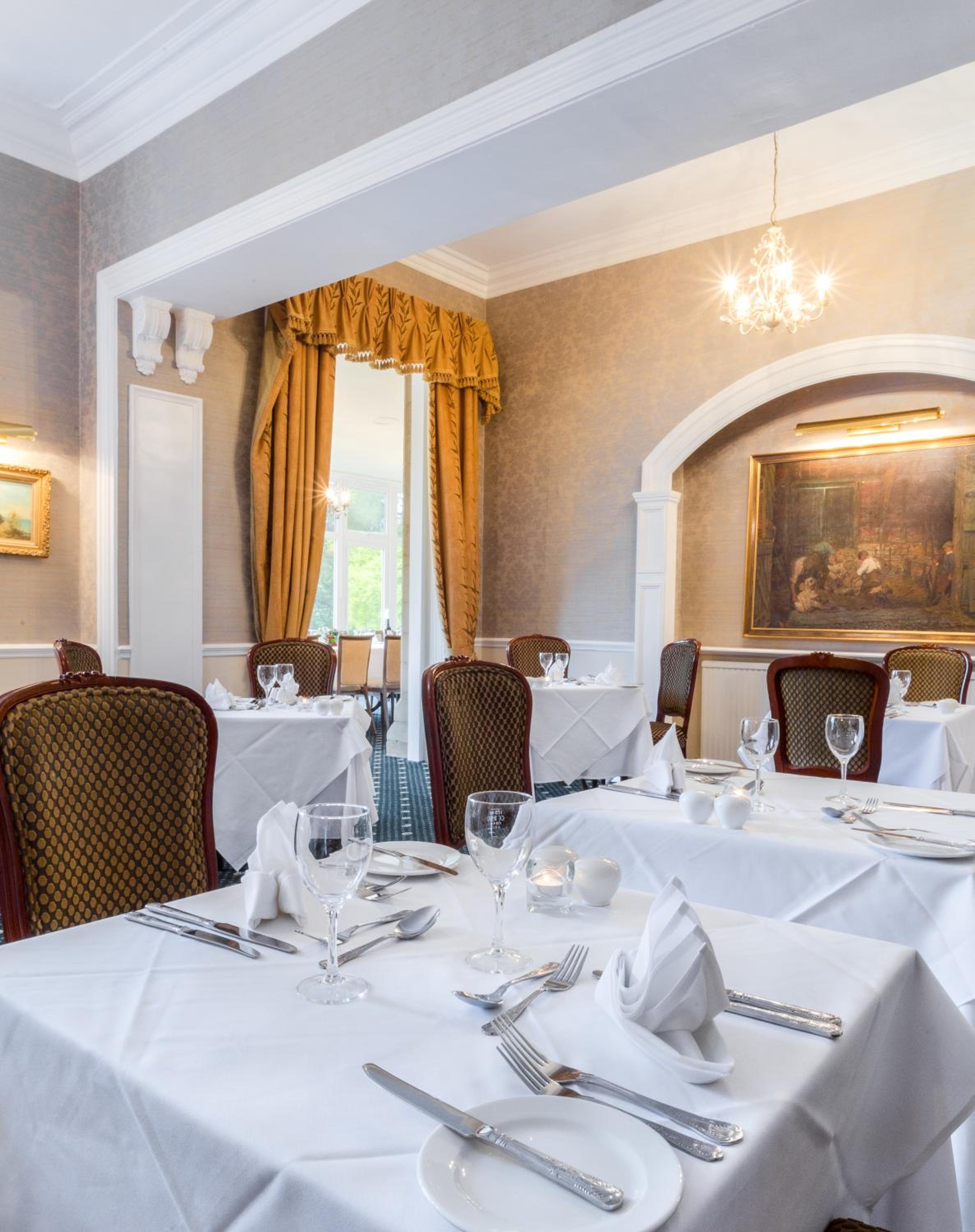 Indulge in exquisite culinary delights at the award-winning restaurant, offering locally sourced ingredients and a focus on fresh fish. Whether you opt for the à la carte or bistro menu, the dining room's panoramic views of the lush lawn enhance your dining experience.