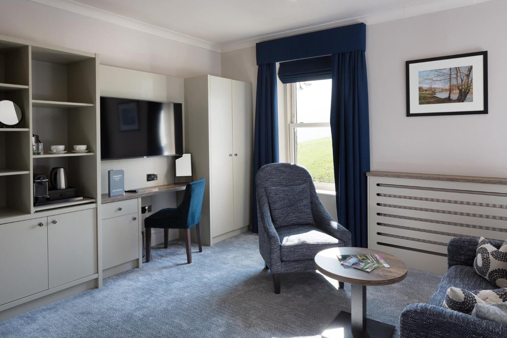 Really lovely room, spacious and comfortable, nice modern bathroom, and great outside space with seating, giving lovely views. Food was nice for evening meal and good selection at breakfast. 2 minute walk to the falls.