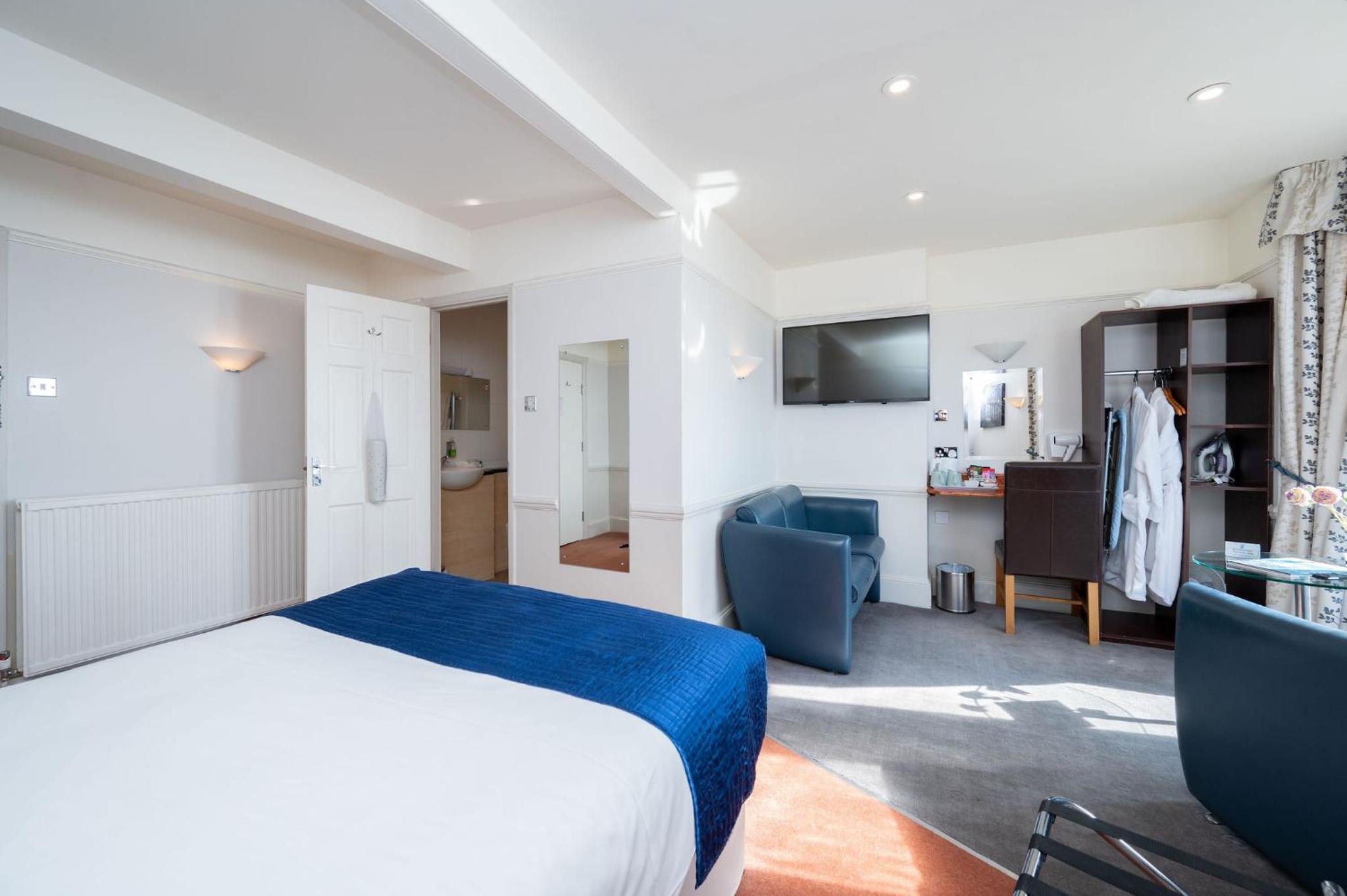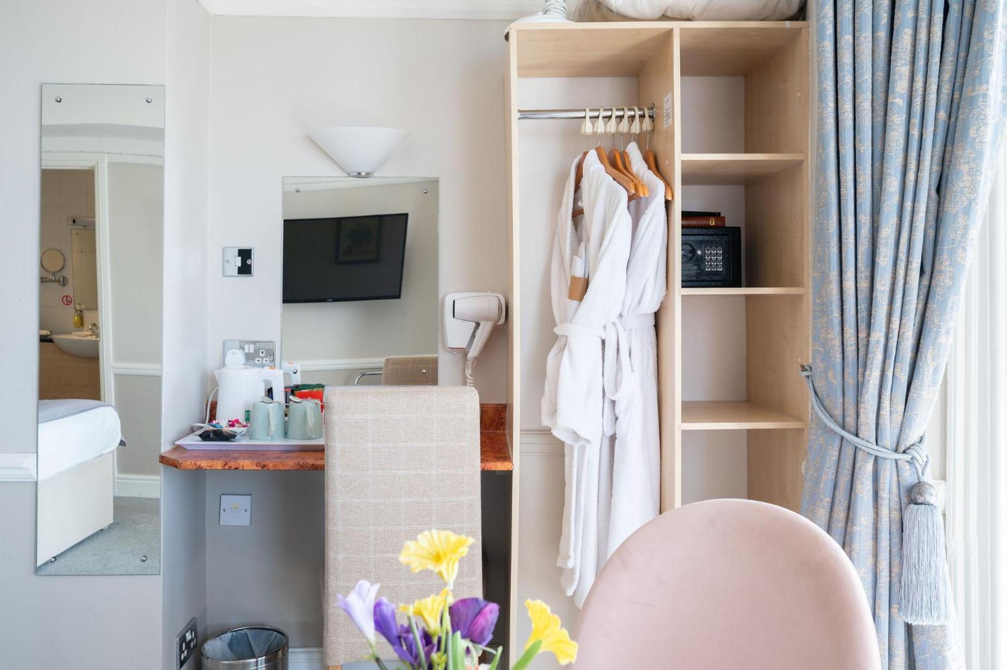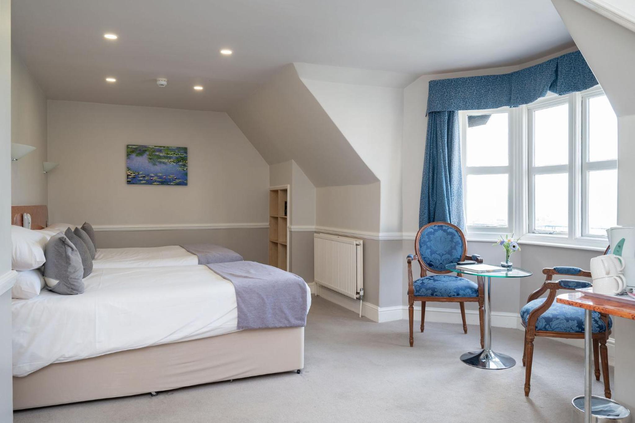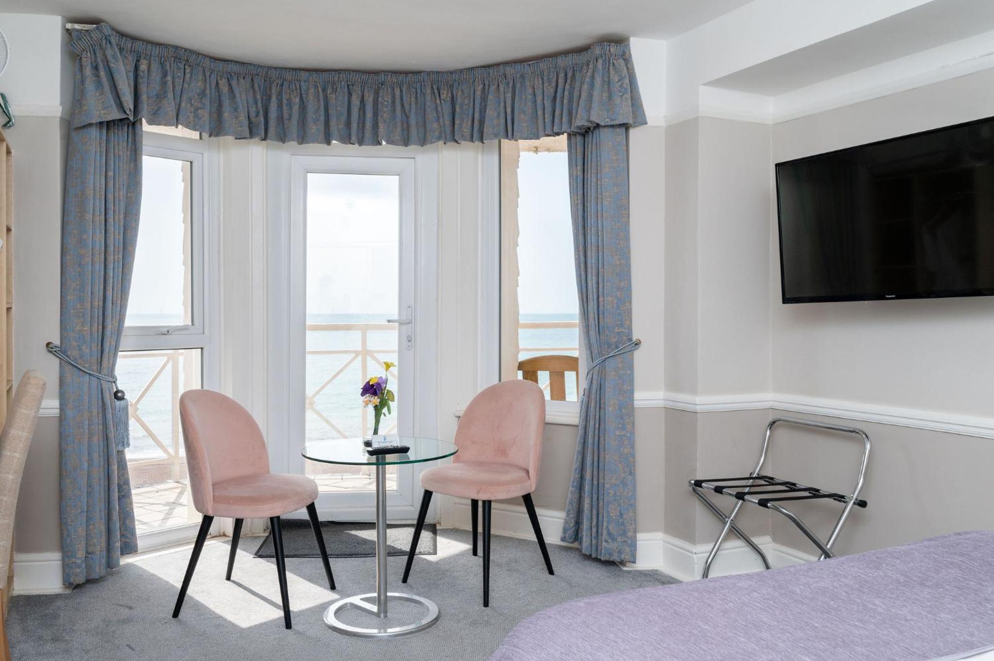 Fantastic location on the seafront. Seaview room with balcony. The bed faces out to the sea which was beautiful to wake up to. Staff friendly and helpful.