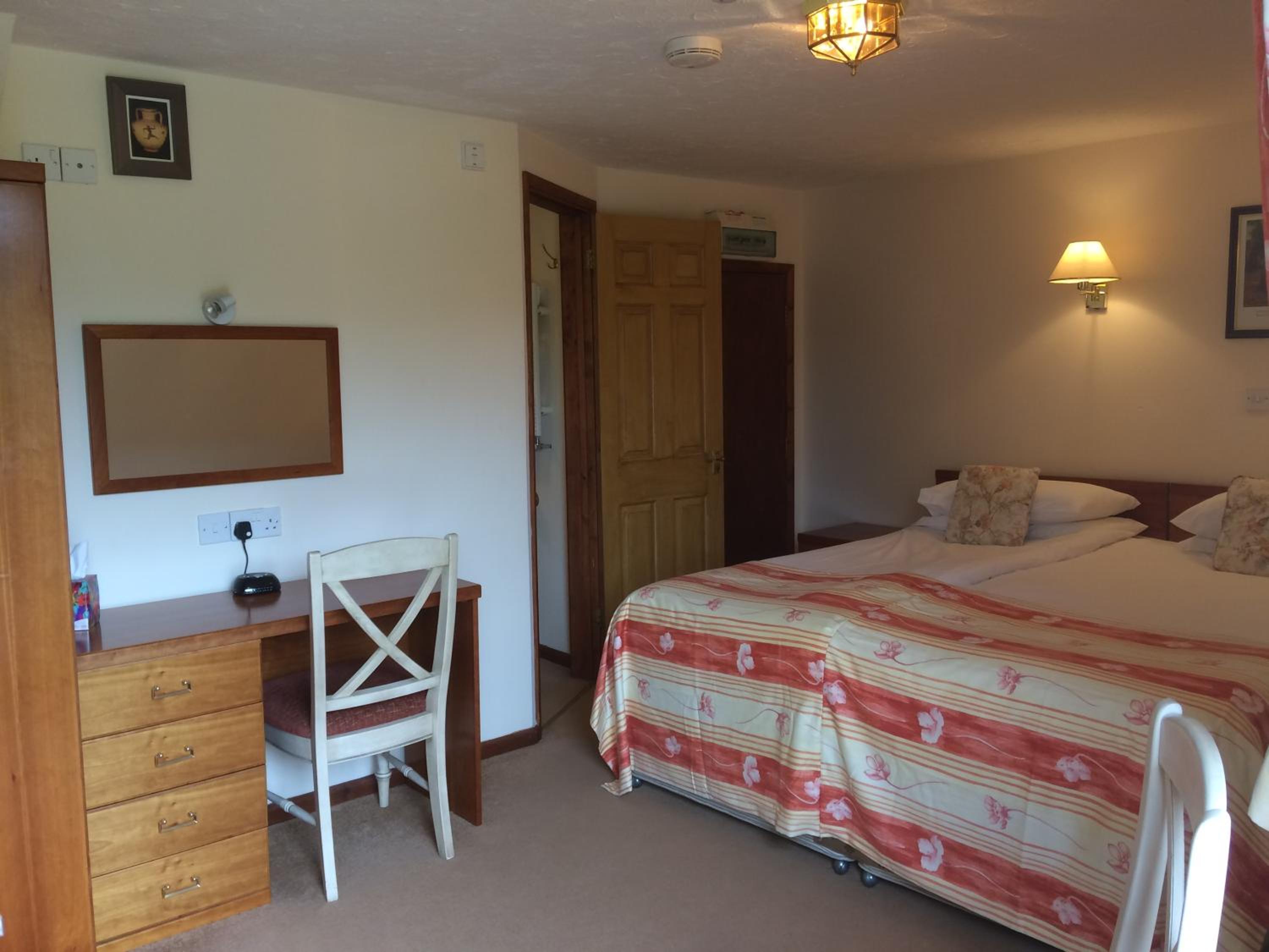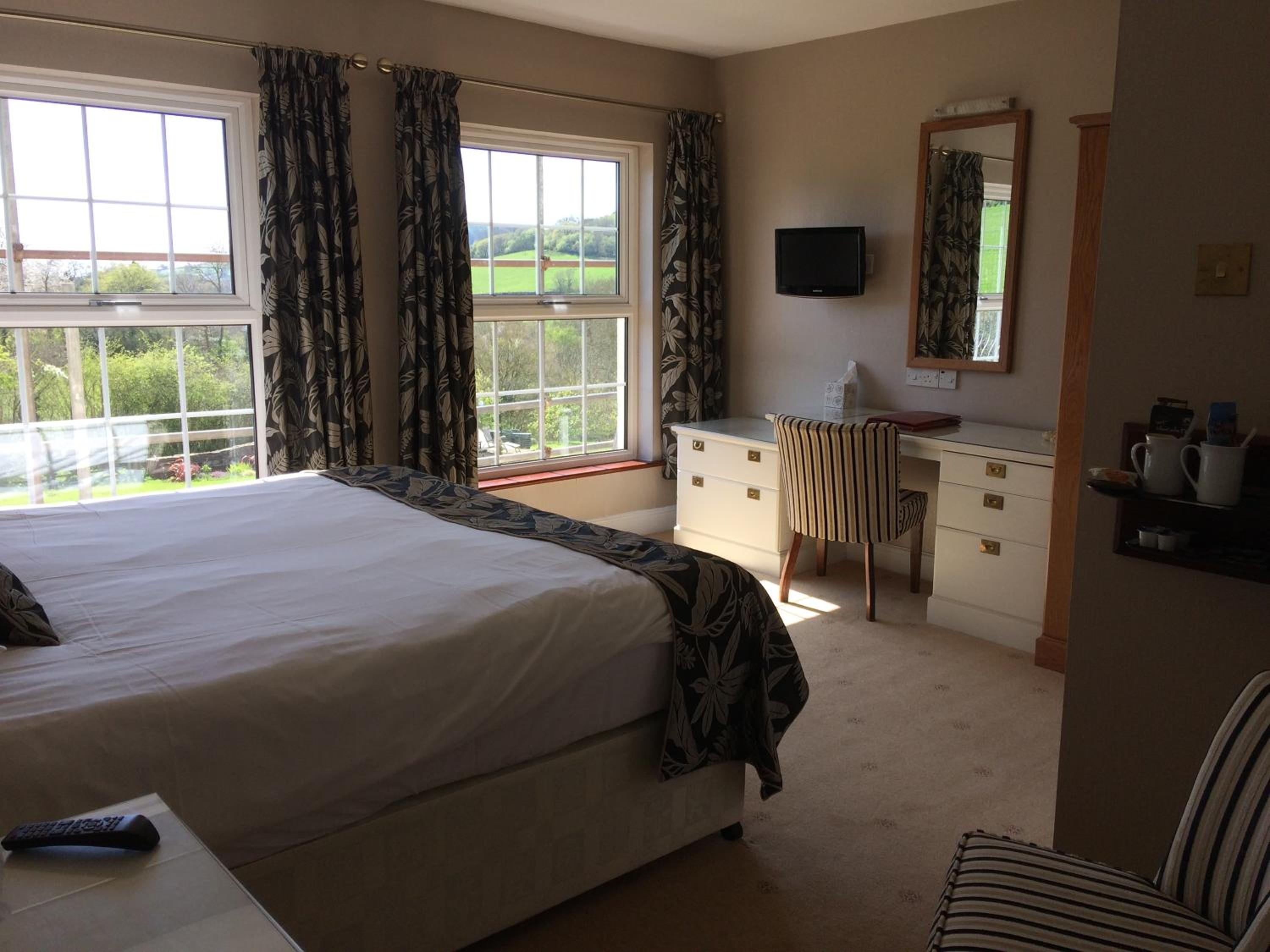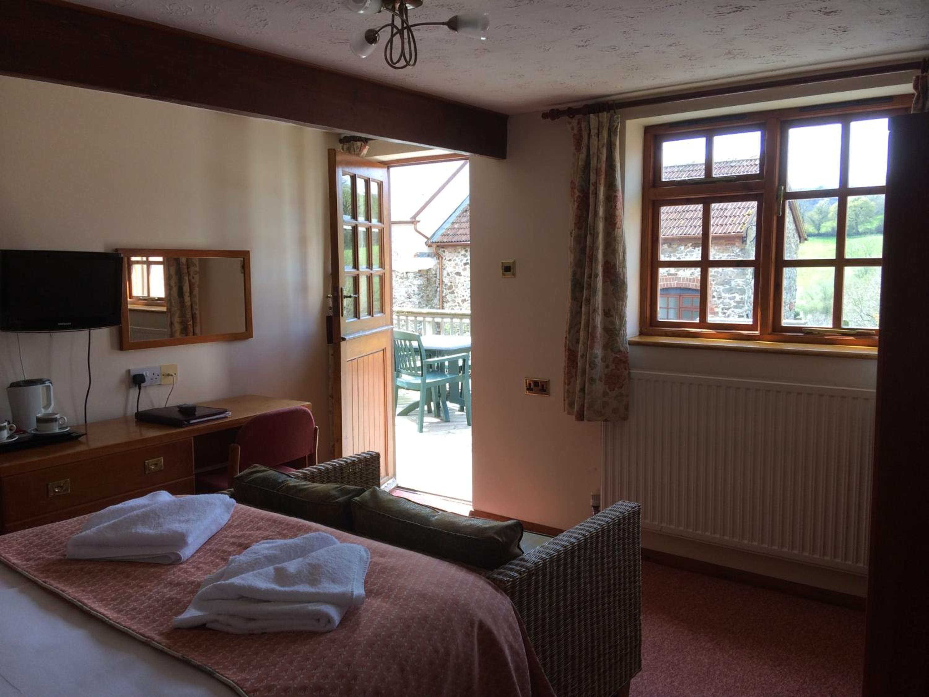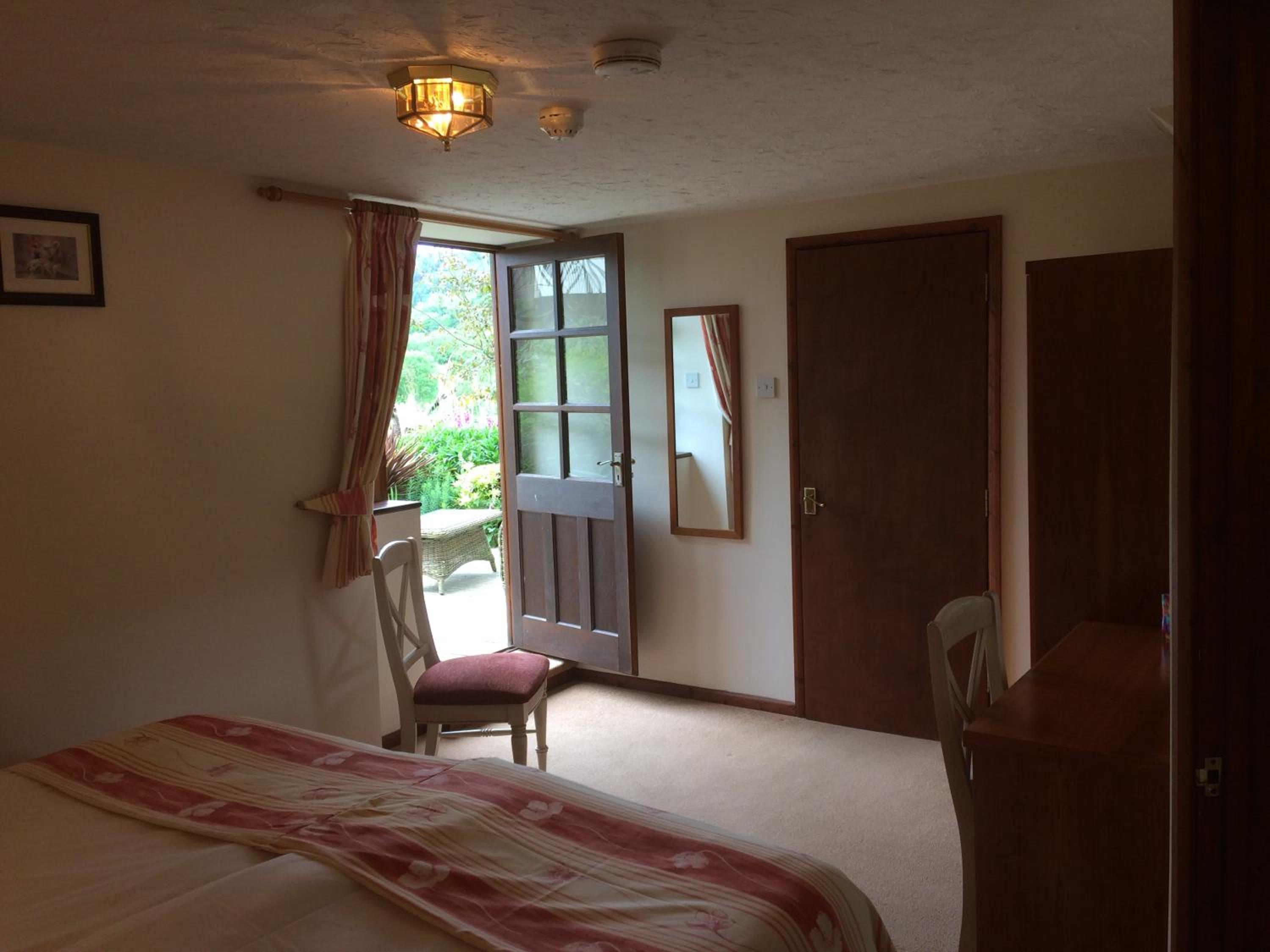Friendly welcome, quiet clean comfortable self contained room with self catering and shower. Two fields to walk dog. Good dinner. Lovely setting in small valley near coast.