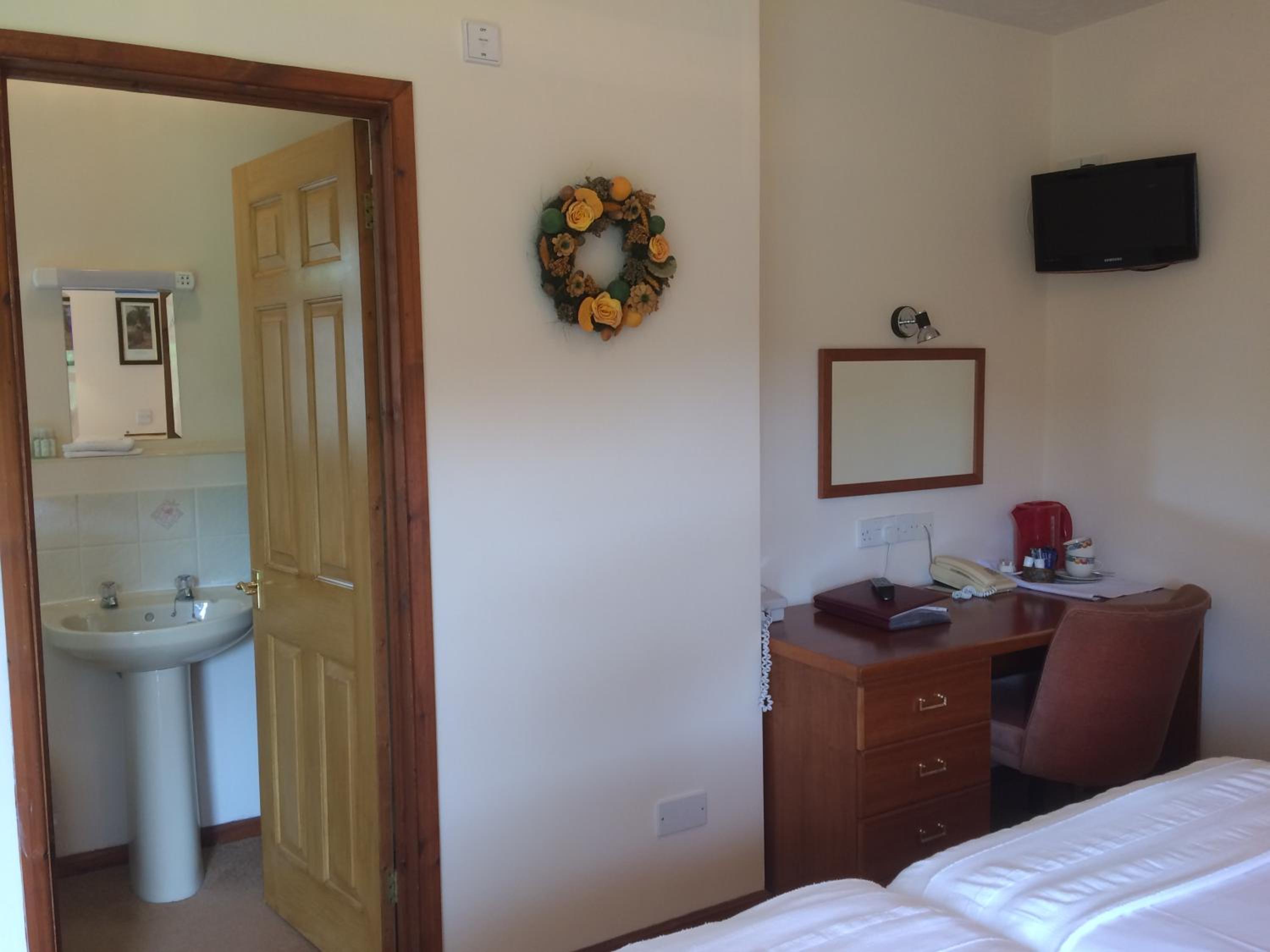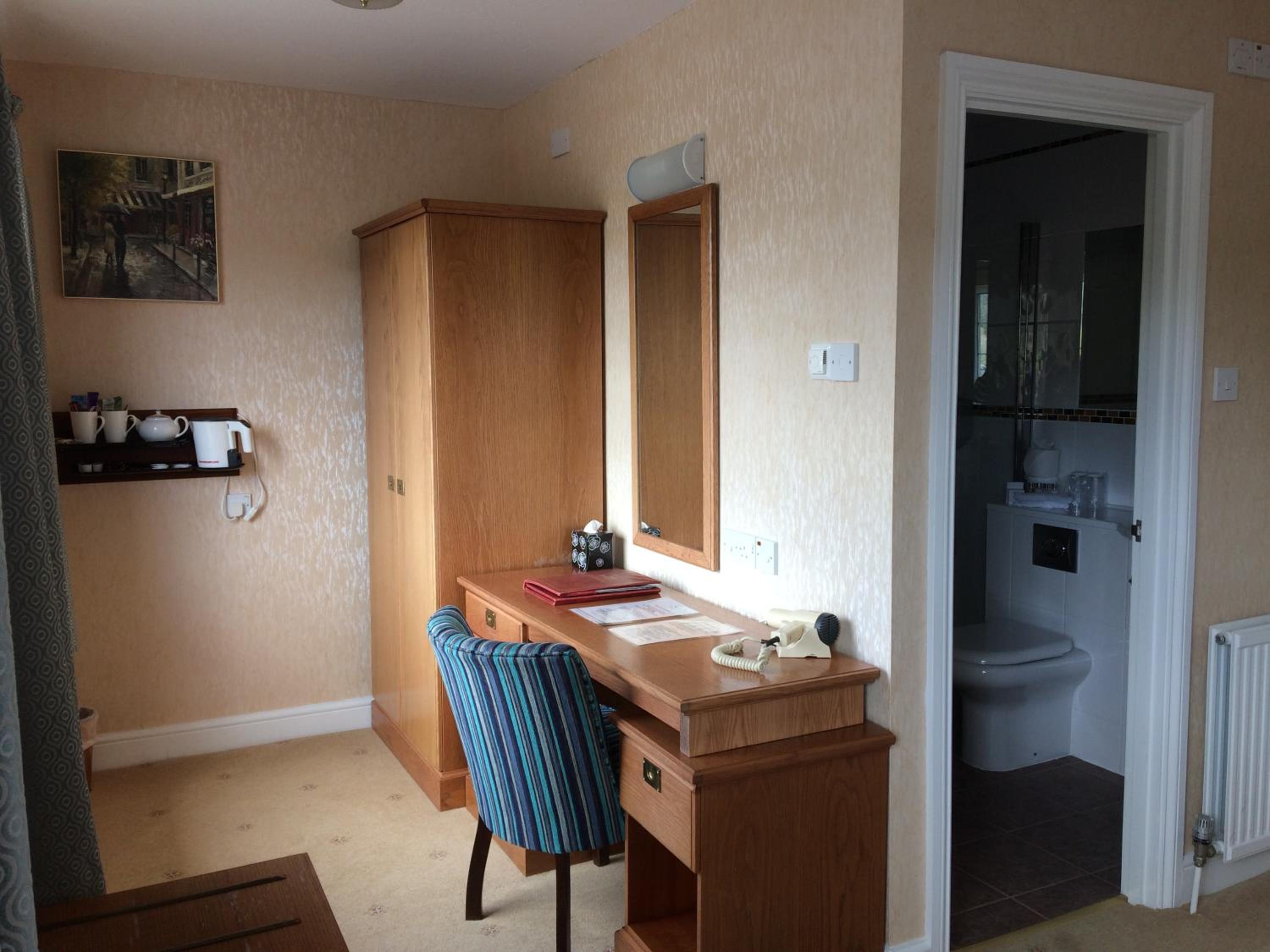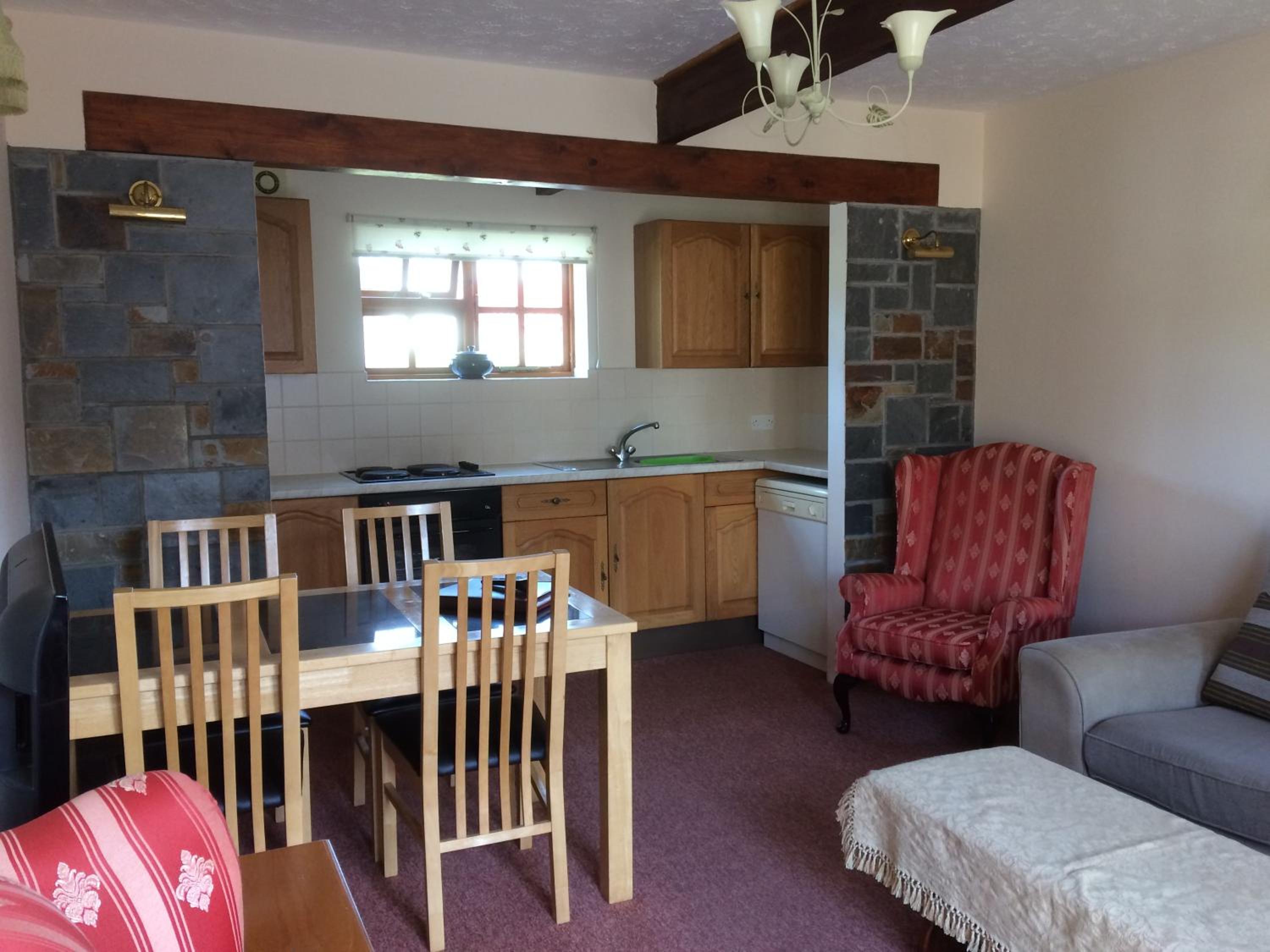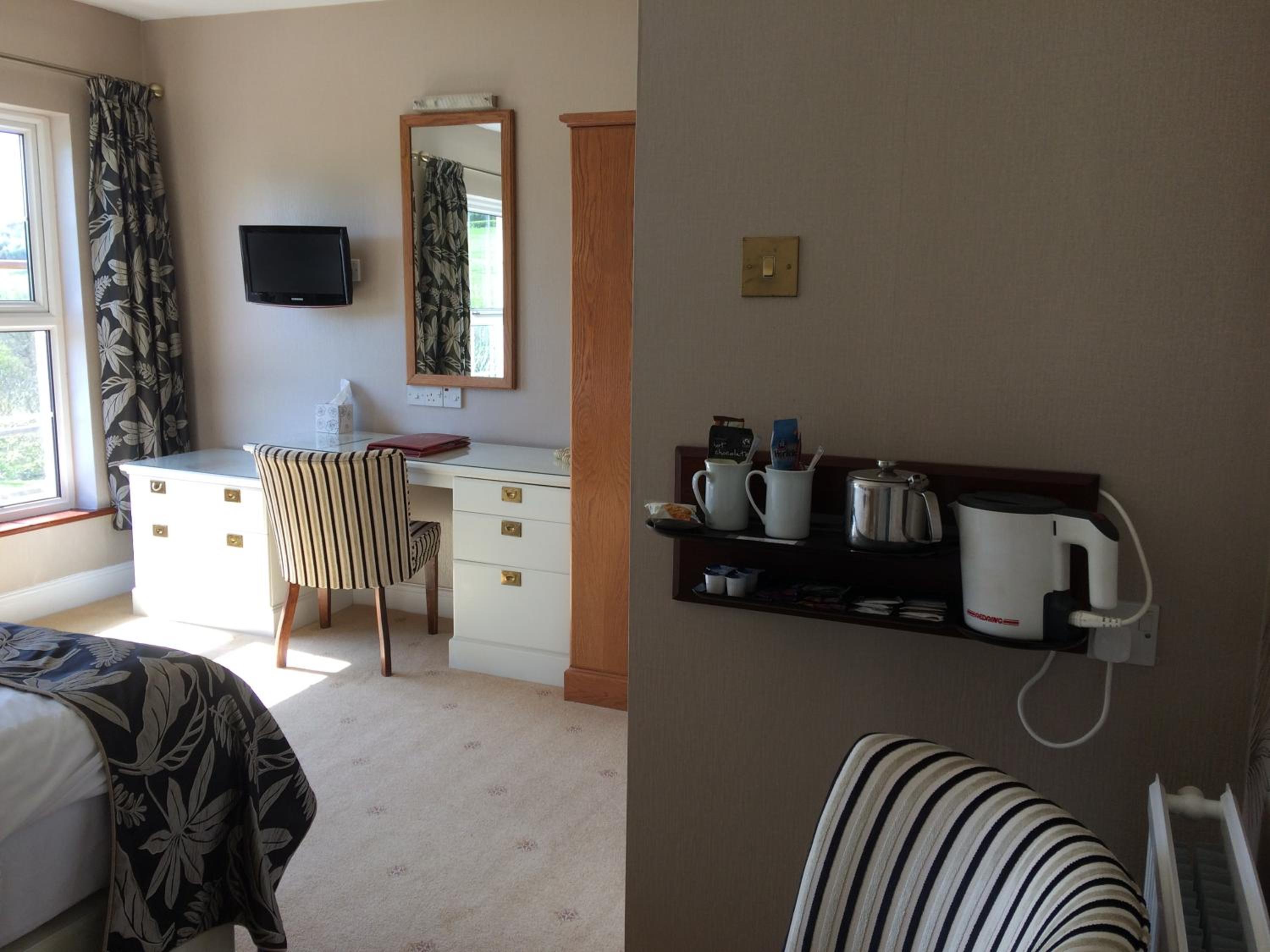 Friendly welcome, quiet clean comfortable self contained room with self catering and shower. Two fields to walk dog. Good dinner. Lovely setting in small valley near coast.