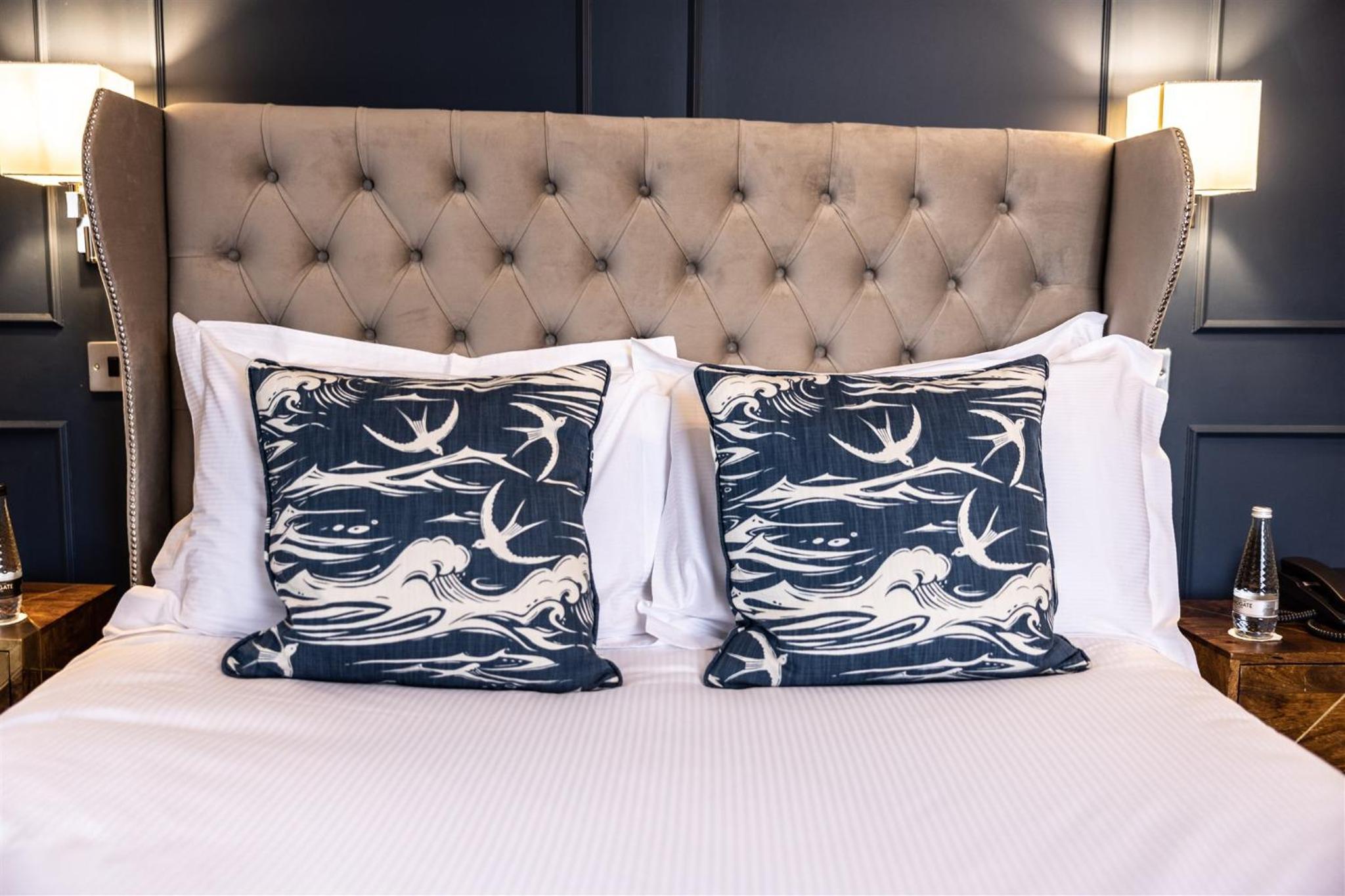 Nestled in 15 acres of woodland gardens with stunning sea views, Marshall Meadows Manor House offers elegant rooms with walk-in showers and essential amenities like tea/coffee facilities.