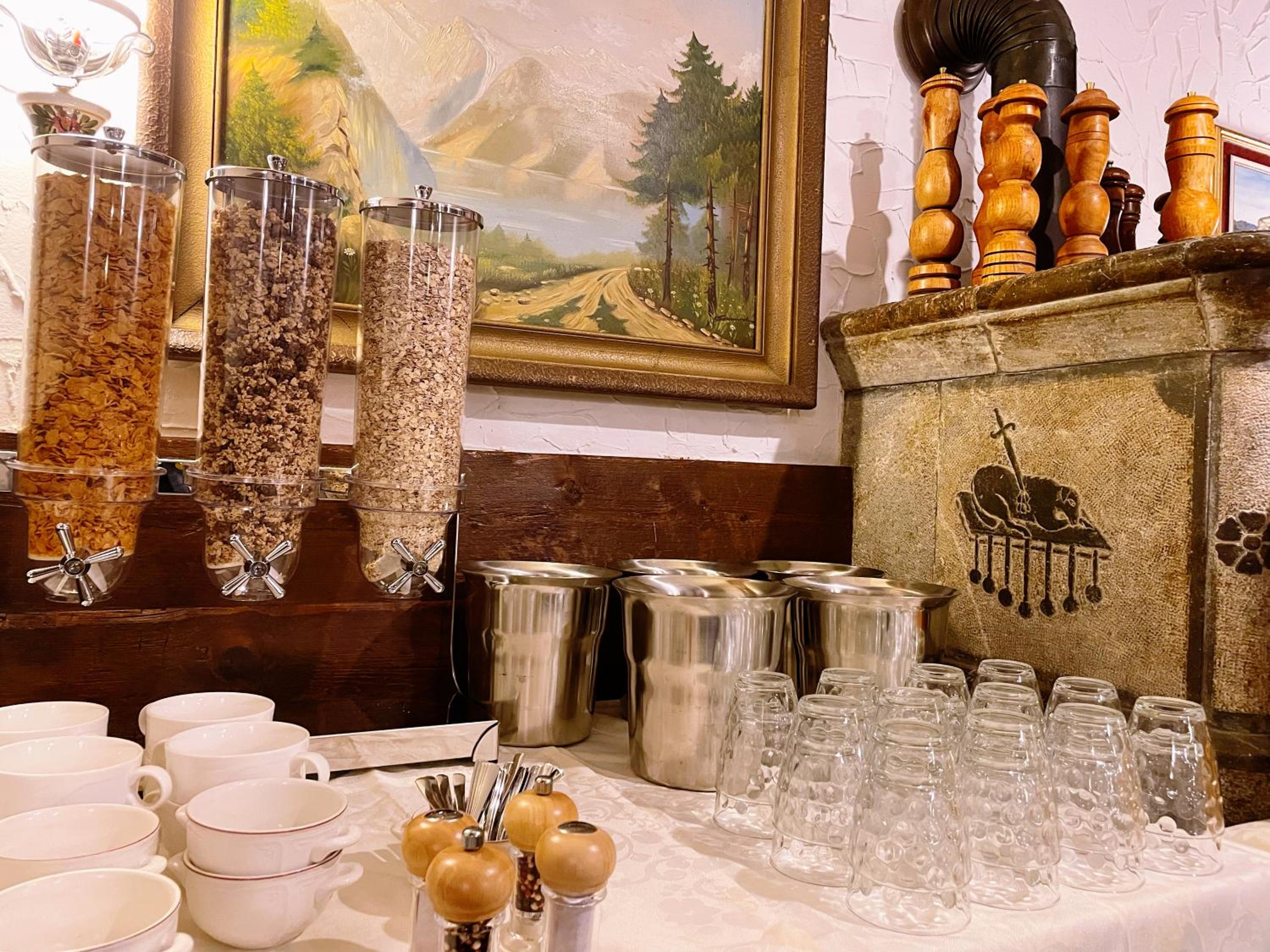 Das Frühstück war gut, es war alles vorhanden: Kaffee, Saft, Brot, Zopf, Gipfeli, Joghurt, Birchermüesli, Aufschnitt, Käse und Früchte.