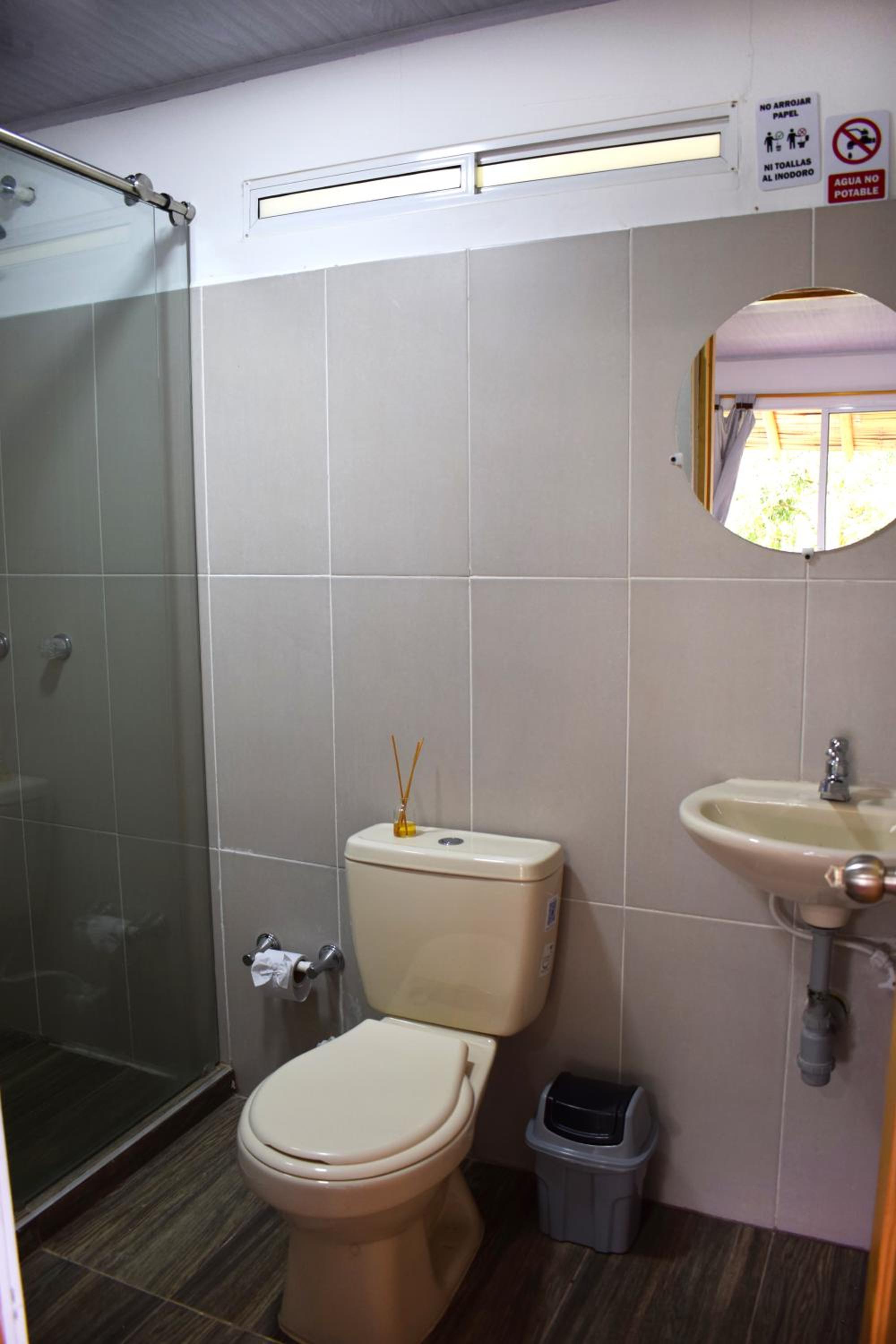 Por mejorar, tener opciones de alimentación o venta de productos dentro de la finca, El baño de la habitación muy pequeño e incómodo.