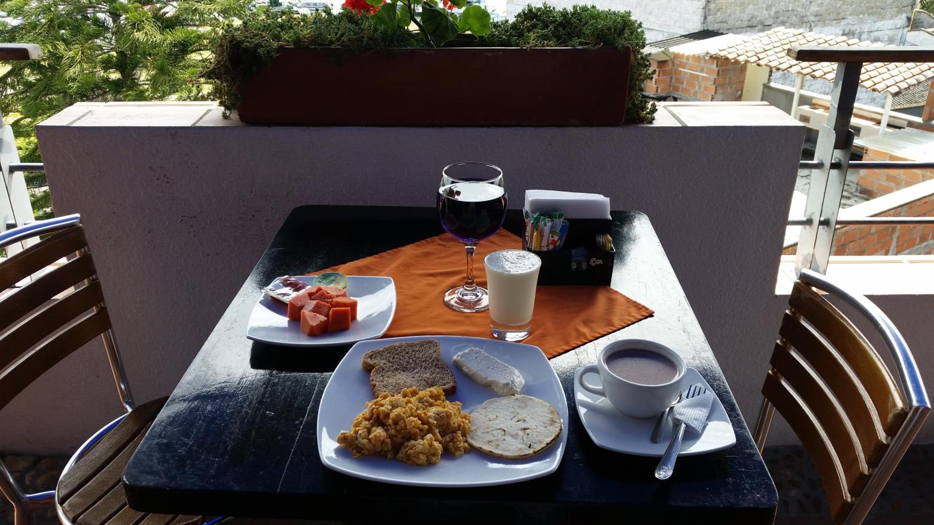Das Frühstück war typisch kolumbianisch, wogegen nichts einzuwenden ist. Leider gab es keine Auswahl: keine Möglichkeit einen Tee anstatt Kaffee zu bekommen oder die Schokolade in Wasser statt Milch zu bekommen. Obst oder Saft nicht zu bekommen, schade.