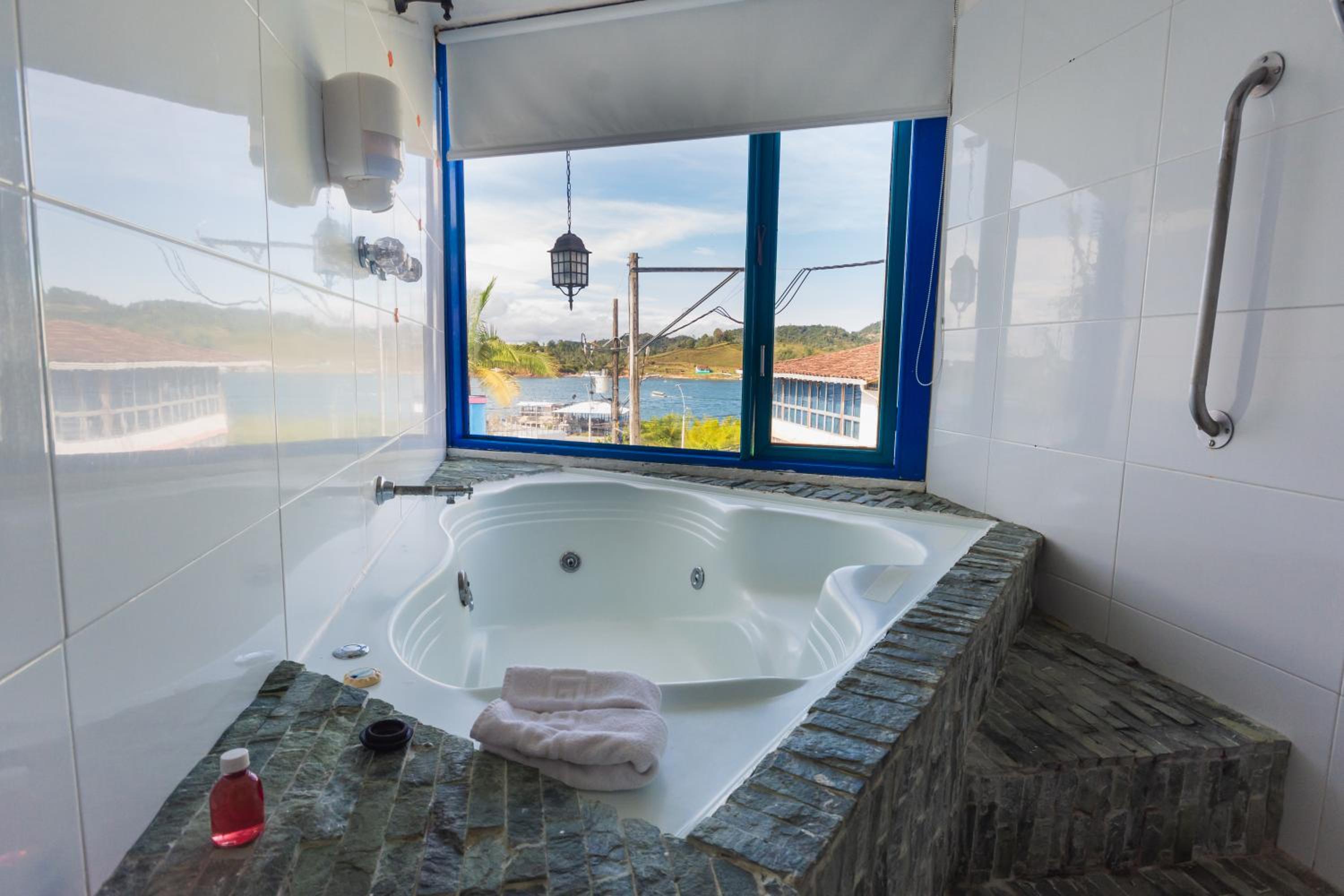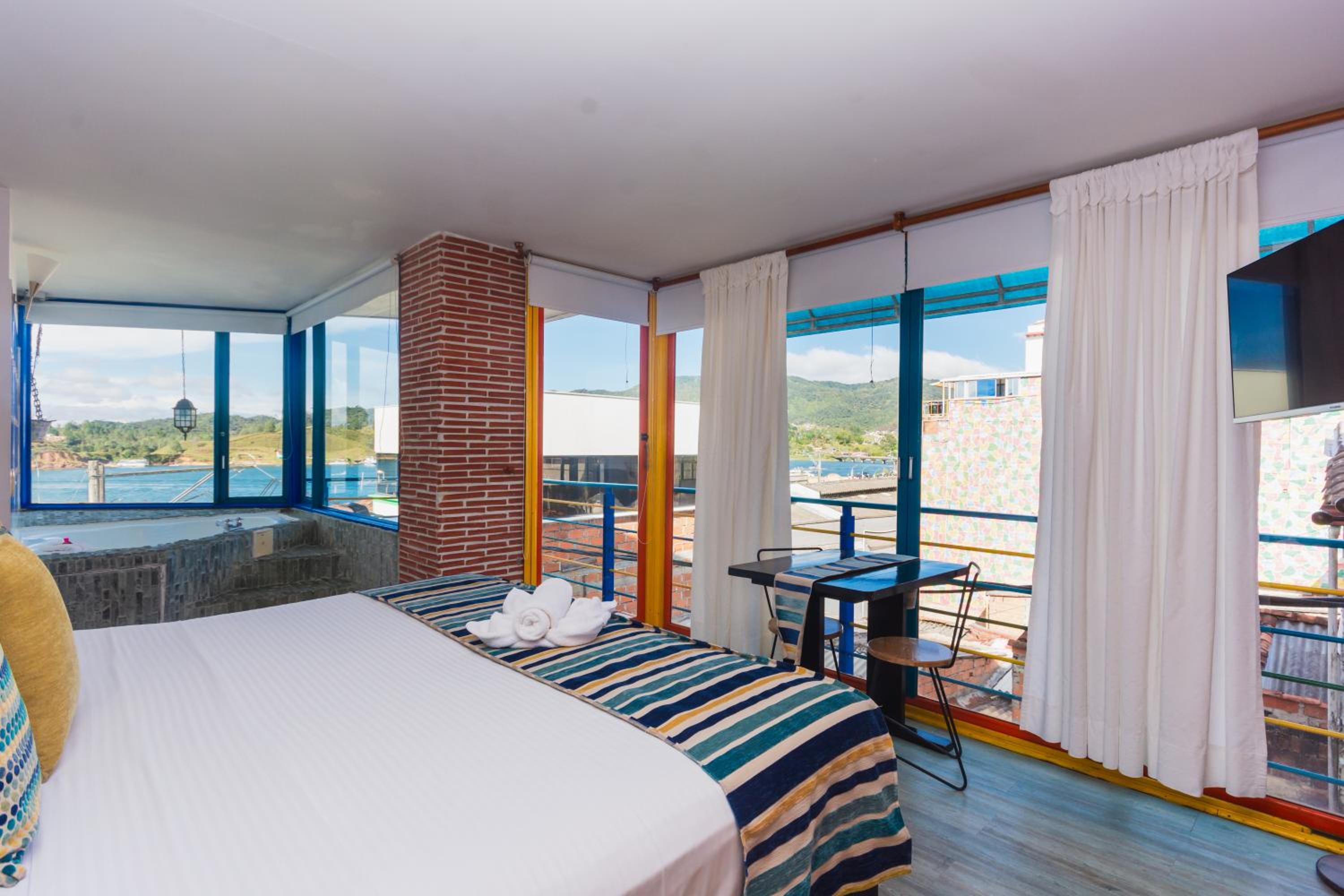 Experience the beauty of Guatapé town and its lake from your private balcony at Hotel Guatatur. The urban-style design of the hotel complements the stunning views, offering a unique and memorable stay.