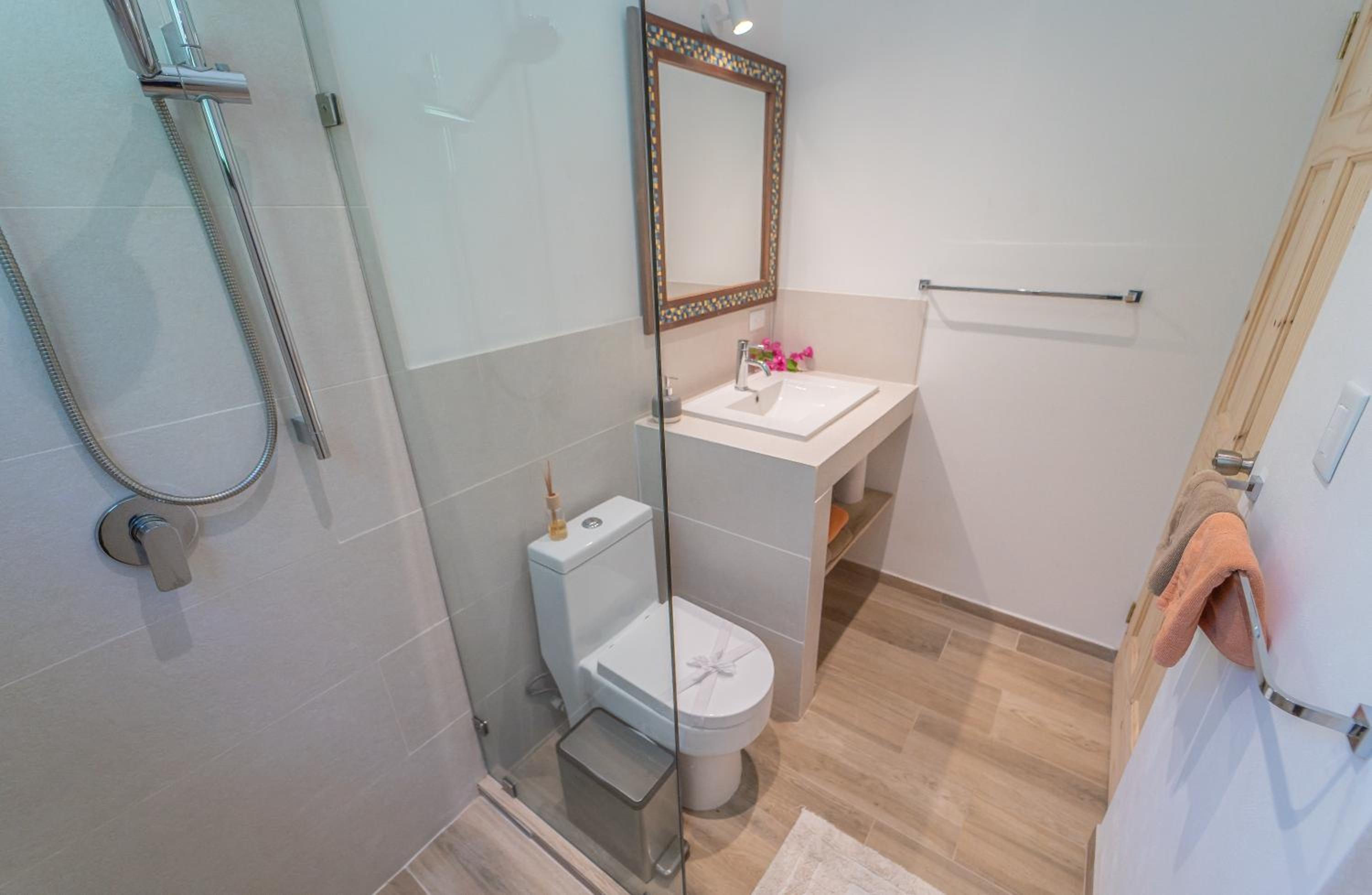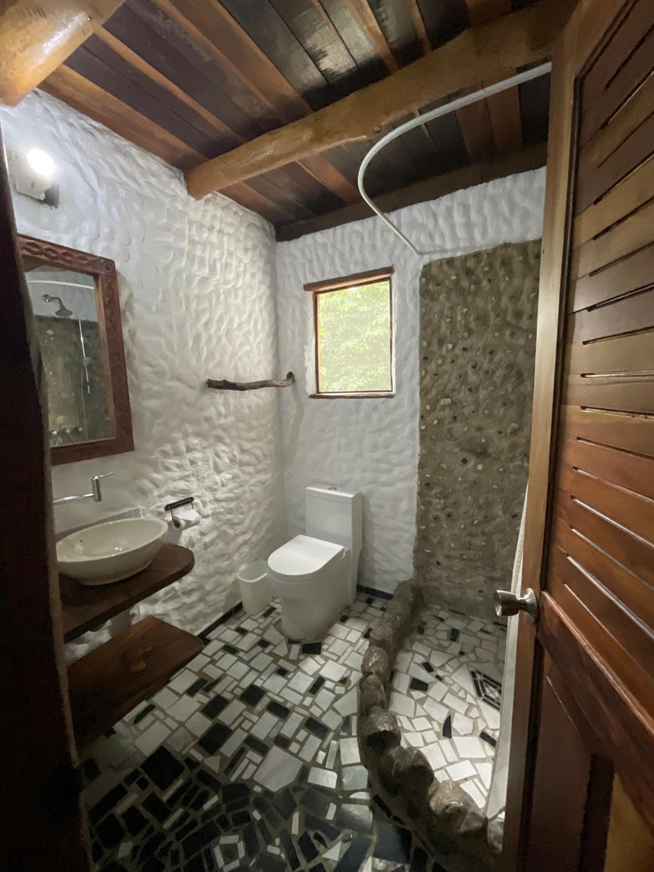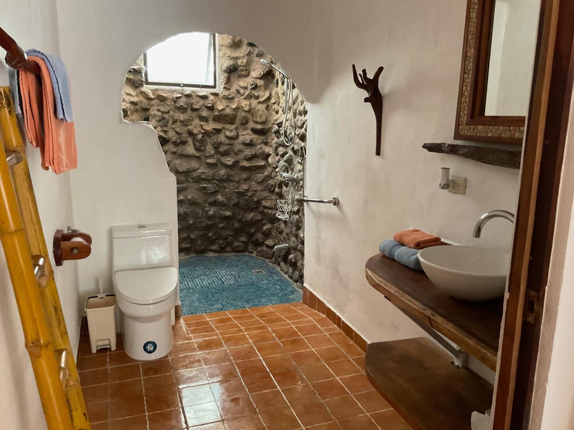 El baño no tiene agua caliente.