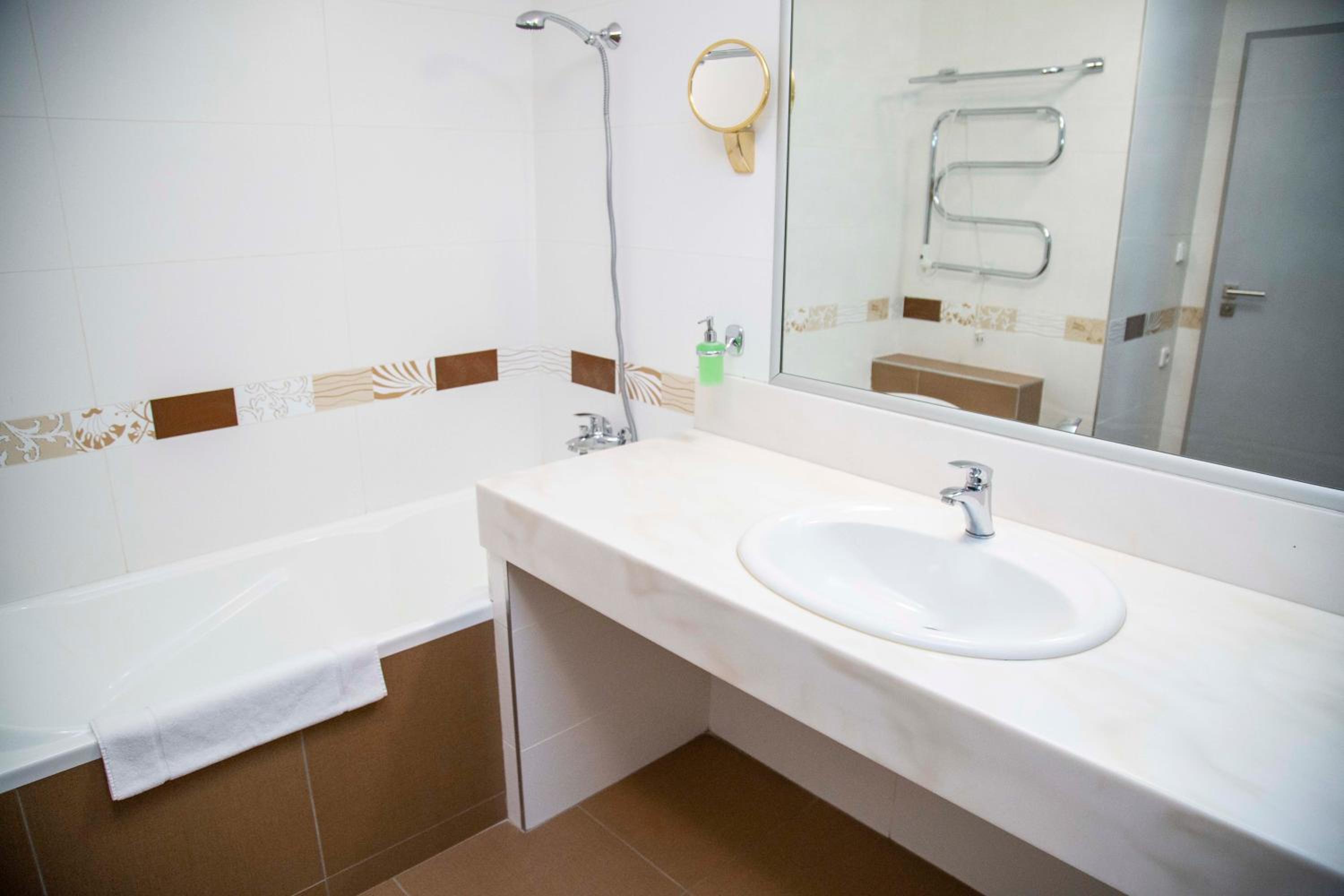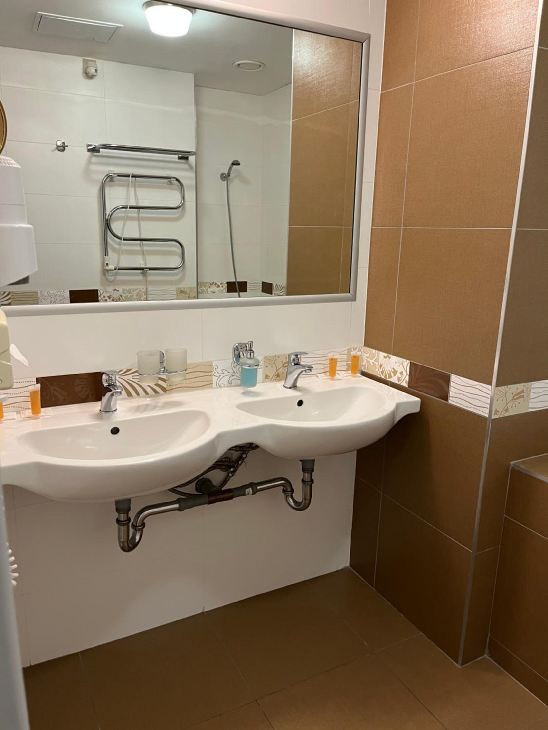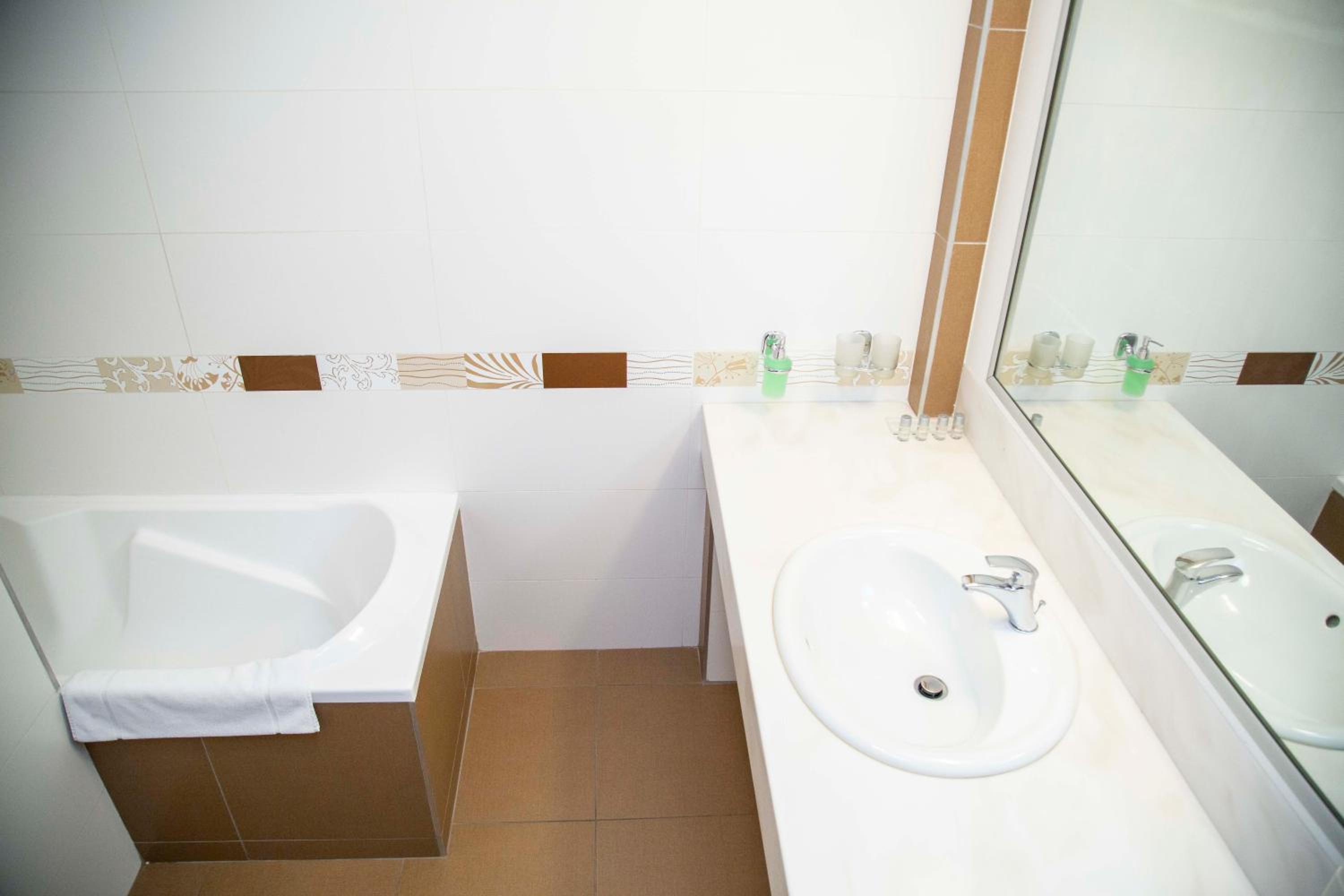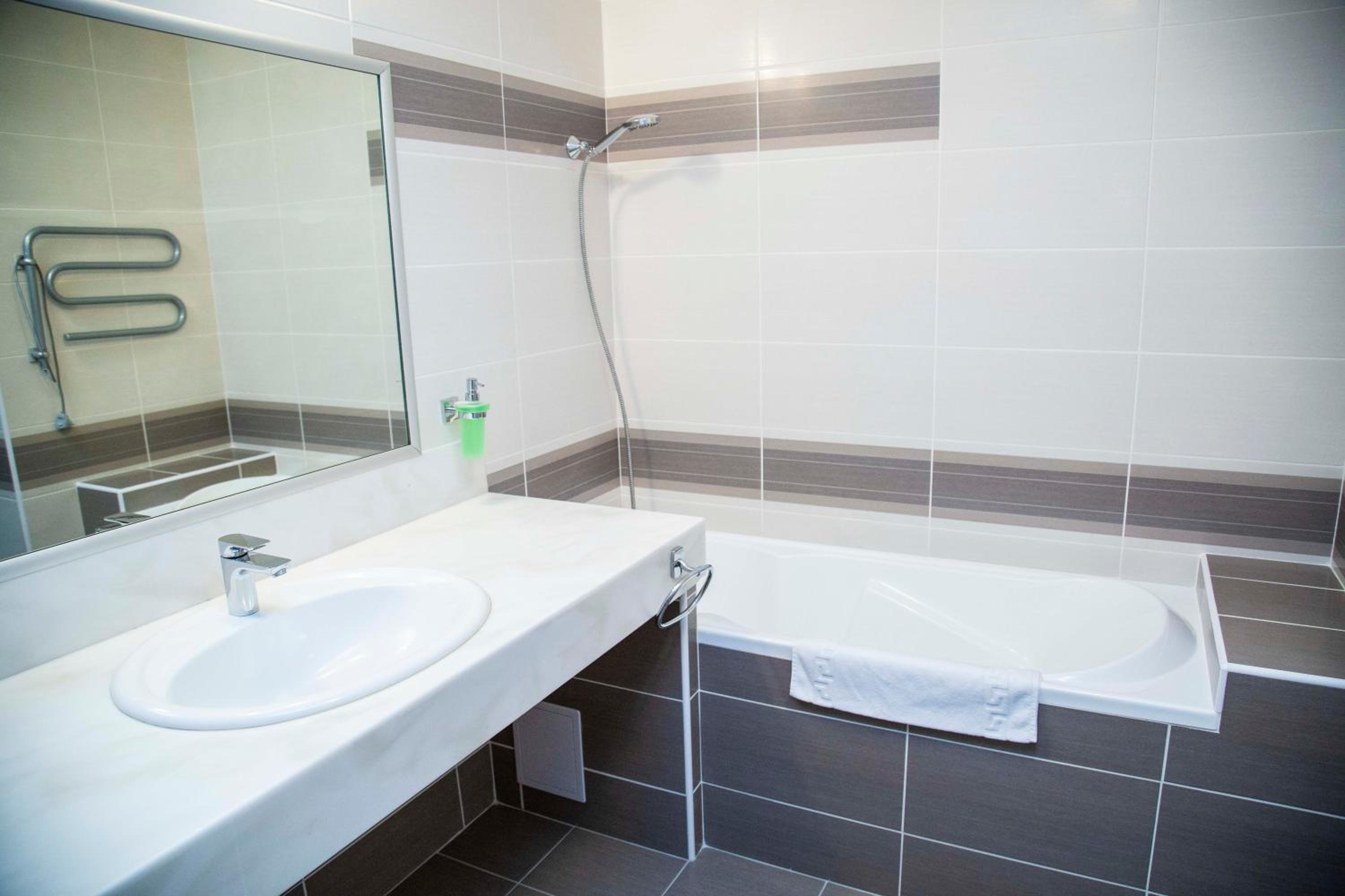 Большой номер,ванная вместе с душевой.Очень чисто,и виды из окна красивые.Рядом супермаркет и другие мелкие магазины.Транспортная развязка есть и парковочное место тоже.