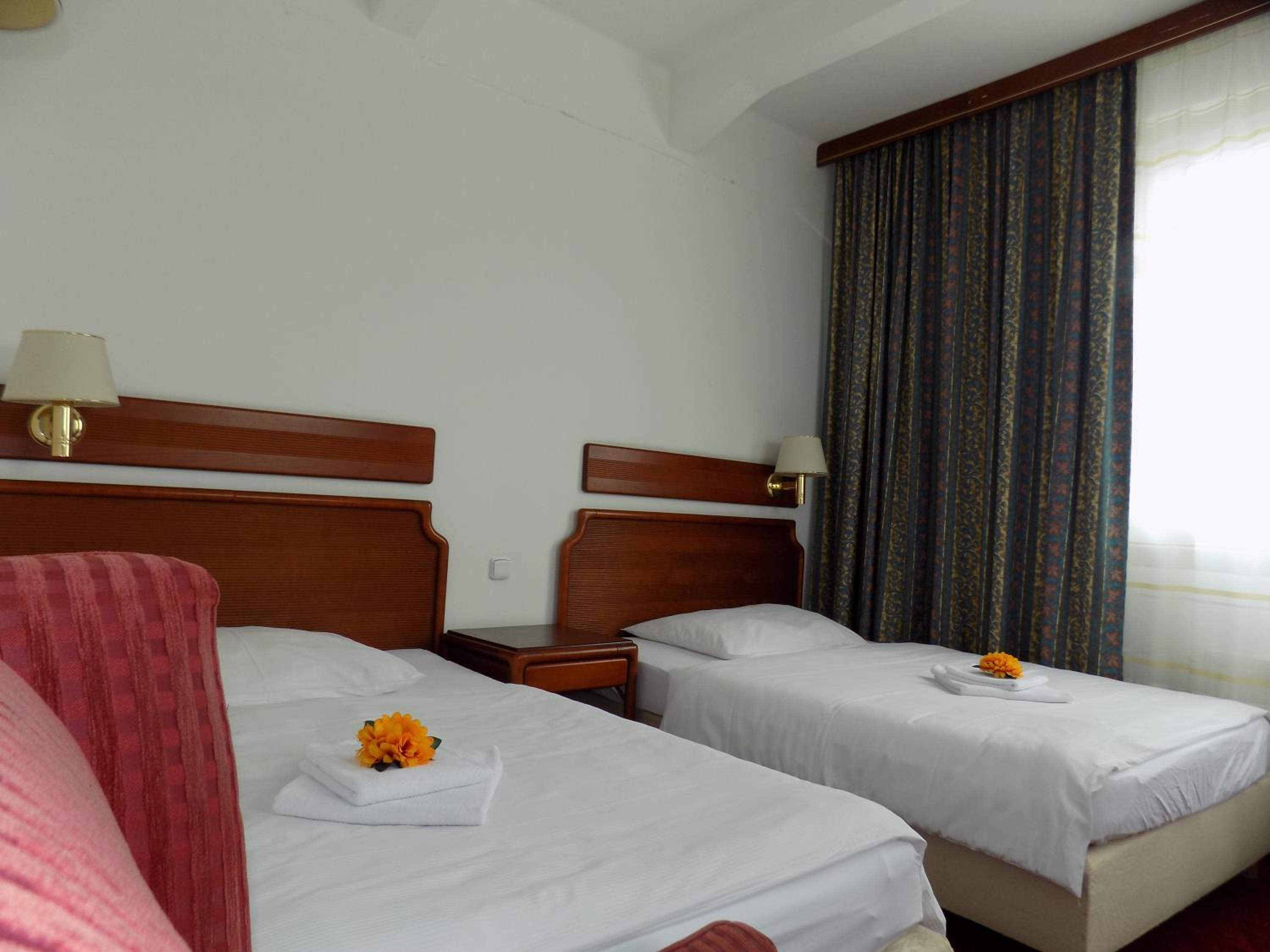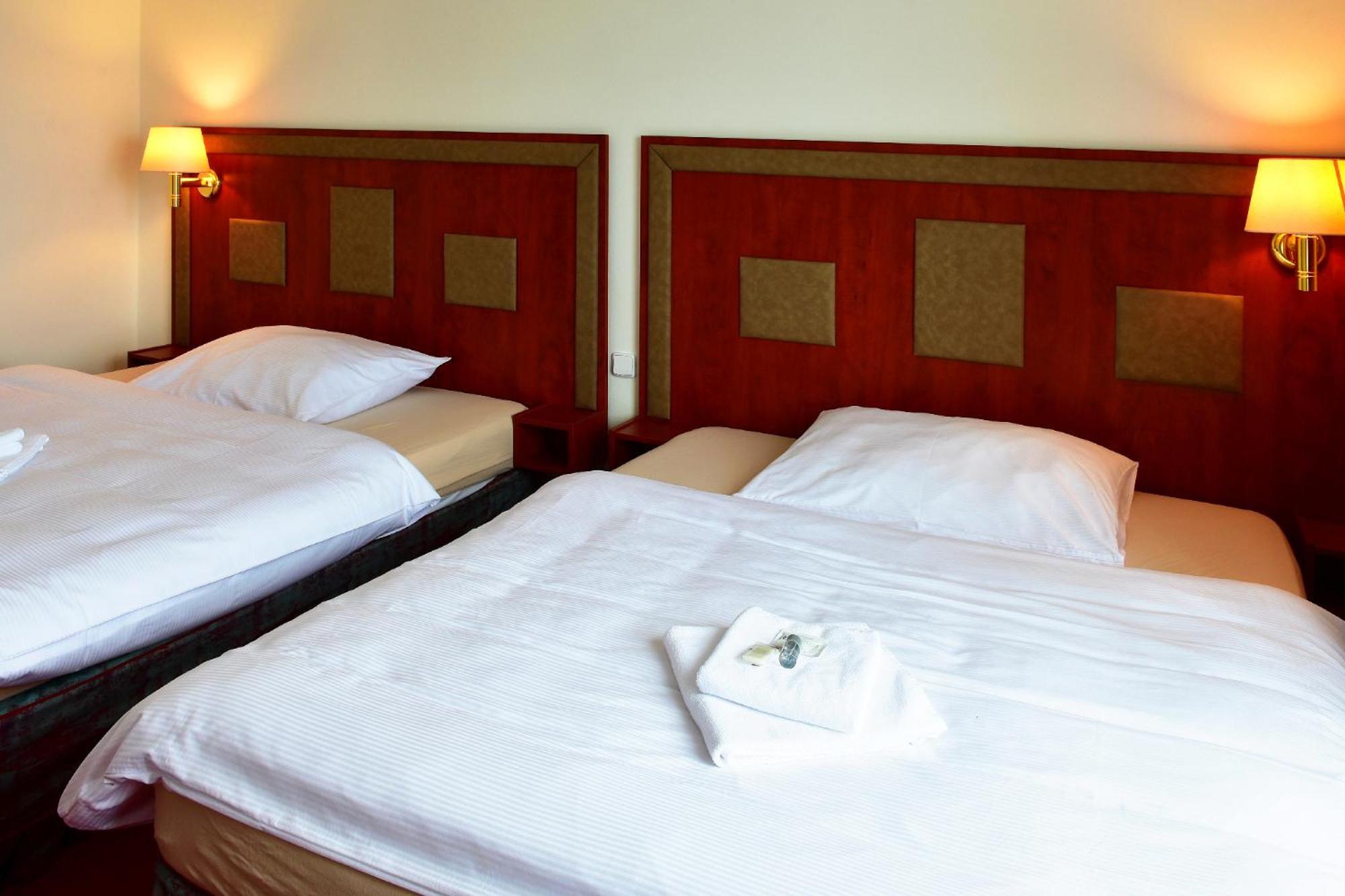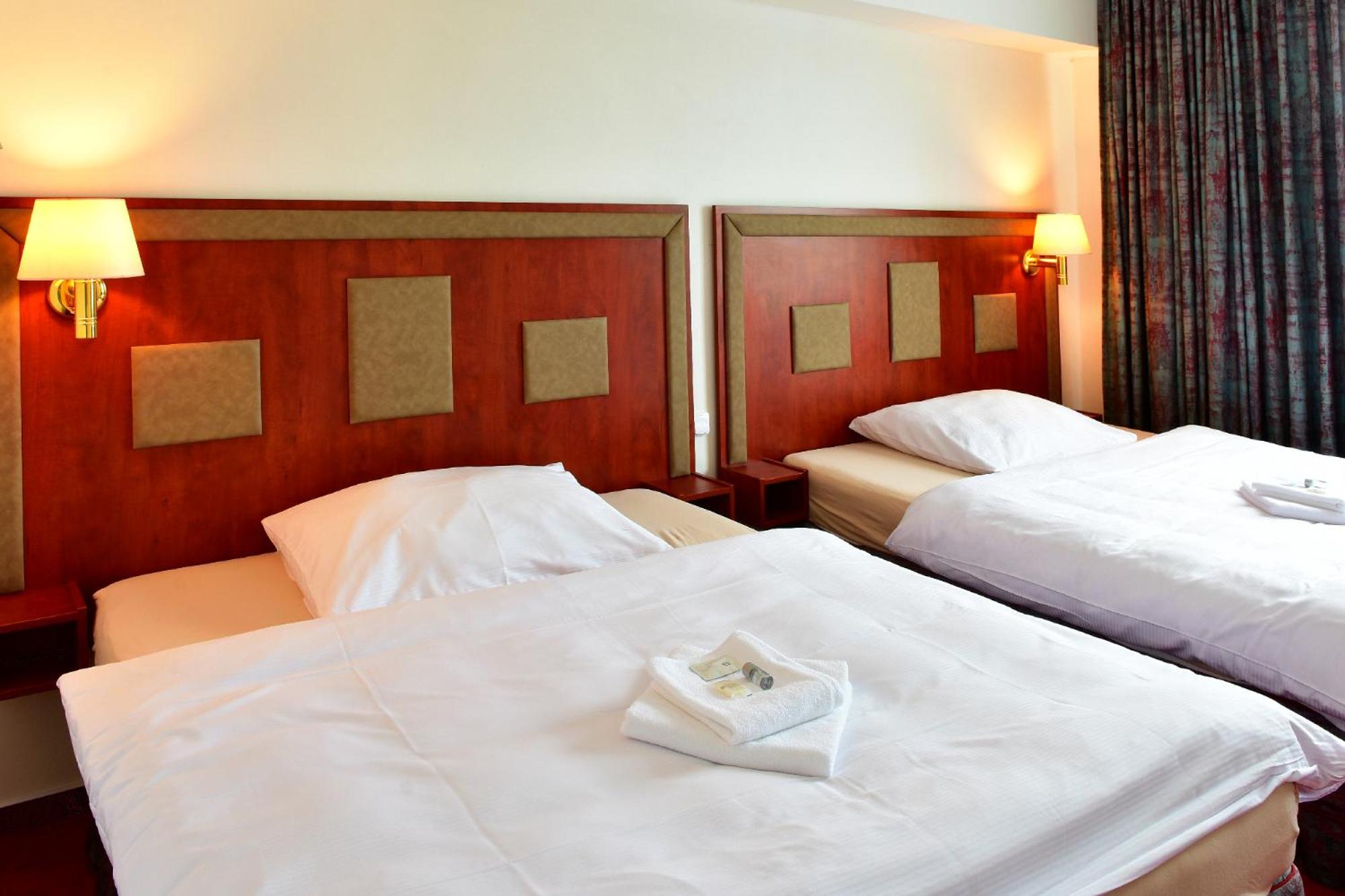 A szoba, fürdőszoba nagy volt, jò ágyak, ingyen parkolò. A sportétterem zajos, angolt nem beszélő személyzettel