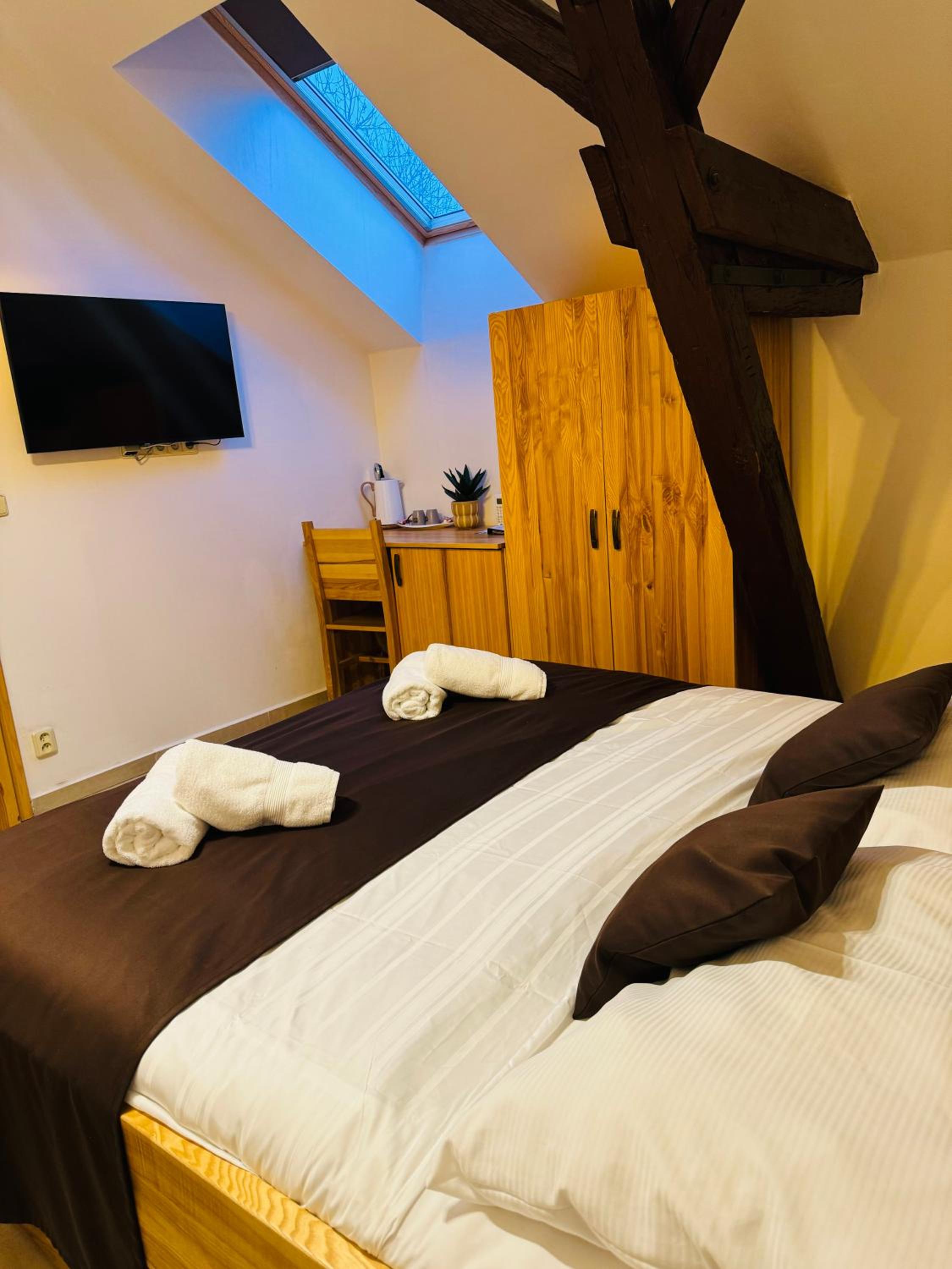 Each room at Hotel Hejtmanka features a private bathroom with free toiletries, wardrobe, bed linen, and towels. The hotel also provides a shuttle service for guests' convenience.
