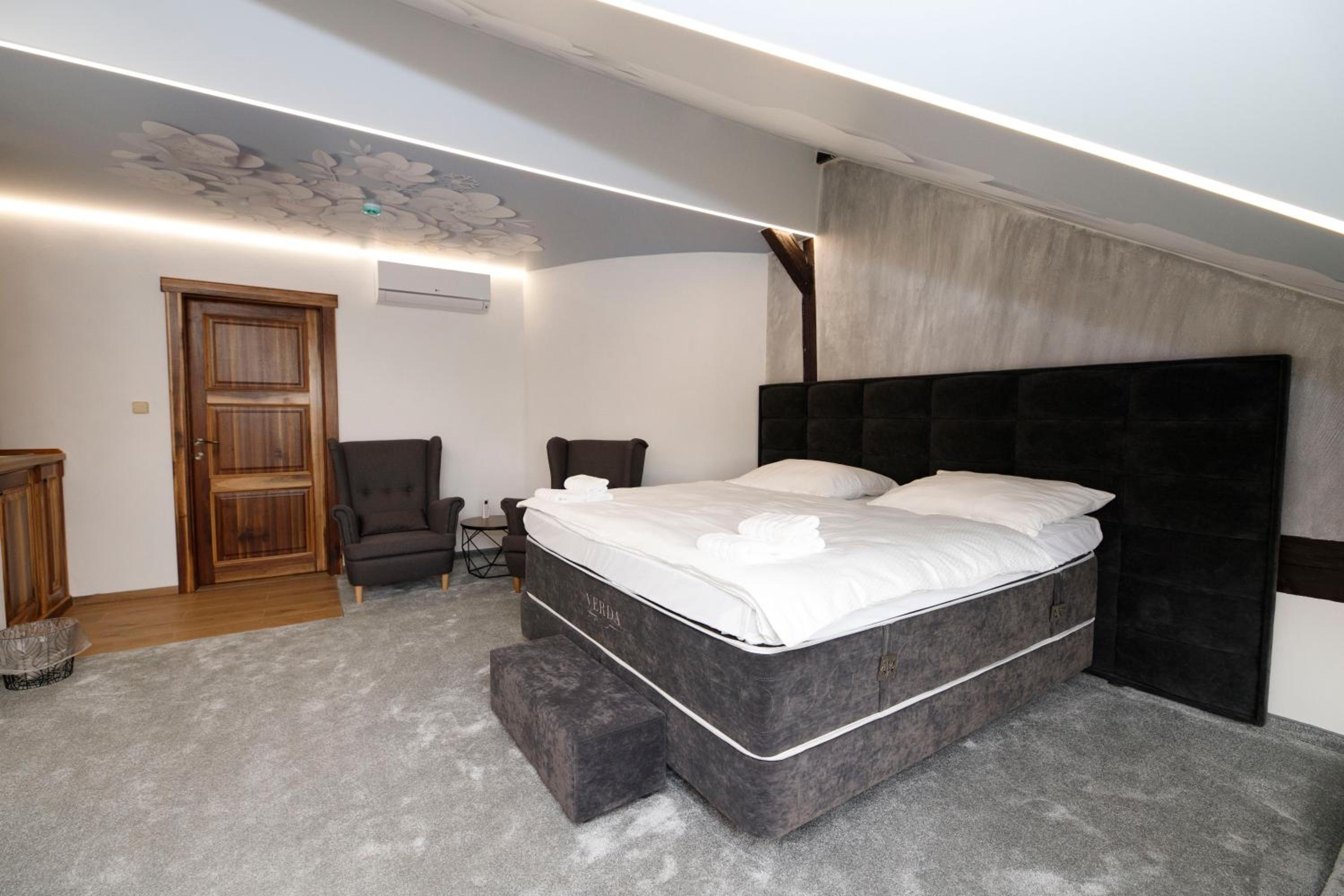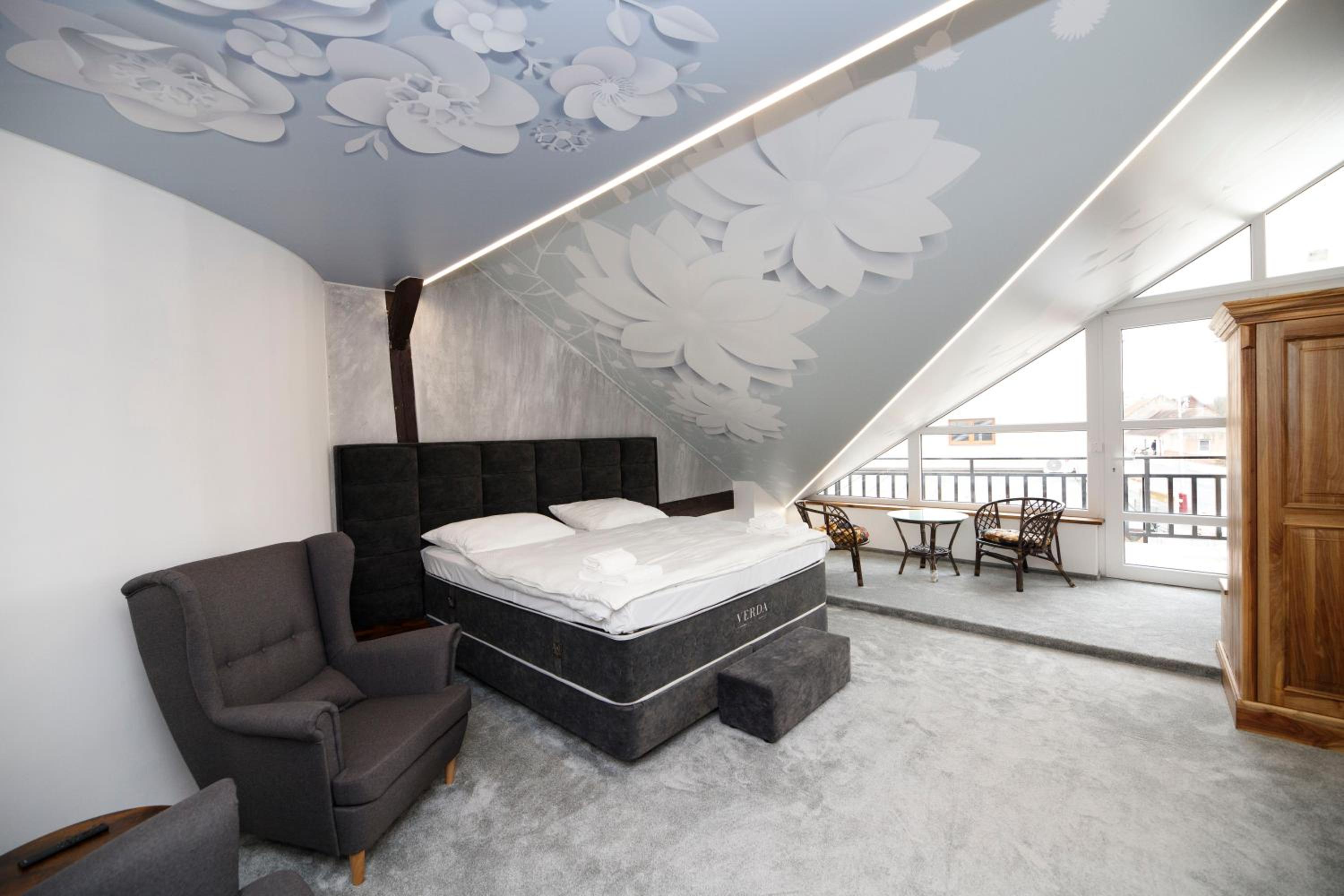 Hotel Hejtmanka, located in Mladá Boleslav, offers a luxurious stay with free WiFi and private parking. The rooms are elegantly furnished with a flat-screen TV, air conditioning, and comfortable seating areas. Enjoy a buffet breakfast daily and impeccable service from the attentive staff.