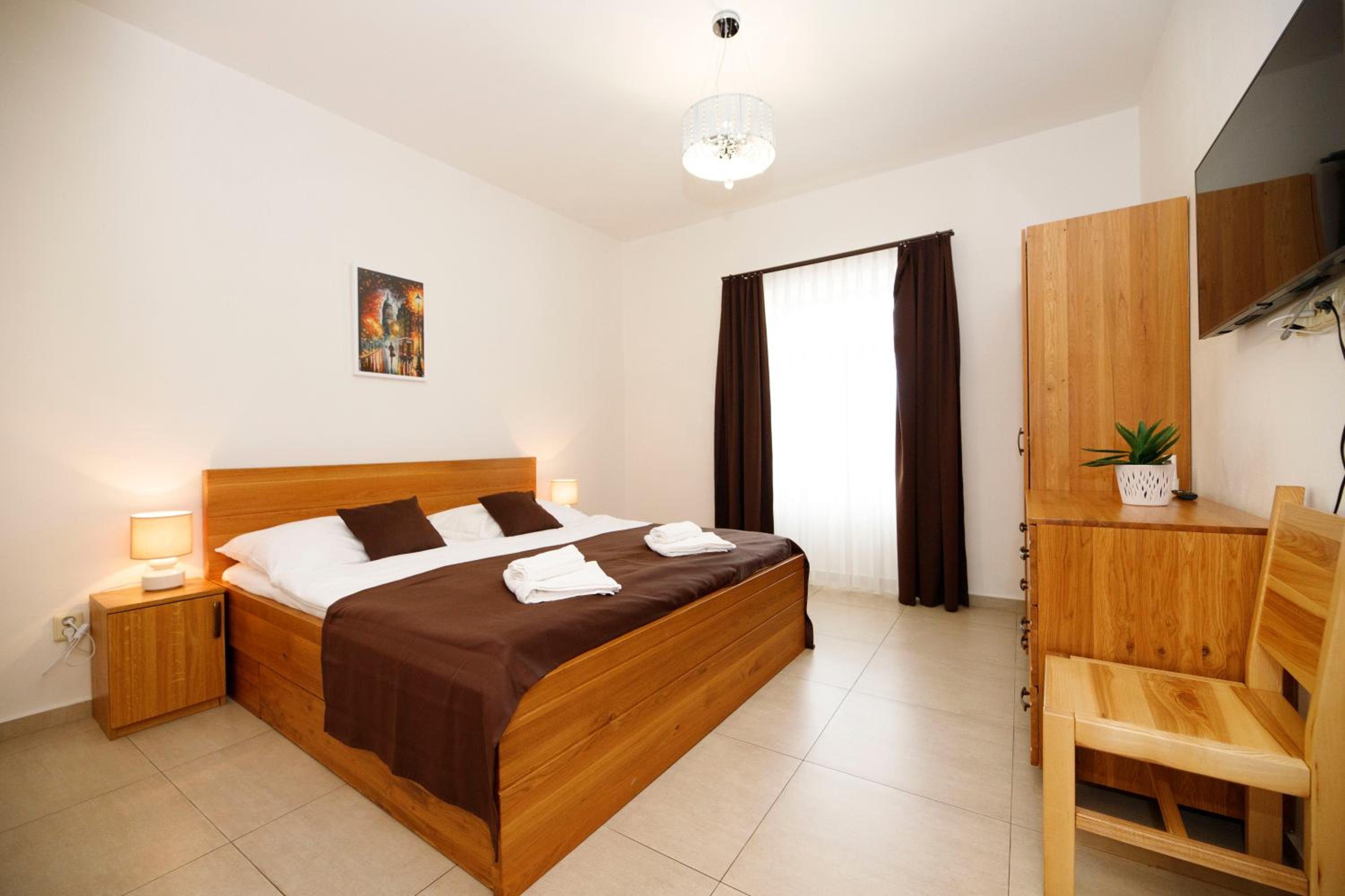 Líbila se mi velikost apartmánu Deluxe, dále také hezké vybavení pokoje. Použité jsou zde kvalitní materiály, zejména ze dřeva. Celý apartmán se jevil jako velmi čistý. Na pokoji se nacházejí dvě televize, jedna televize je přímo naproti vířivé vaně a druhá televize, větší, se nachází naproti manželské posteli. Samoobslužná recepce funguje velice dobře, je to rychlé a precizní. Při drobném problému stačilo zavolat na telefonní číslo uvedené na webových stránkách a vše osobně vyřešili. Parkování před hotelem bylo zdarma a dostačující. Snídaně nebyla formou bufetu, pravděpodobně z důvodu nízkého počtu hostů na hotelu, ale bylo o nás postaráno velmi dobře. Dostali jsme obložený talíř a na výběr z několika teplých pokrmů. Káva z kávovaru byla překvapivě vysoce kvalitní.