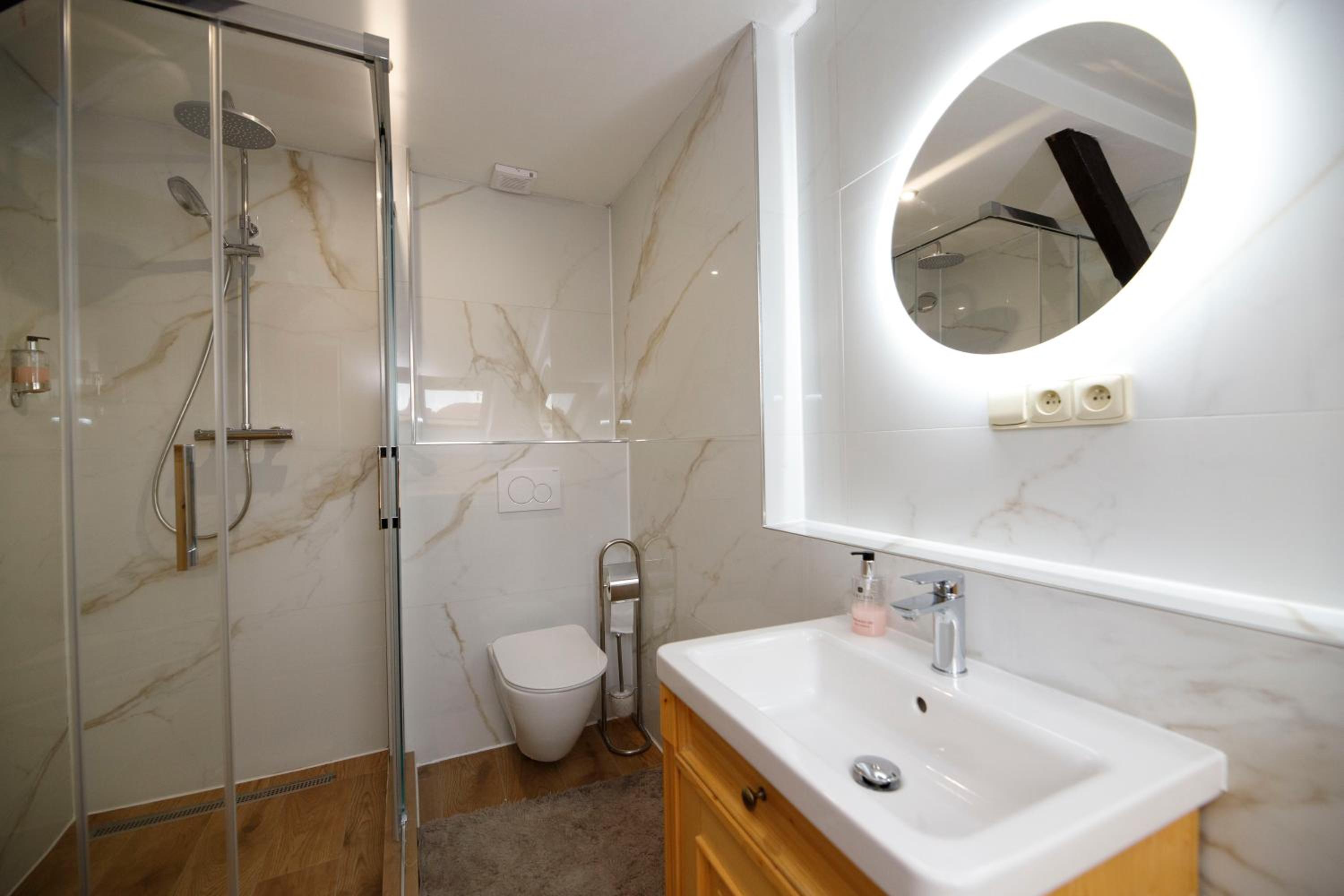 - hrozně studená podlaha všude kromě části, kde je koberec. Koupelna byla taky ledová.. pro zimní období by bylo vhodné upozornit hosty alespoň na vlastní přezůvky protože to bylo nepříjemné.