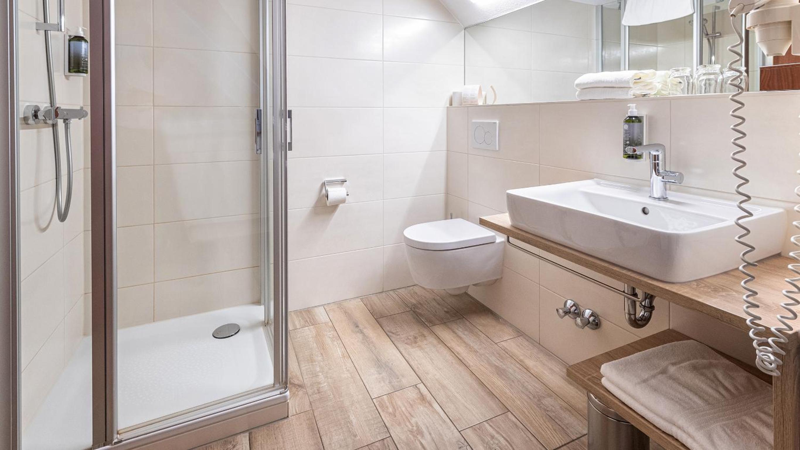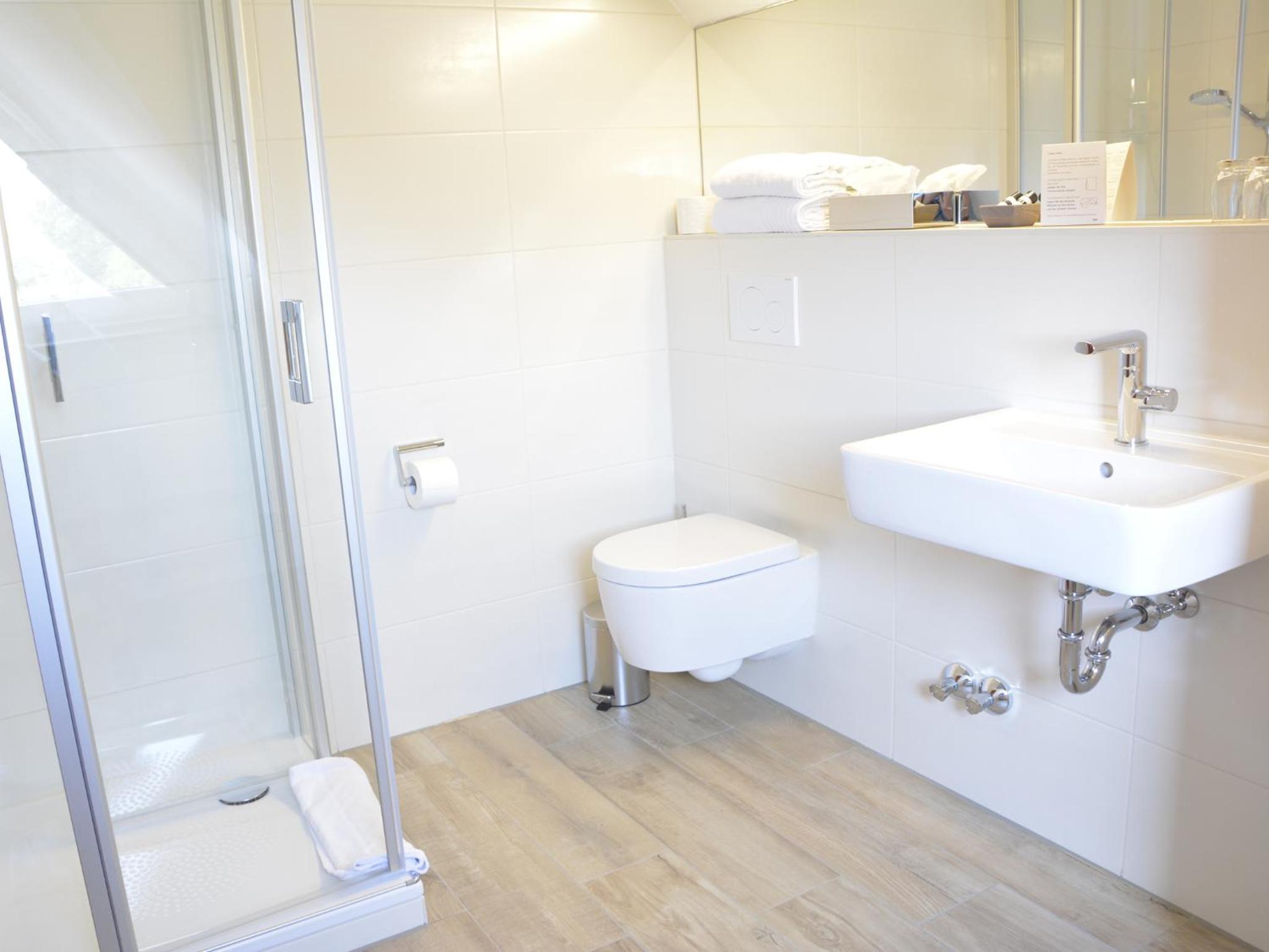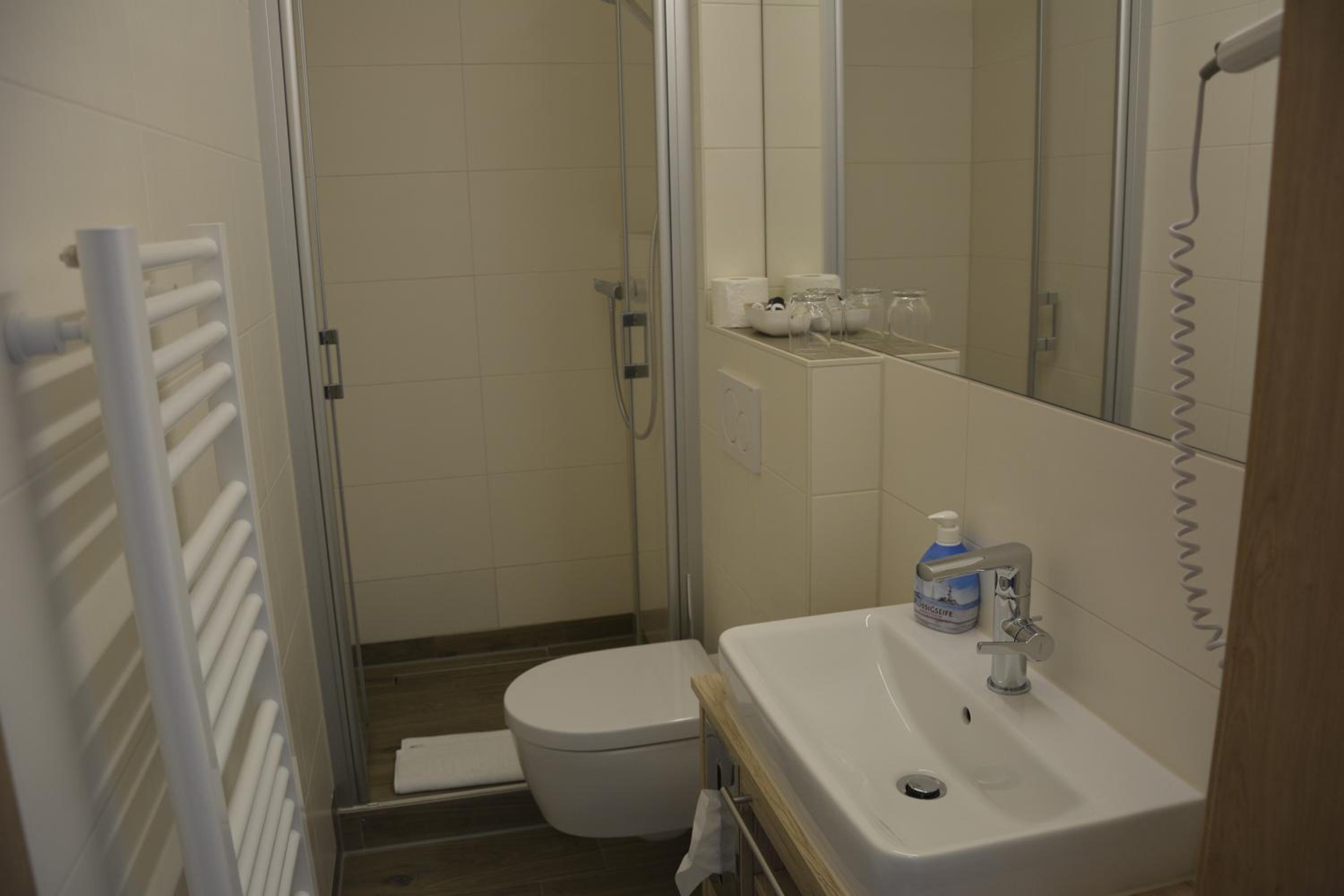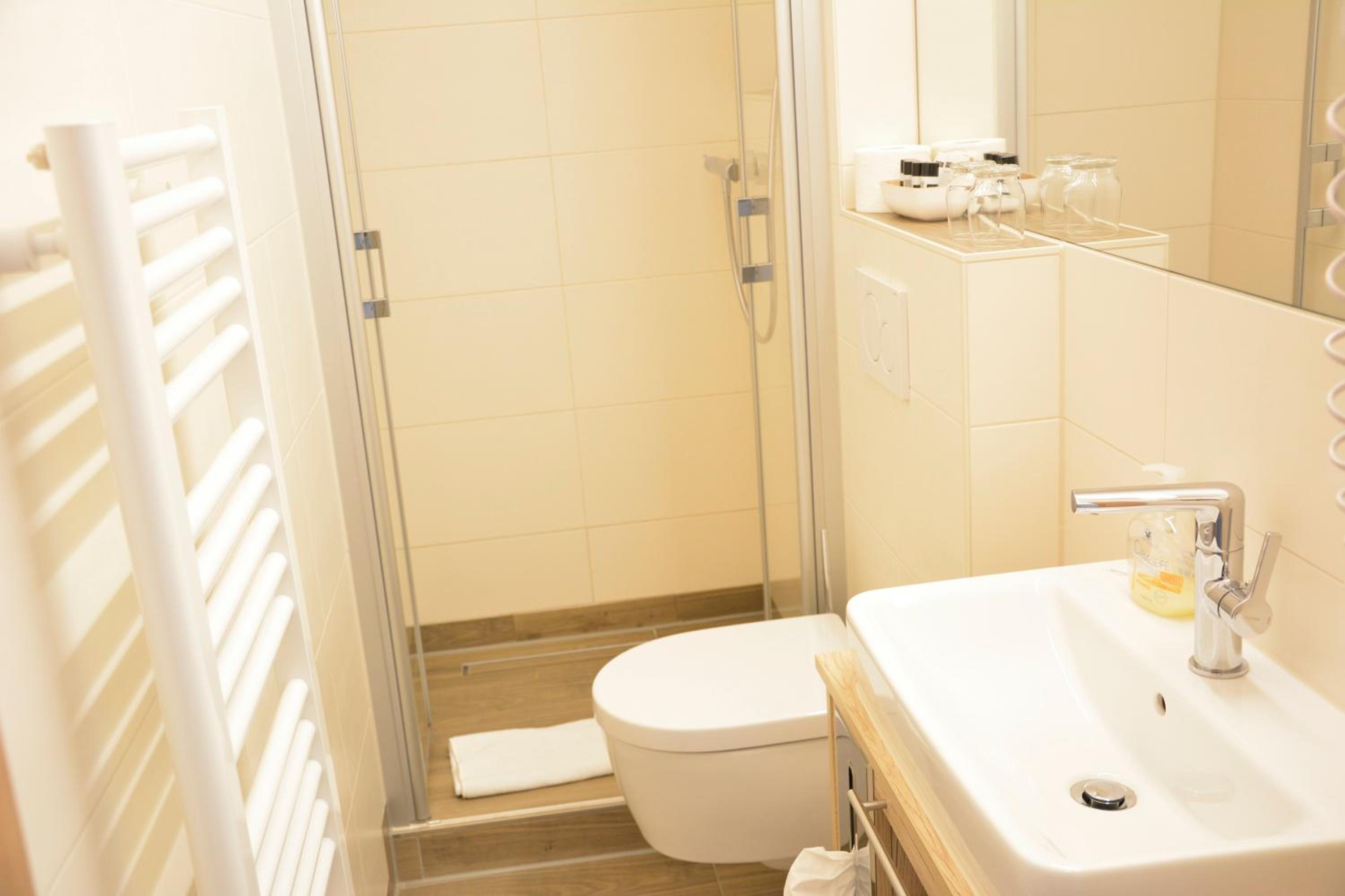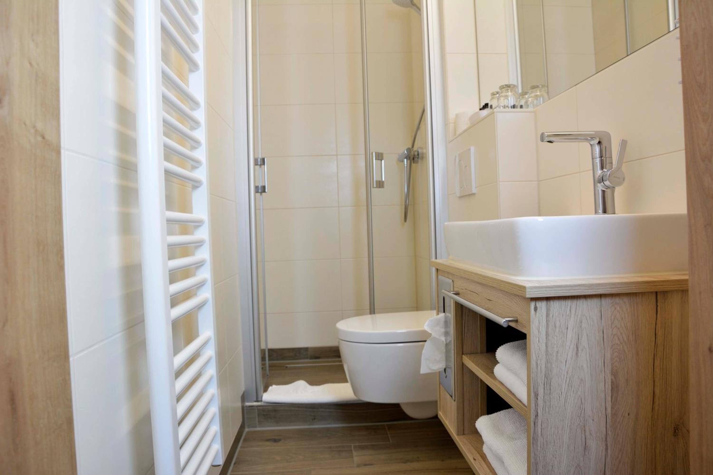 Im superkleinen Badezimmerchen ist auch die Toilette. Prima. Aber um das Zimmerchen zu belüften, braucht man eine kleine Leiter. Ich konnte nicht ans Dachfensterchen.