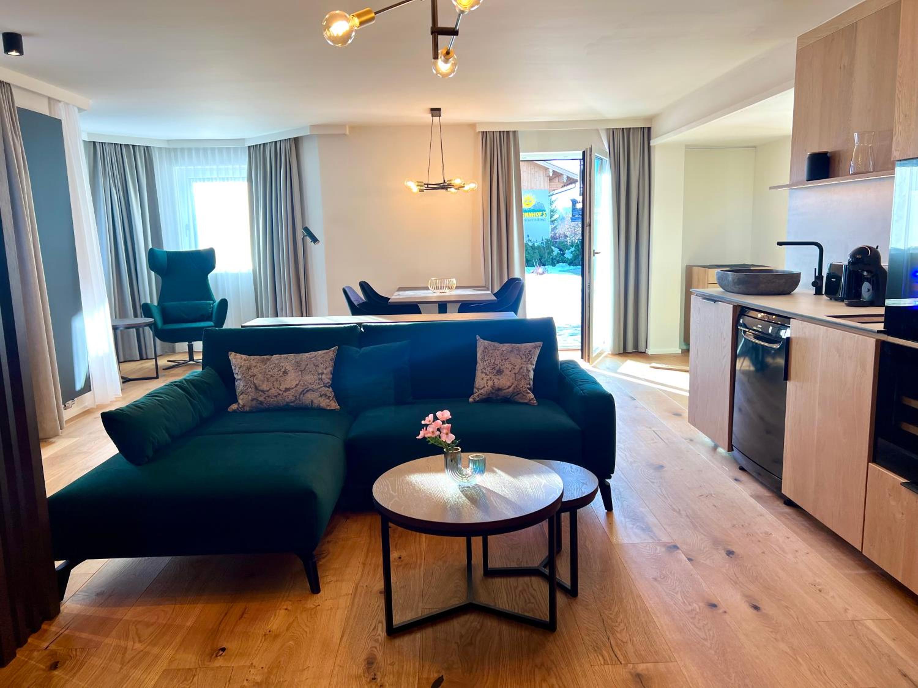 Experience the epitome of comfort and style at the 4-star Sonnhof Reit im Winkl. Choose from a variety of modern apartments in two buildings, each offering a unique blend of sophistication and relaxation.