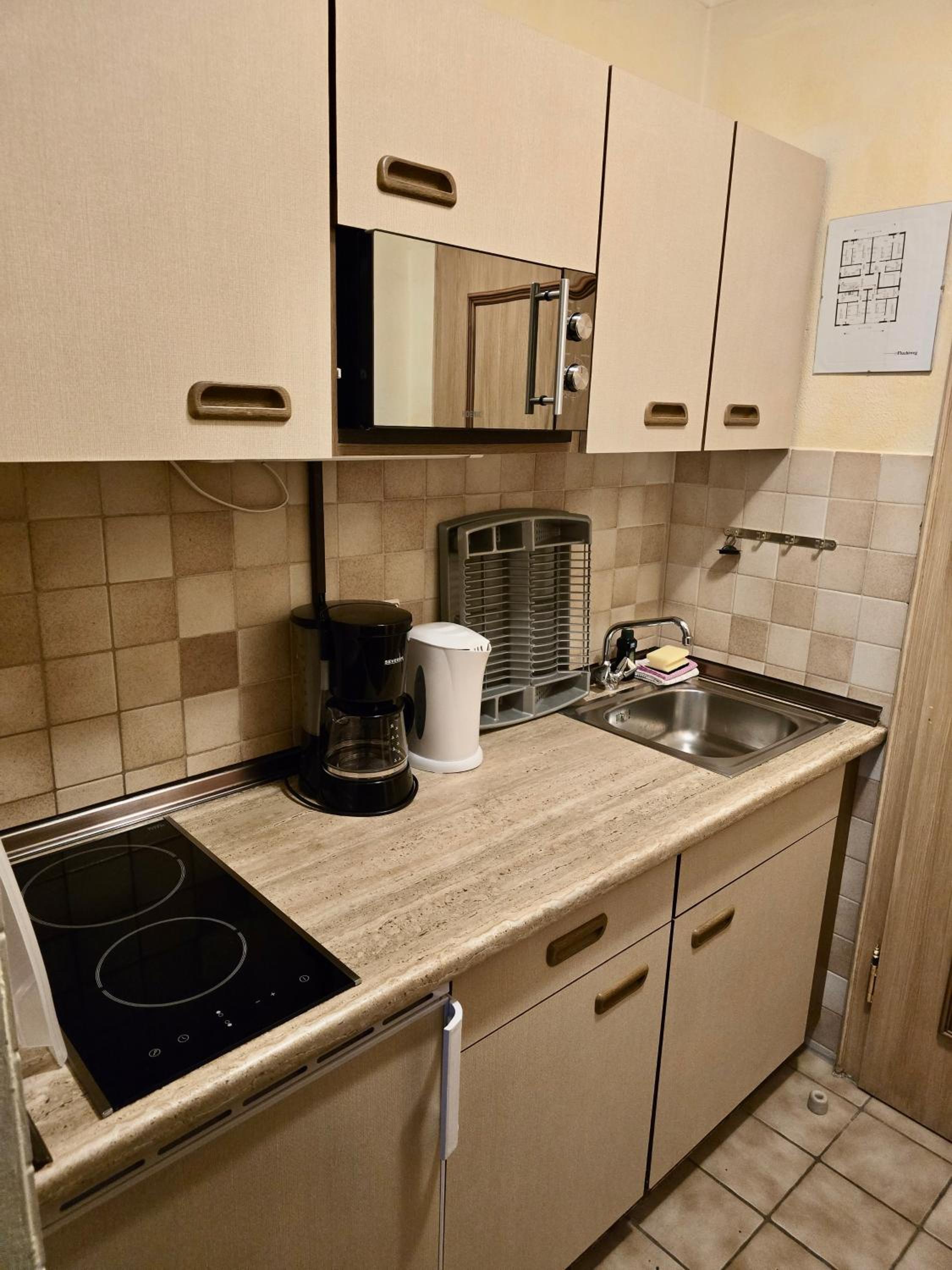Die Ferienwohnung selbst war sehr sauber und gut geschnitten. Die Küche war gleich im Eingangsbereich, sie ist gut ausgestattet und bietet alles, was man zum Kochen benötigt, inklusive Mikrowelle, Kaffeemaschine und Wasserkocher und Kühlschrank. Vom Balkon hat man eine schöne Aussicht auf die Berge.