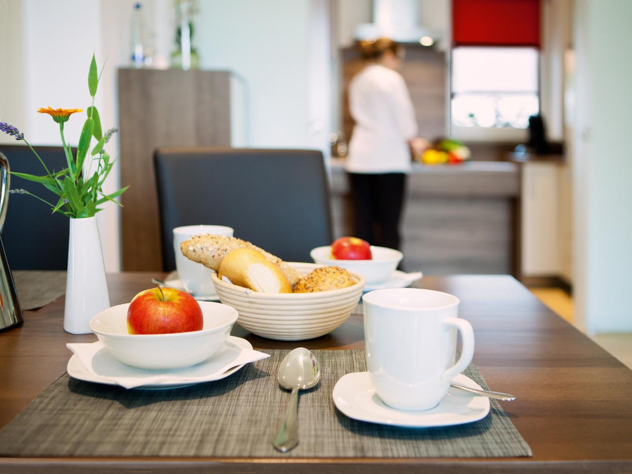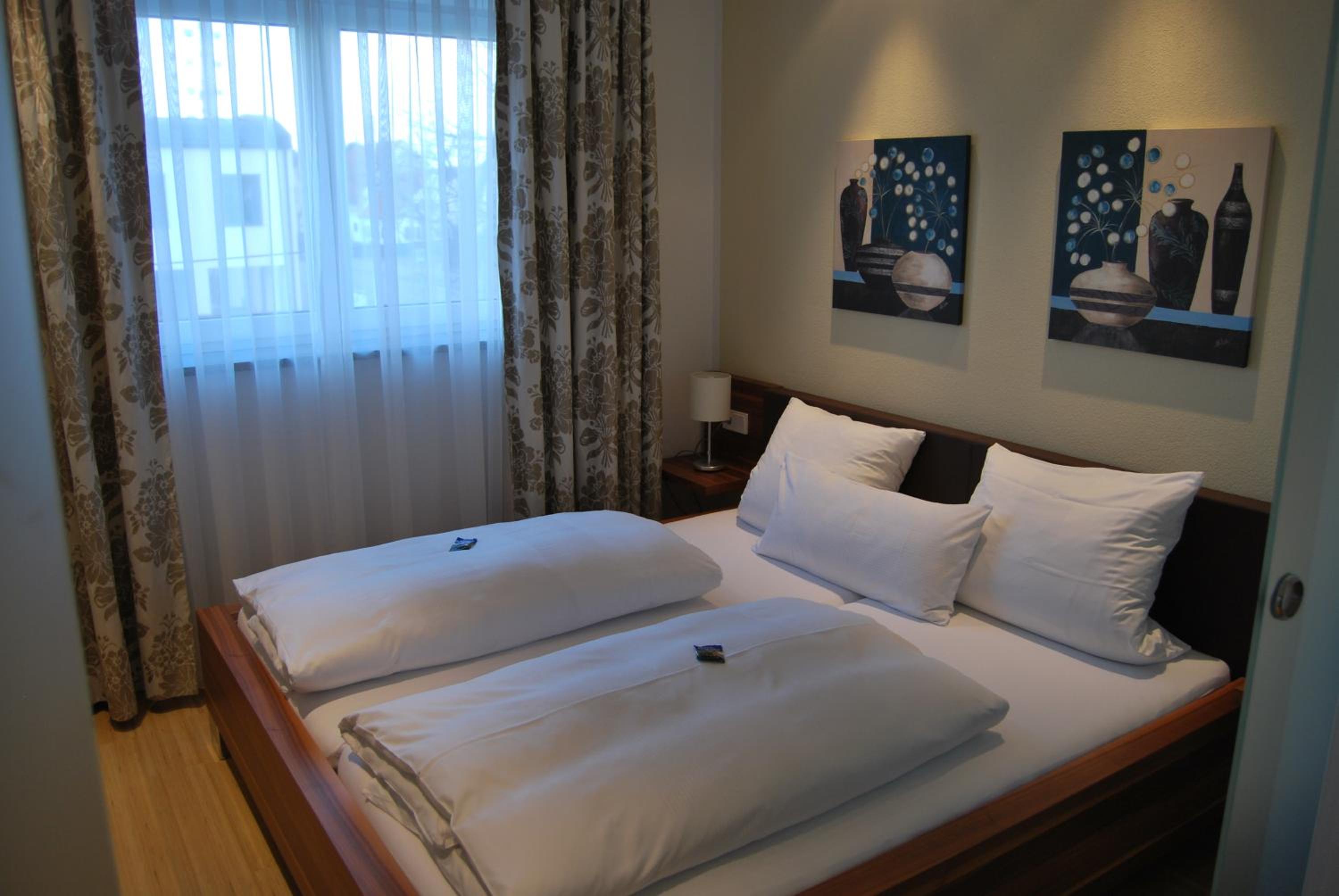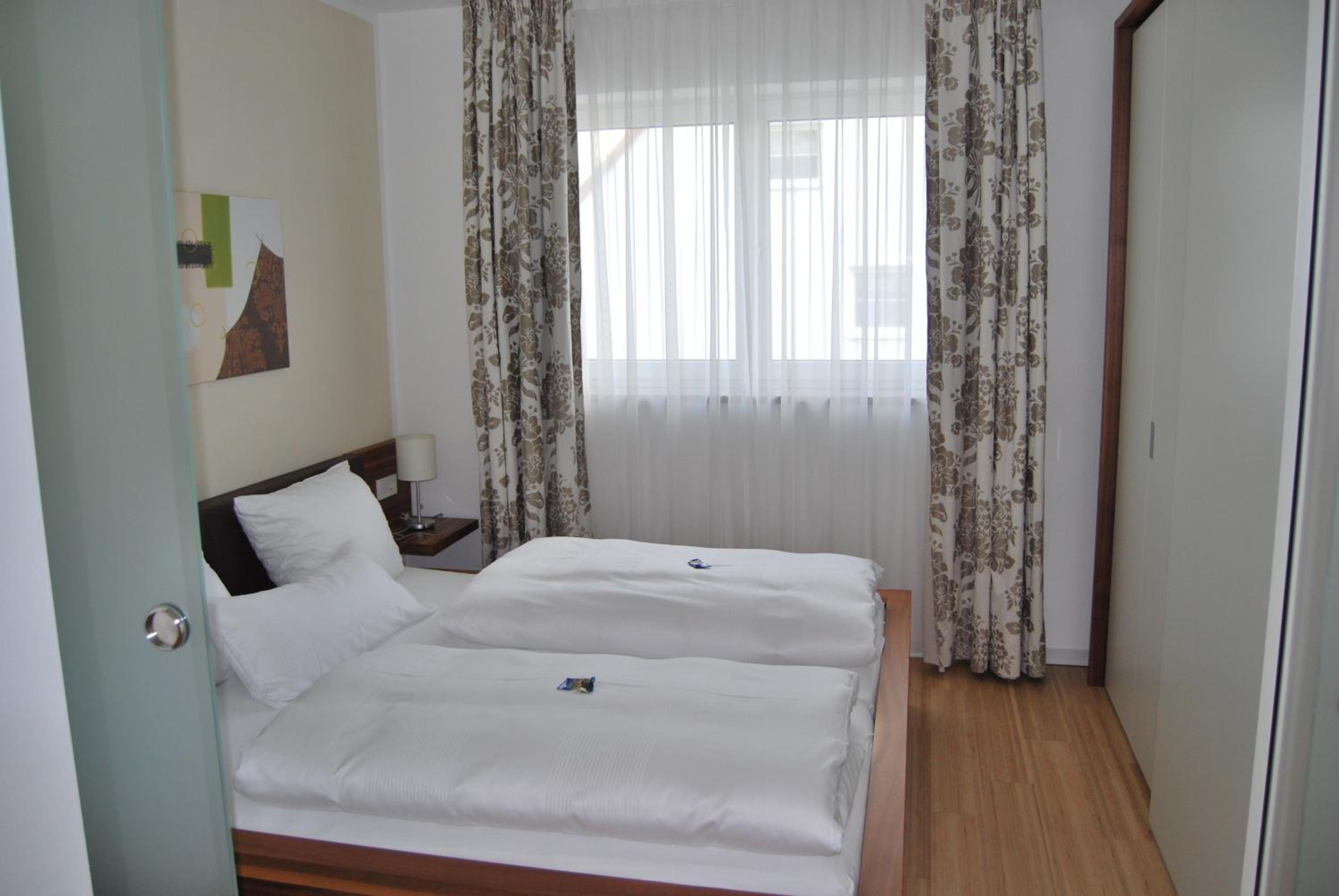 Bei mir war die ganze Wohnung mit Zwei Zimmern und einer Küchenzelle und mit allem, was man braucht, ausgestattet. Das Hotel liegt in ruhiger Lage, ist modern und stilvoll eingerichtet. Es gibt viele hoteleigene sowie öffentliche Parkplätze. Das Frühstück im Haus gegenüber. Das Personal war sehr nett.