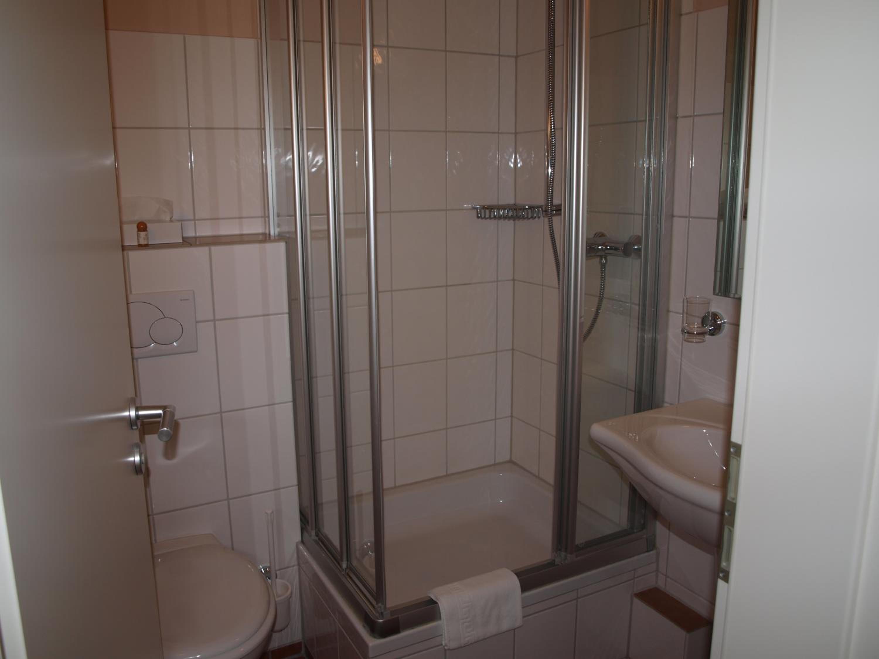 Teppichboden in den Zimmern. Laute Heizkörper. Diese haben die ganze Nacht Stimmen gemacht. Badewanne Anstatt Dusche