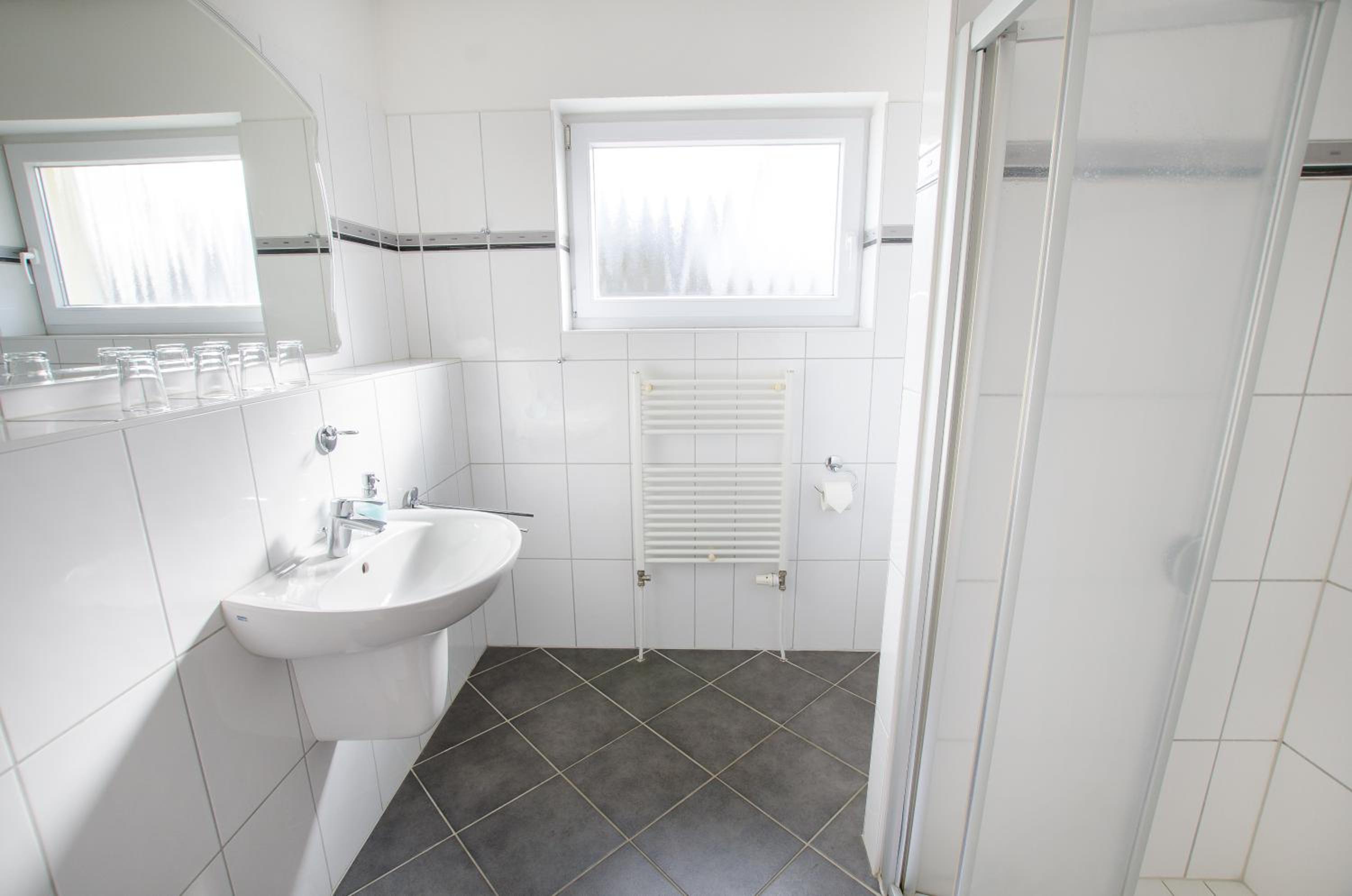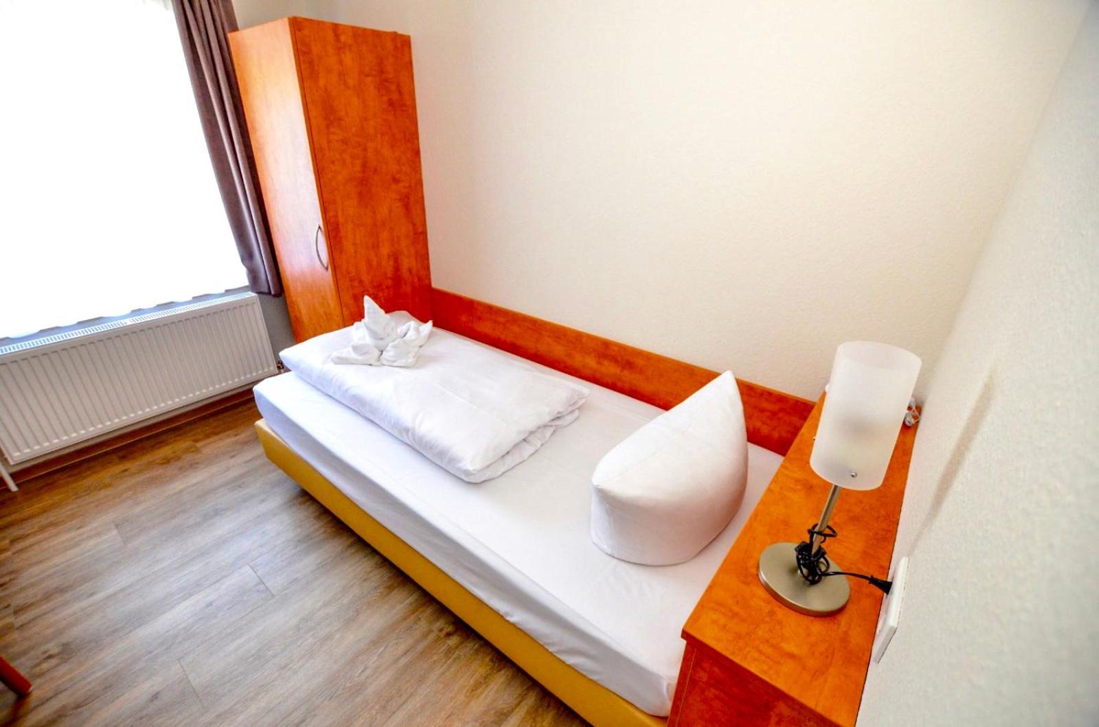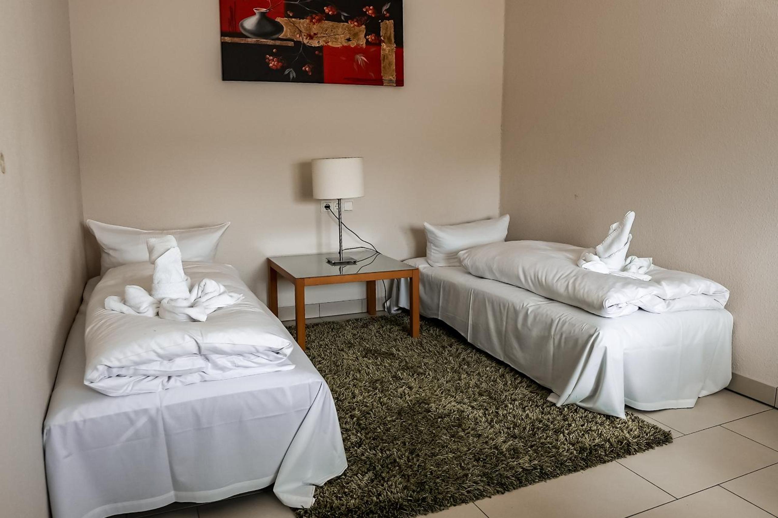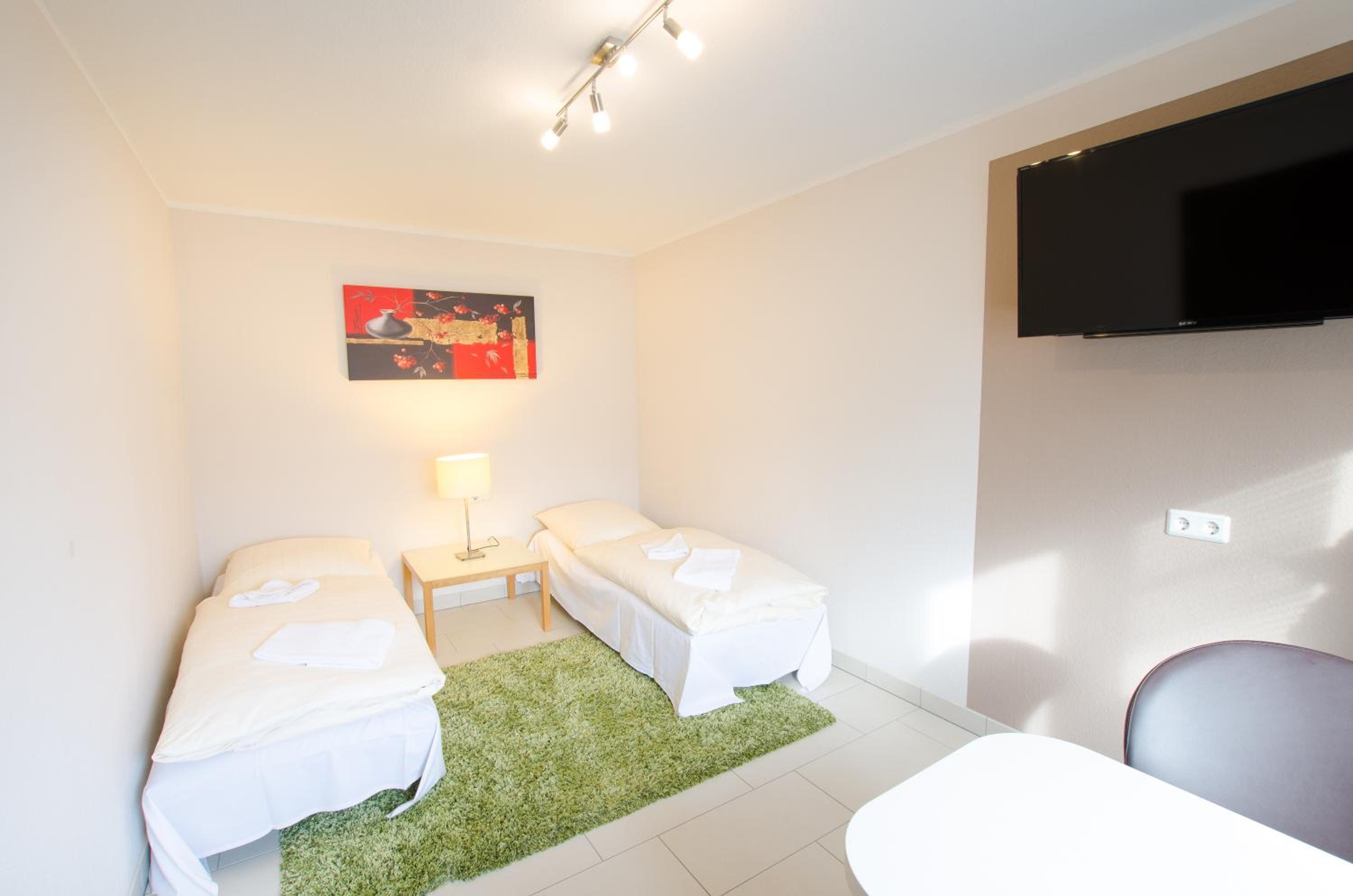 Sauberes, geräumiges Familienzimmer mit 4 Betten und kleiner Küchenzeile. Mit großem Parkplatz direkt vor der Tür.